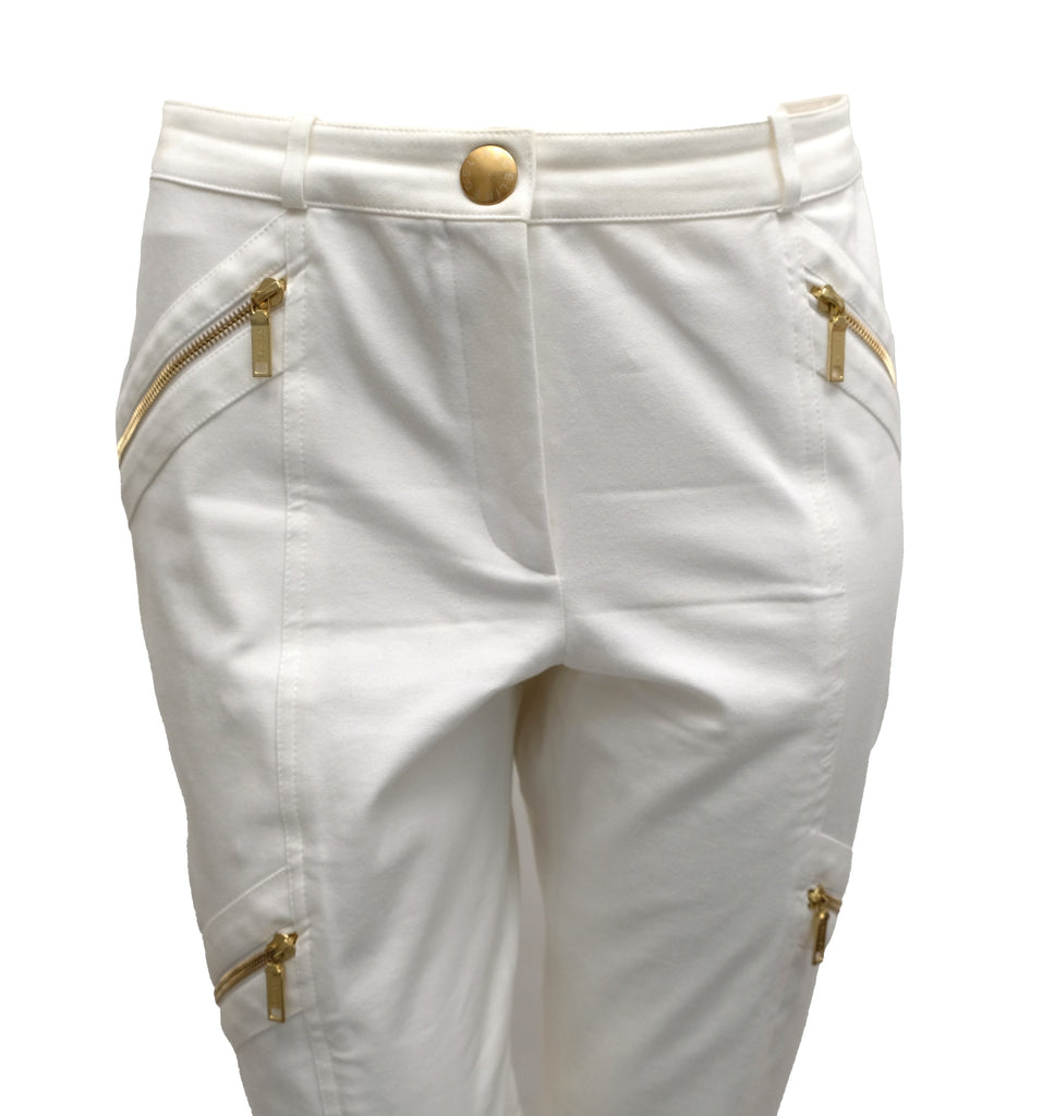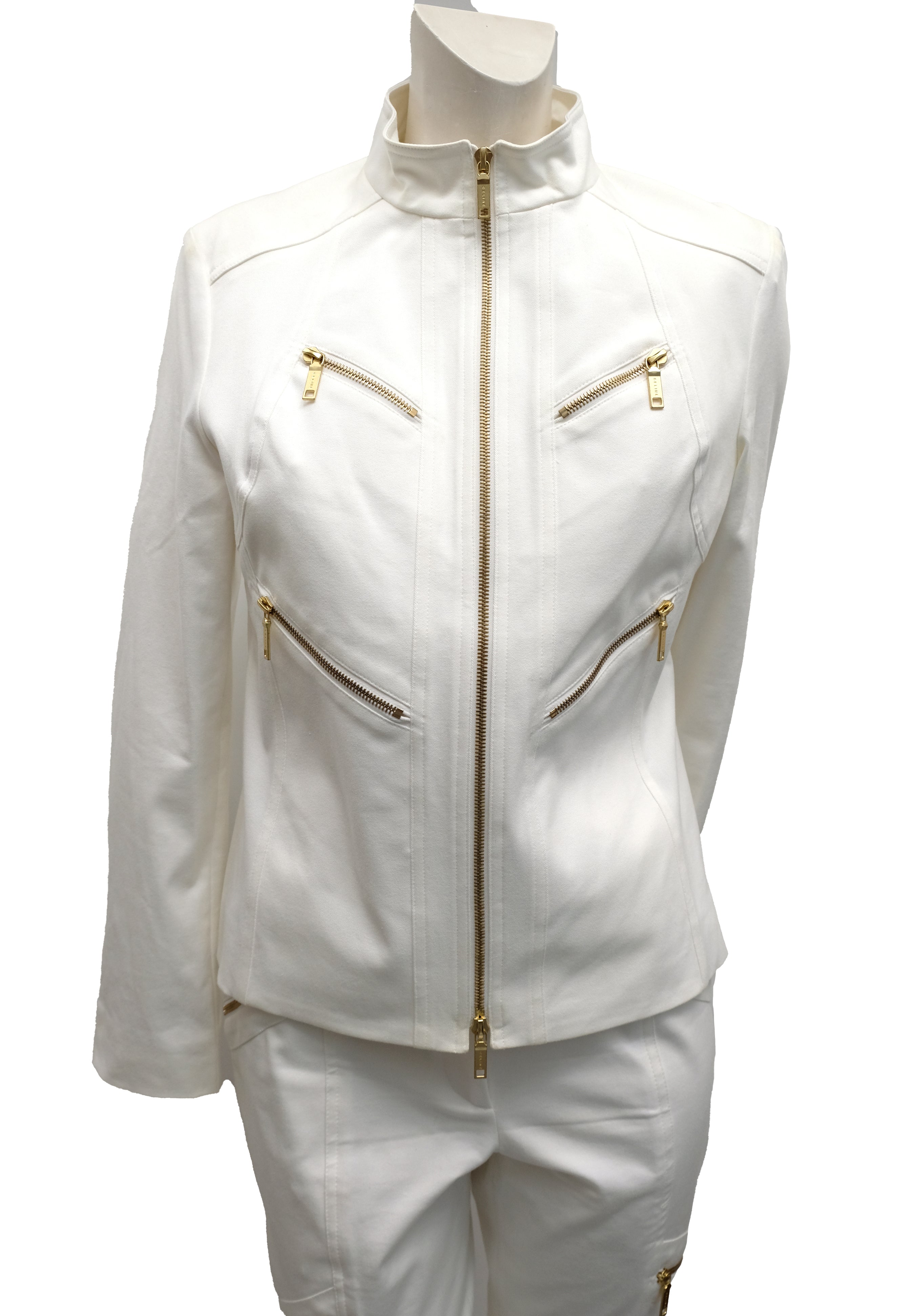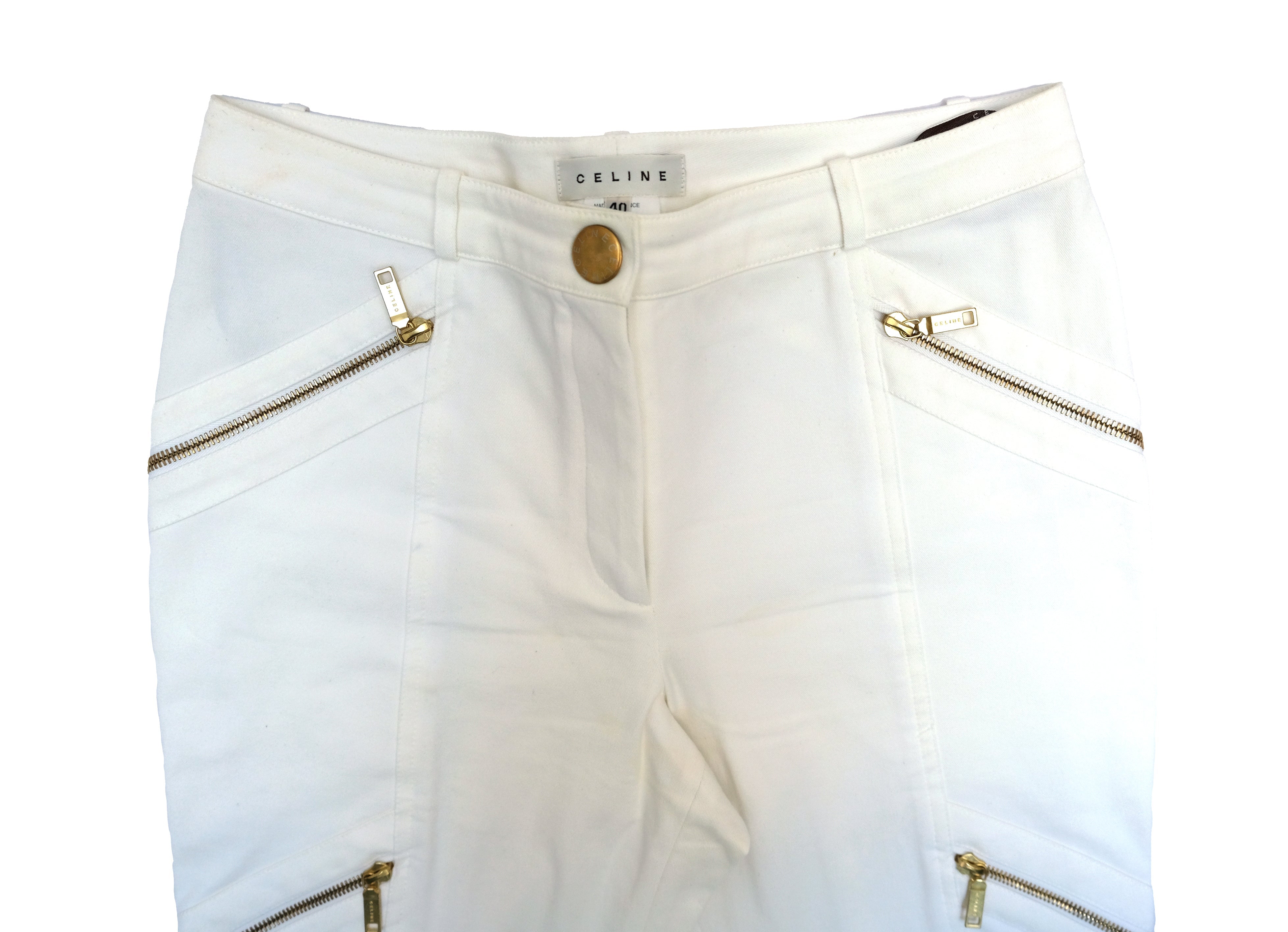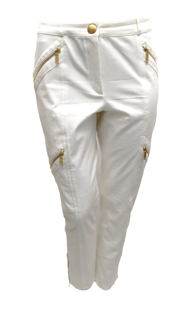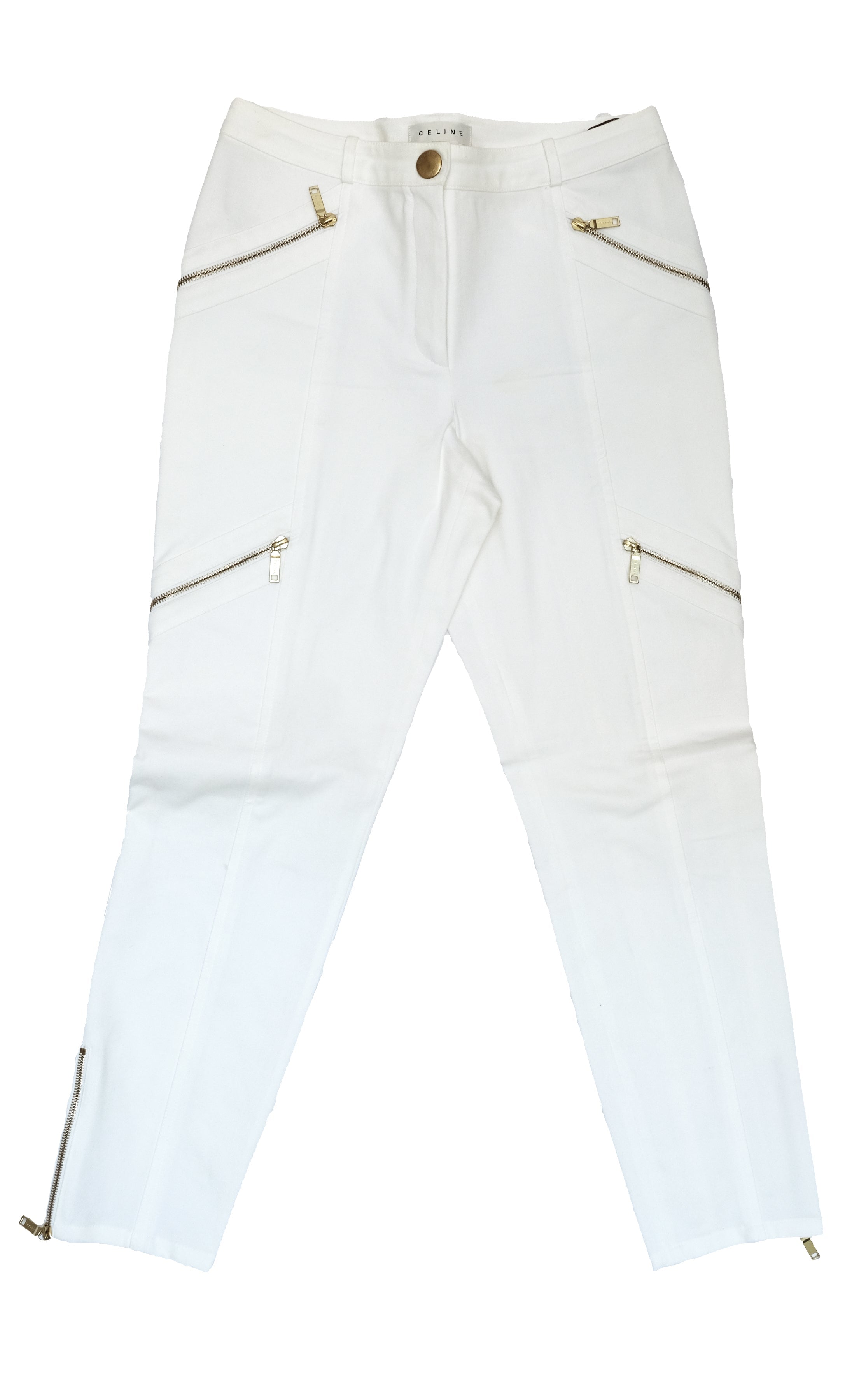 Celine 2 Piece Trouser Suit in Ivory Cotton with Gold Zips, UK10