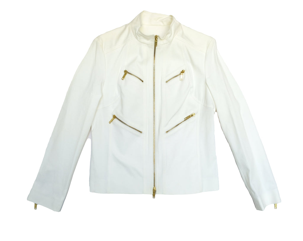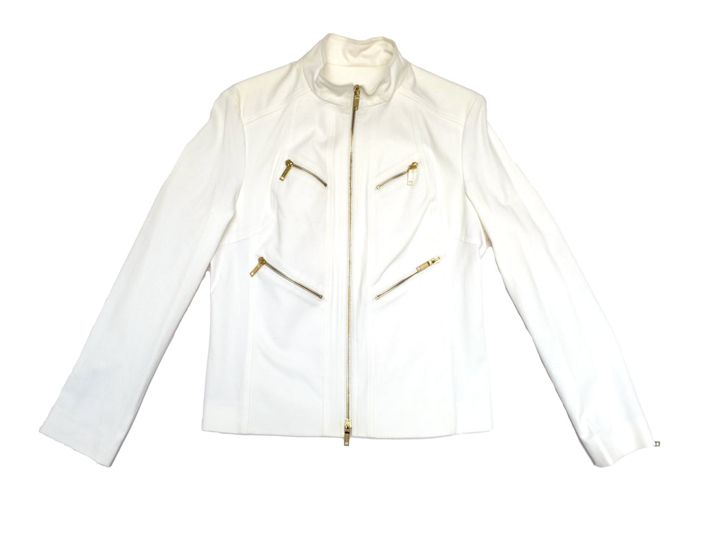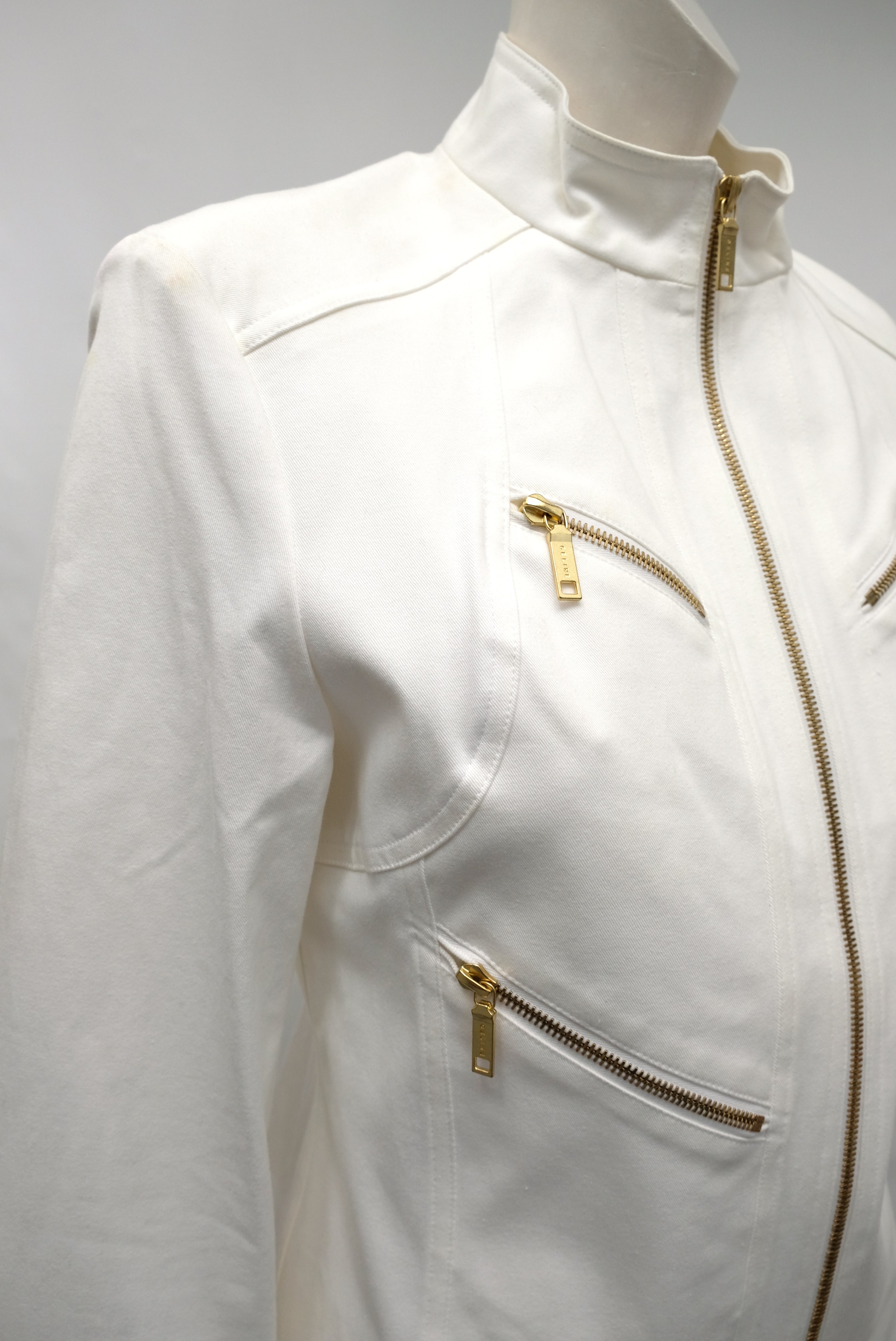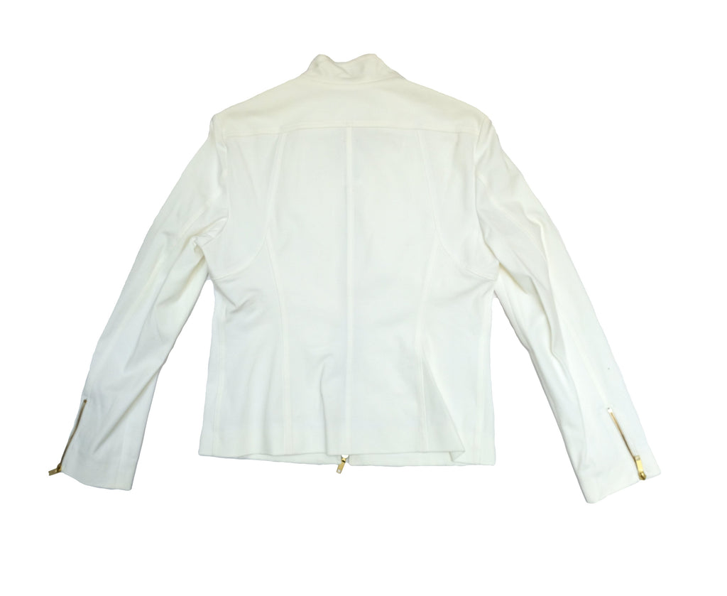 Celine 2 Piece Trouser Suit in Ivory Cotton with Gold Zips, UK10