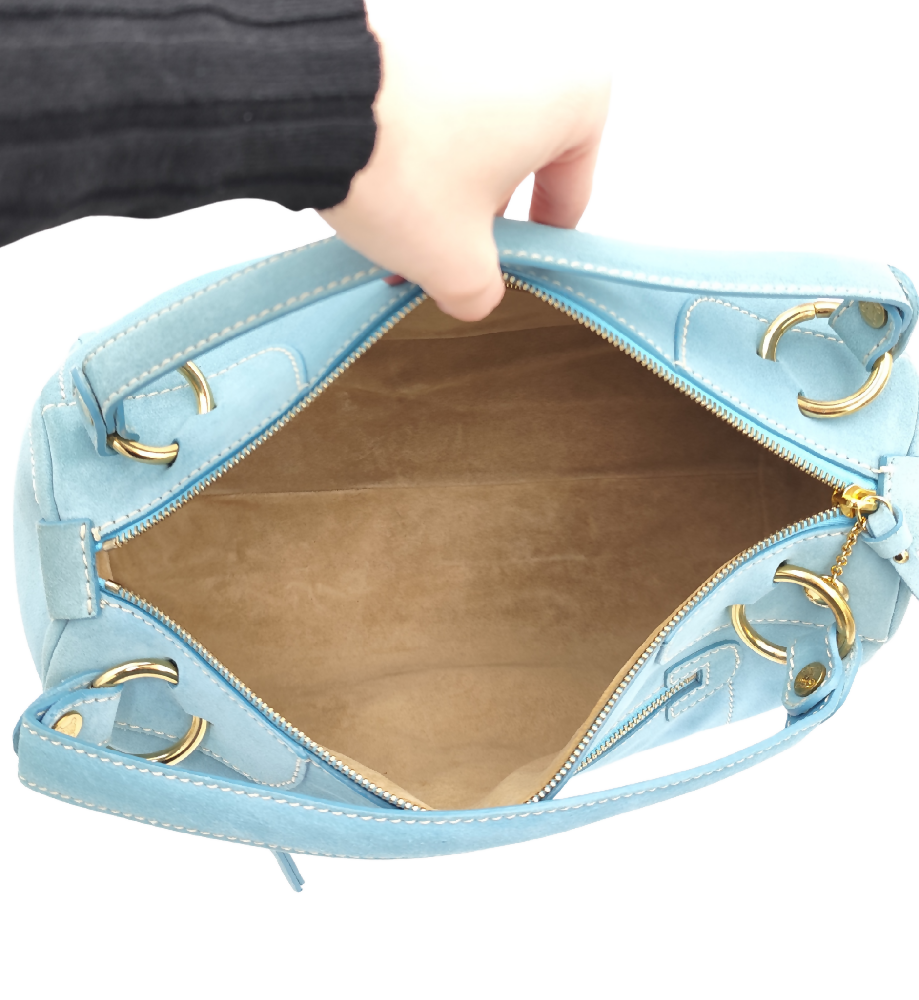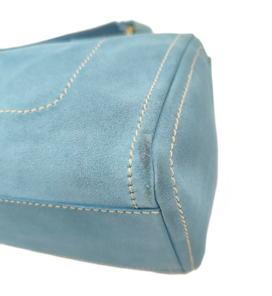 CELINE BABY BLUE SUEDE BOWLING BAG