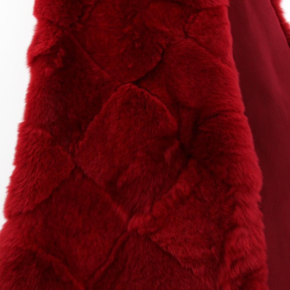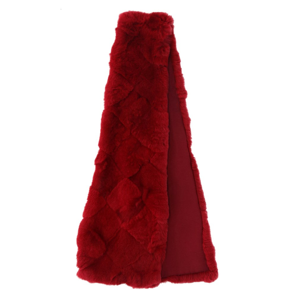 Chanel dyed red beaver fur 90s stole. Checkered design and fabric lining.