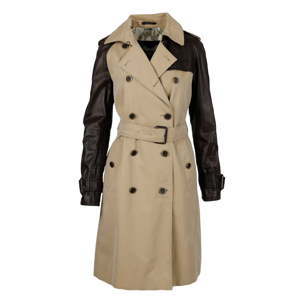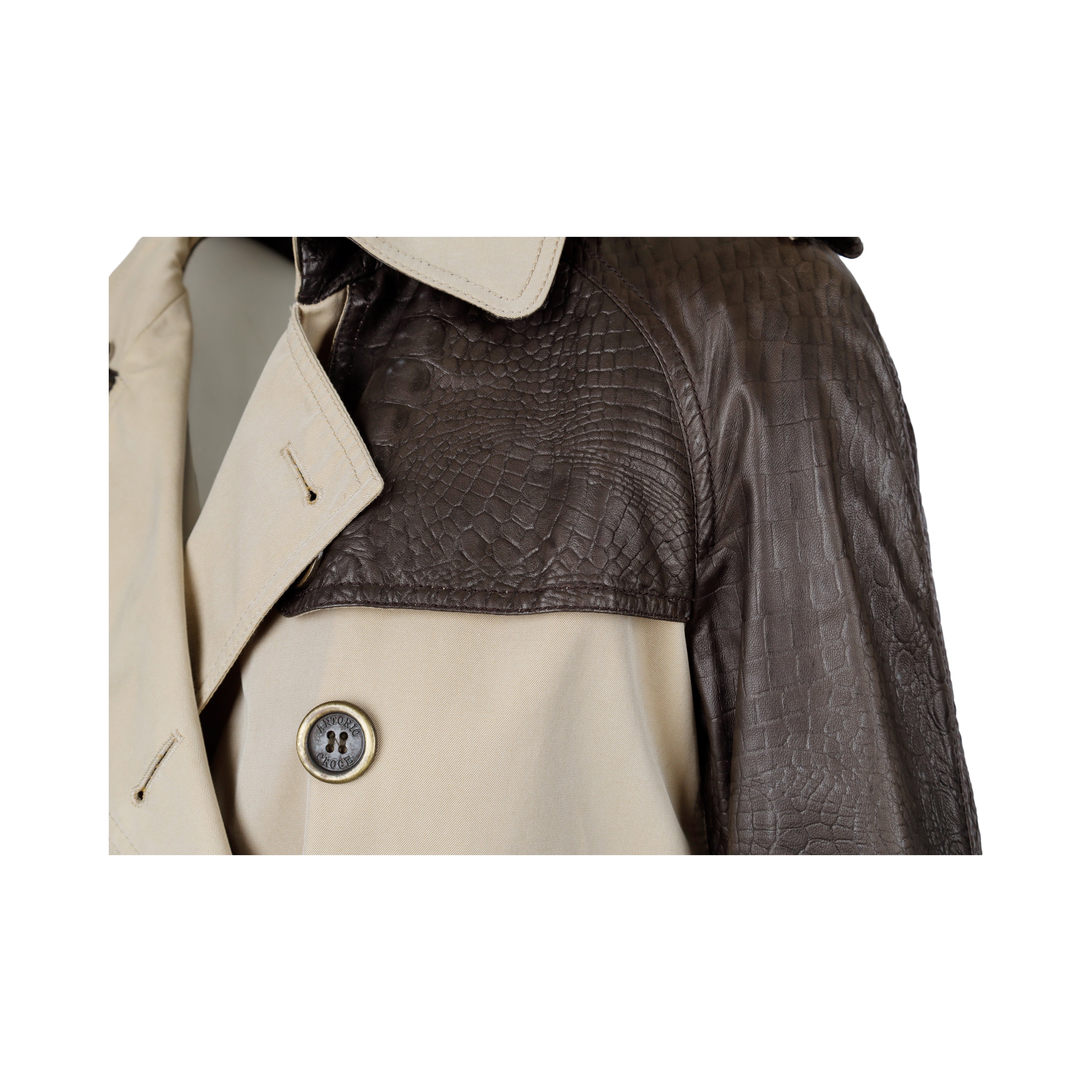 Antonio Croce Leather Sleeve Trench Coat - '10s