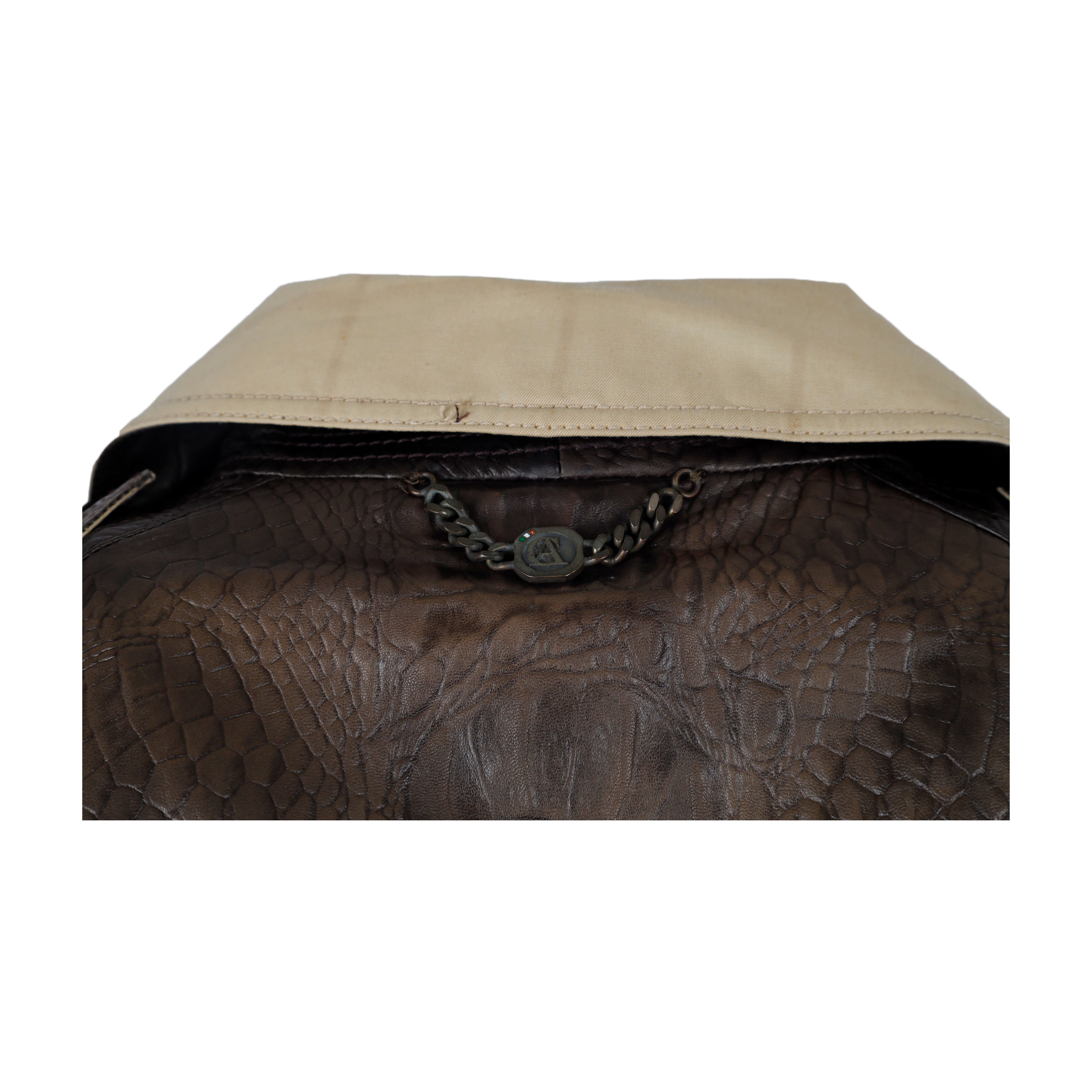 Remarks: There are some spots on the leather. There are some discoloration on the chain detail.