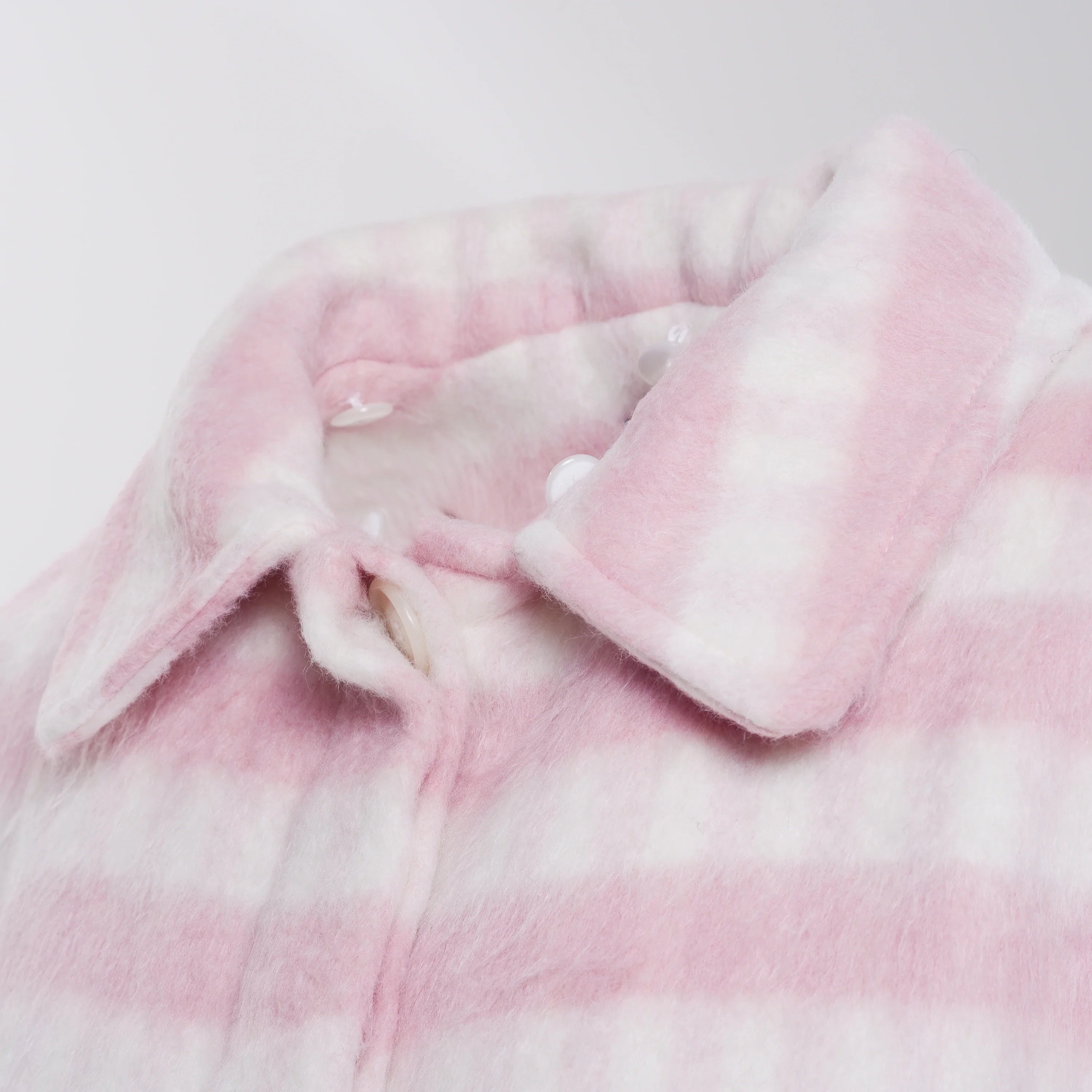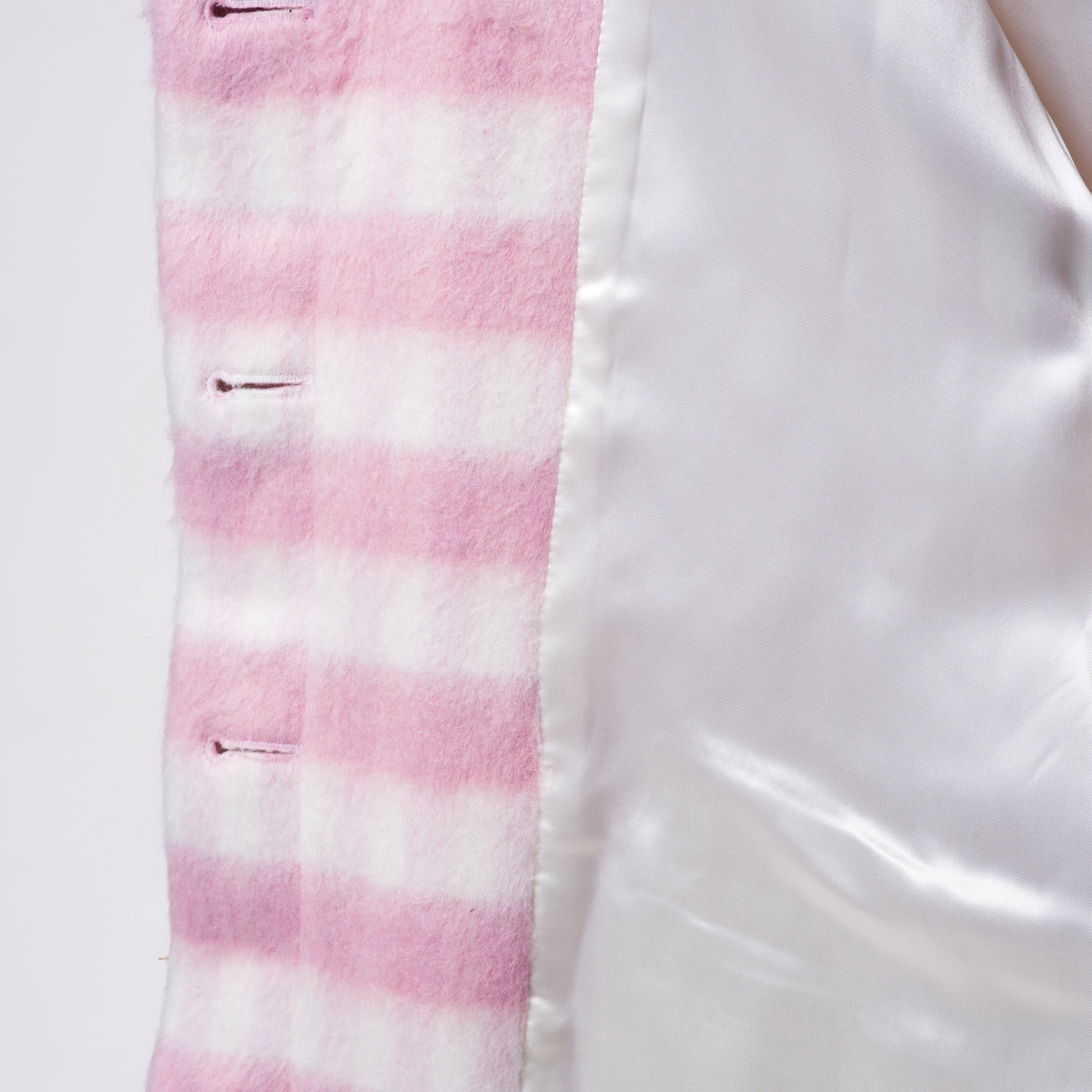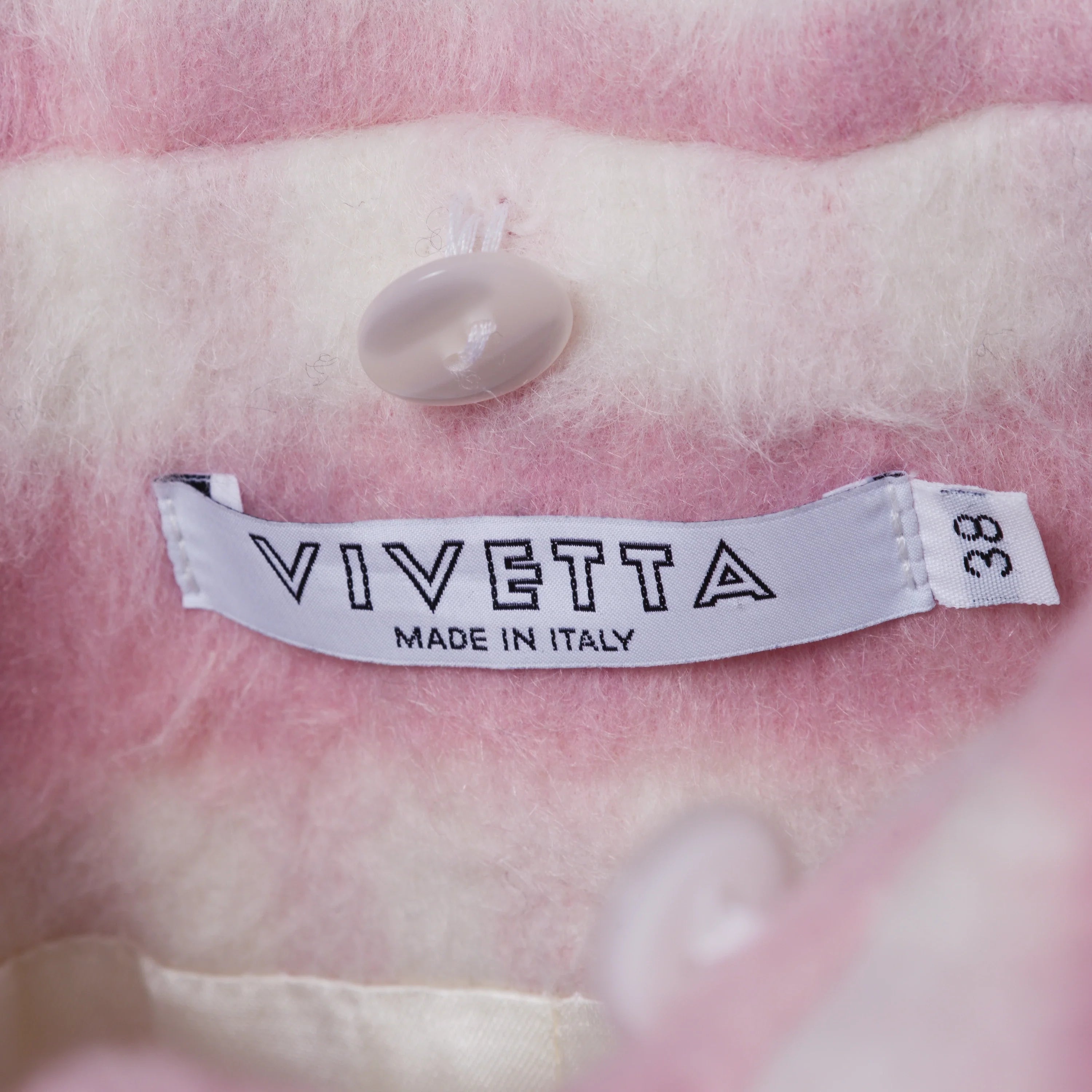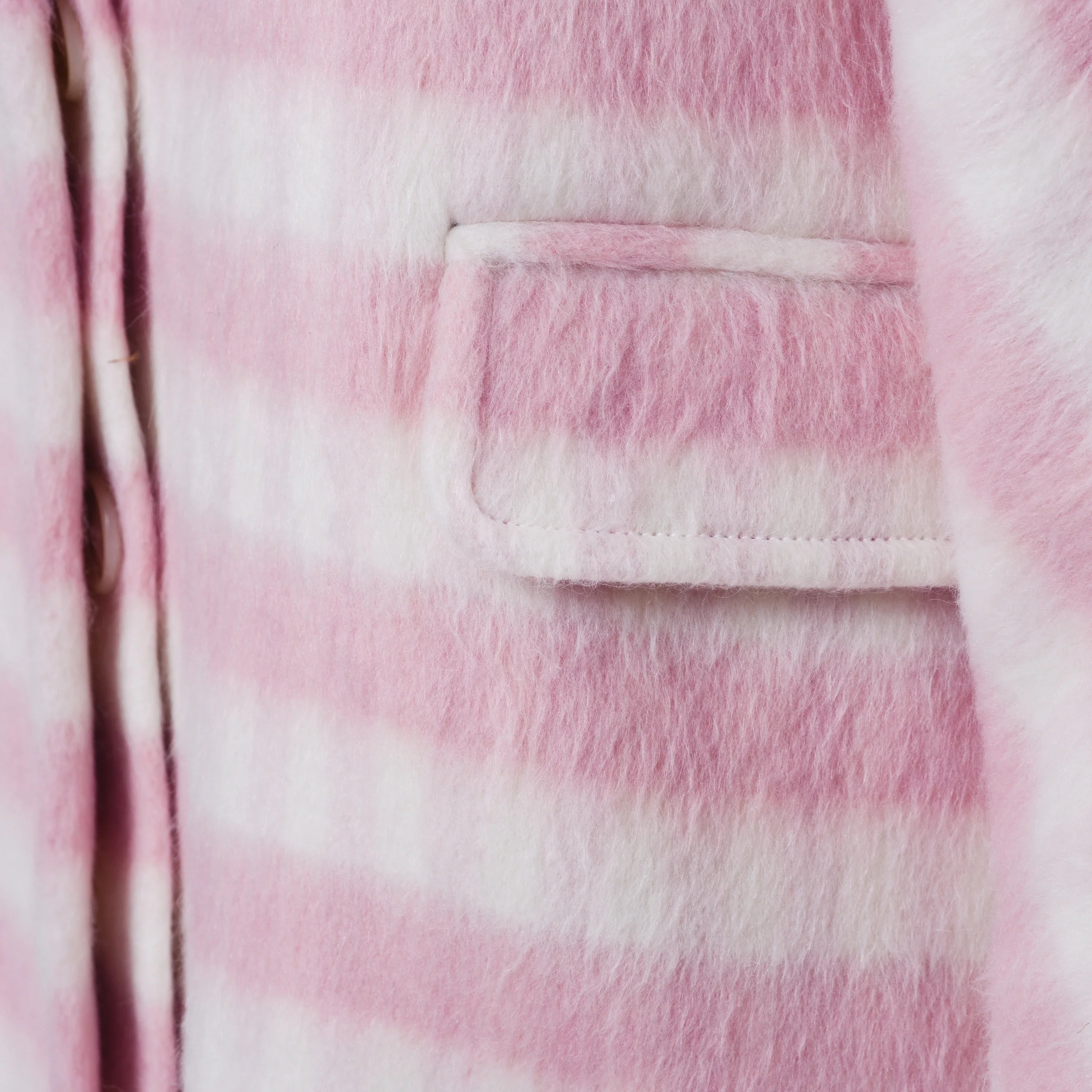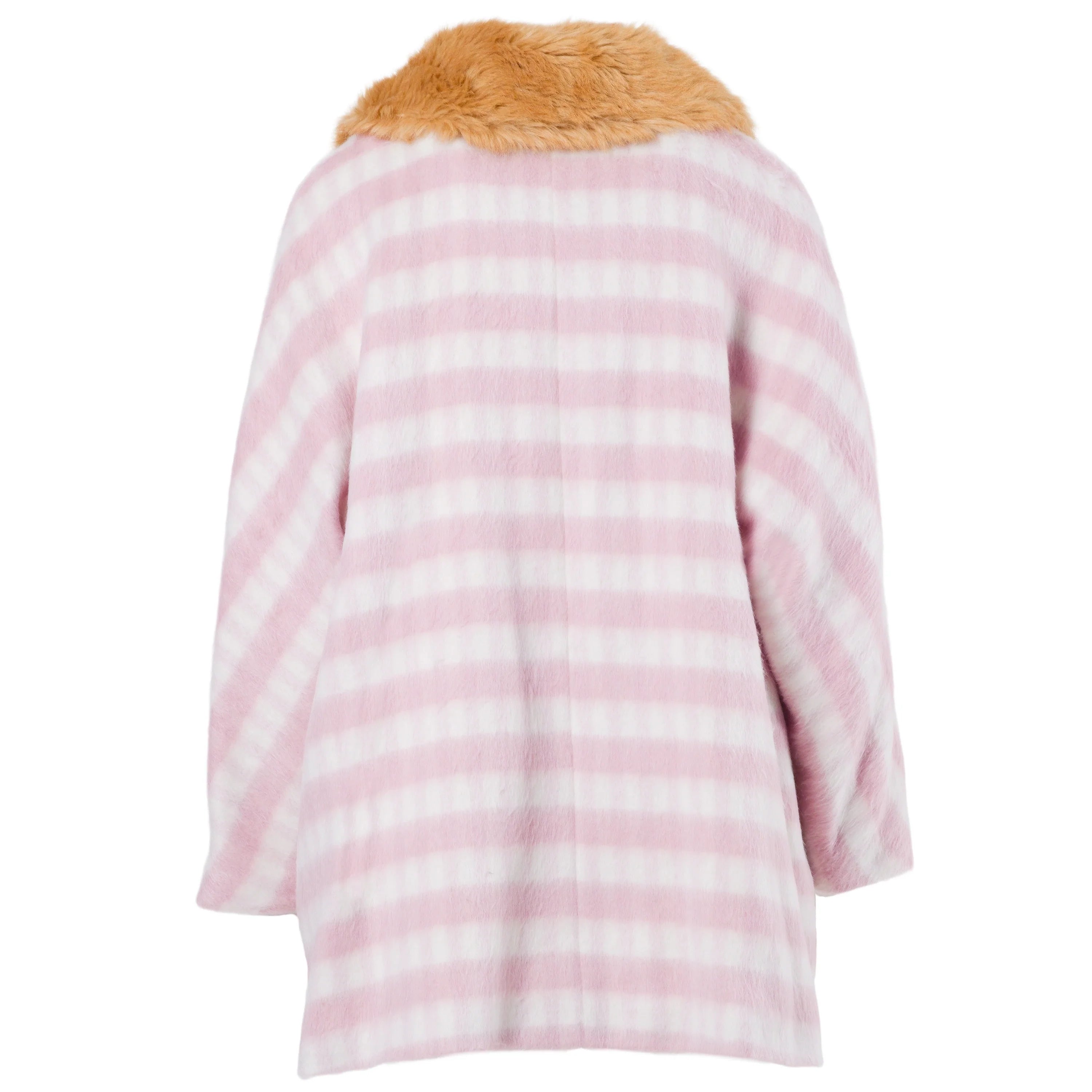 This Vivetta coat is defined by horizontal stripes in soft pink tones, giving the piece a delicate yet confident visual presence. The soft fabric supports the clean structure, while the contrasting, removable faux fur collar adds a decorative element with retro references, maintaining an overall orderly design.