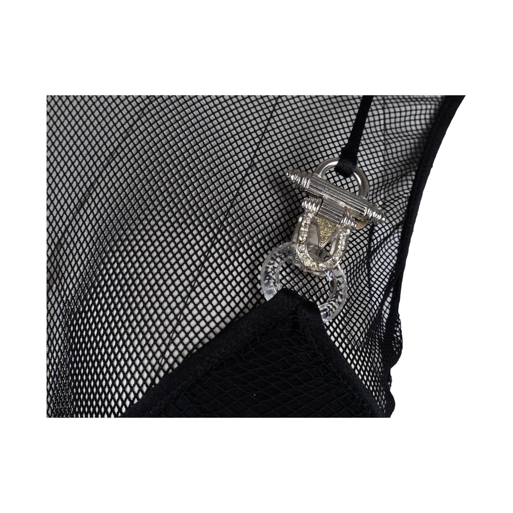 This Collection Privée Mesh Bodysuit is crafted with two layers of mesh for a alluring look. It features a bralette with metal details, stones and a transparent ring in the straps. The straps cross over the waist at the back, creating a stunning silhouette.