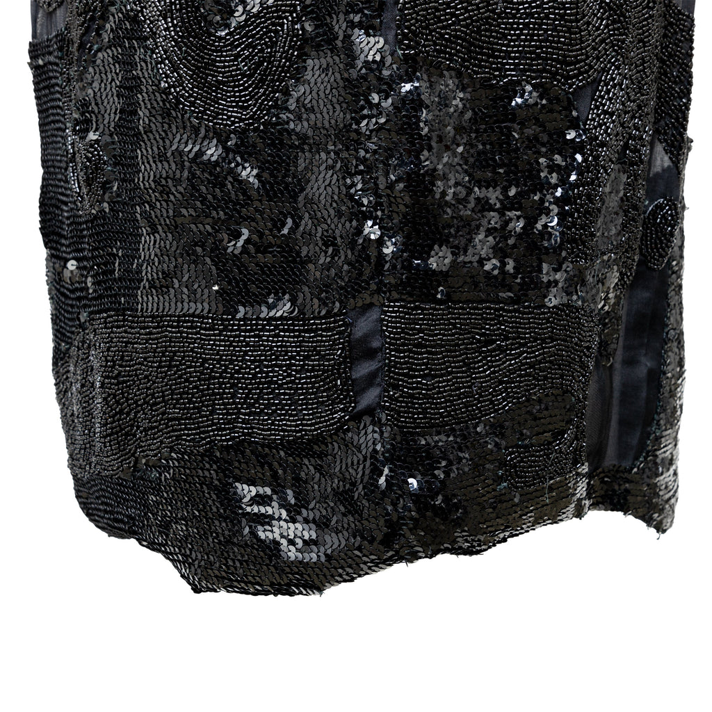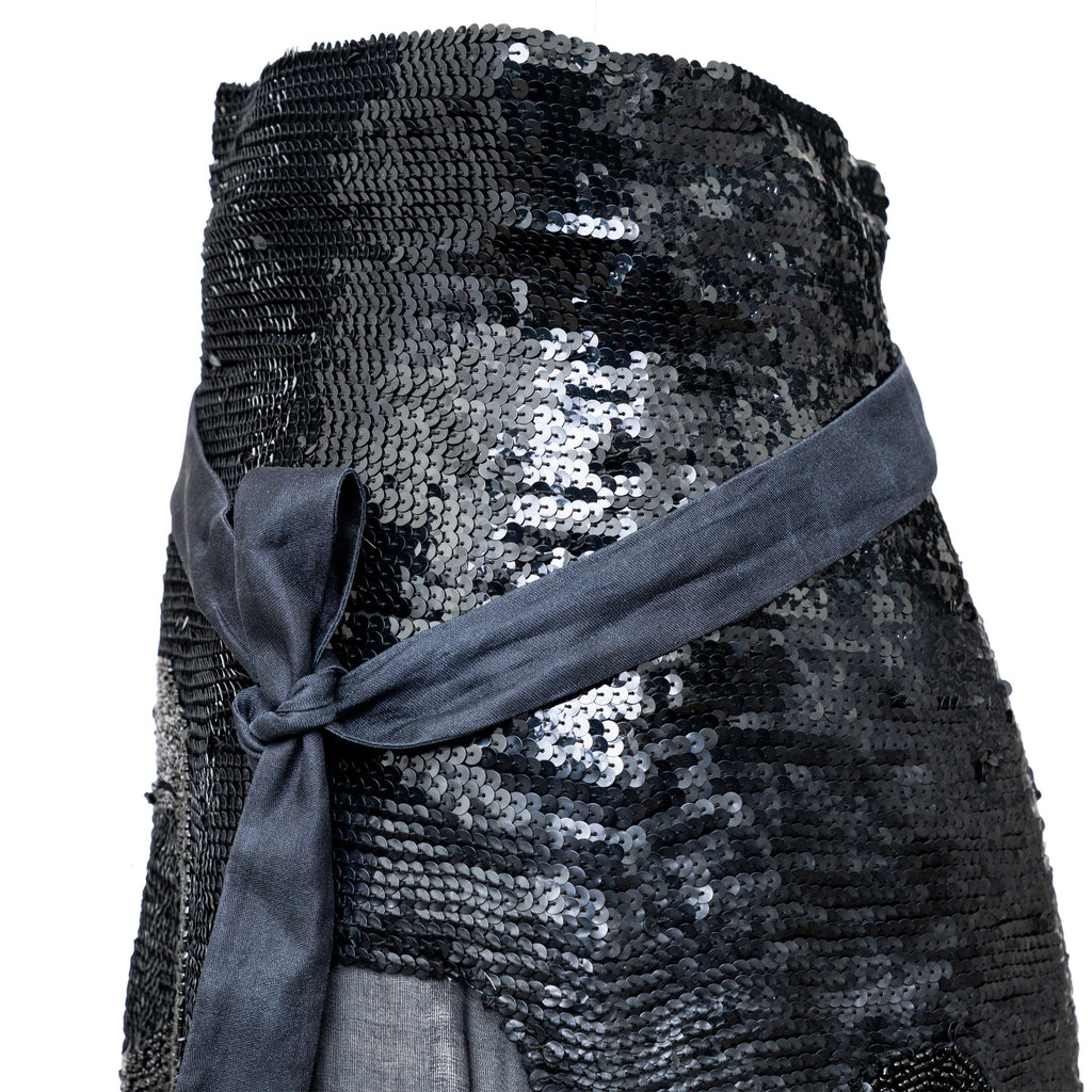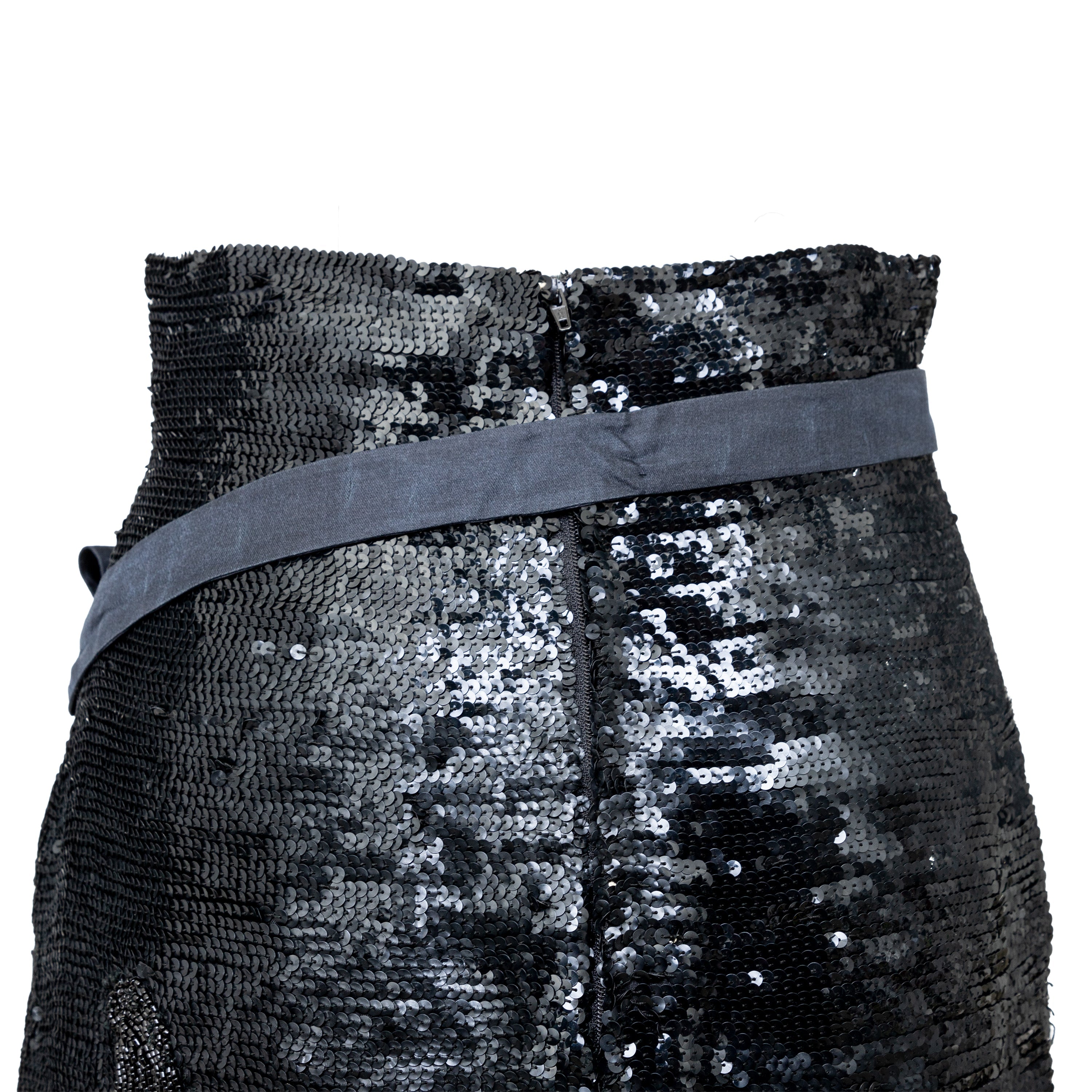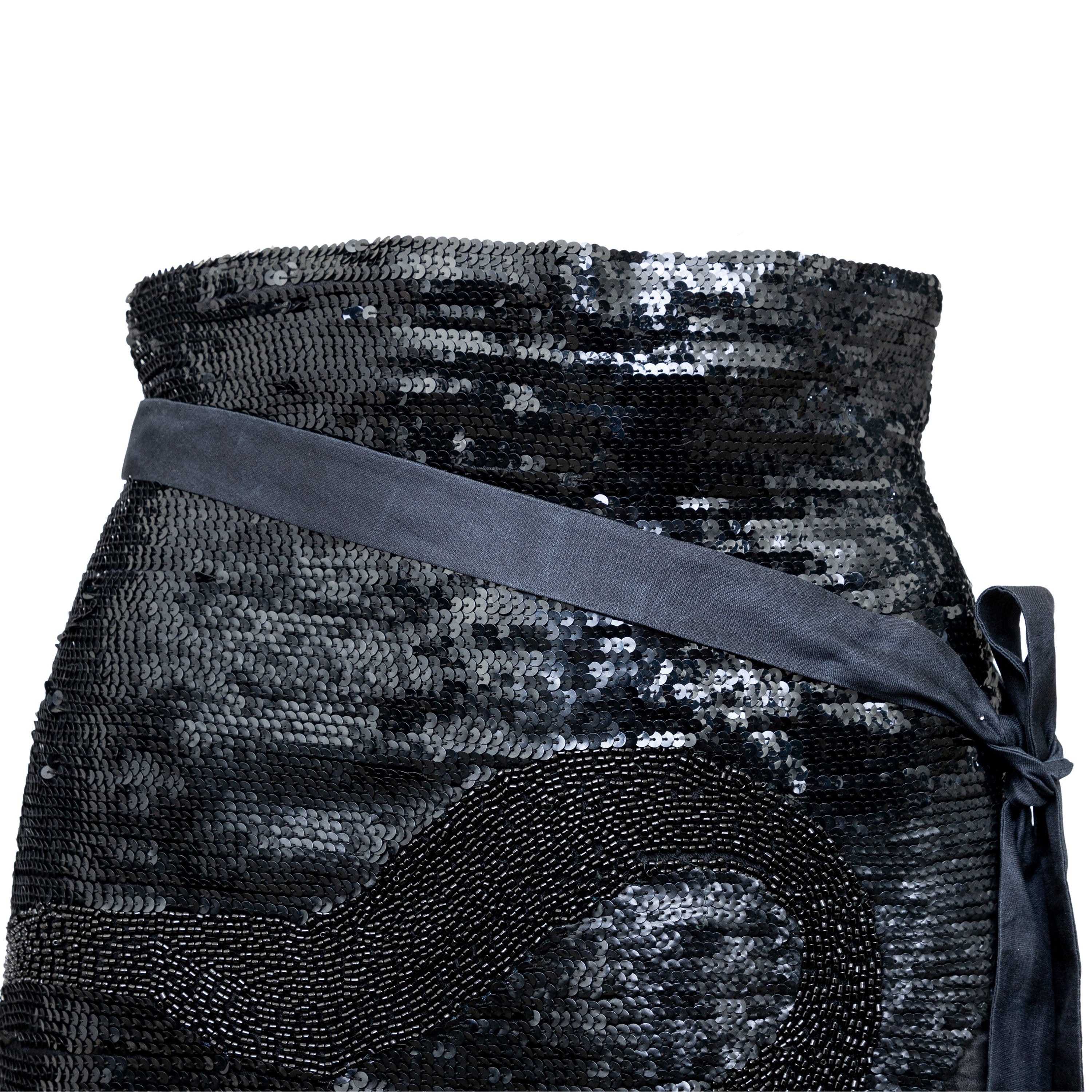 Elevate your wardrobe with the Collection Privée Sequined Skirt. This stunning black skirt is adorned with shimmering sequins and elegant tone-on-tone embroidery. The sheer detailing adds a touch of intrigue, while bead embellishments complete the look.