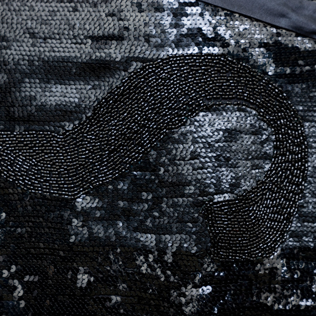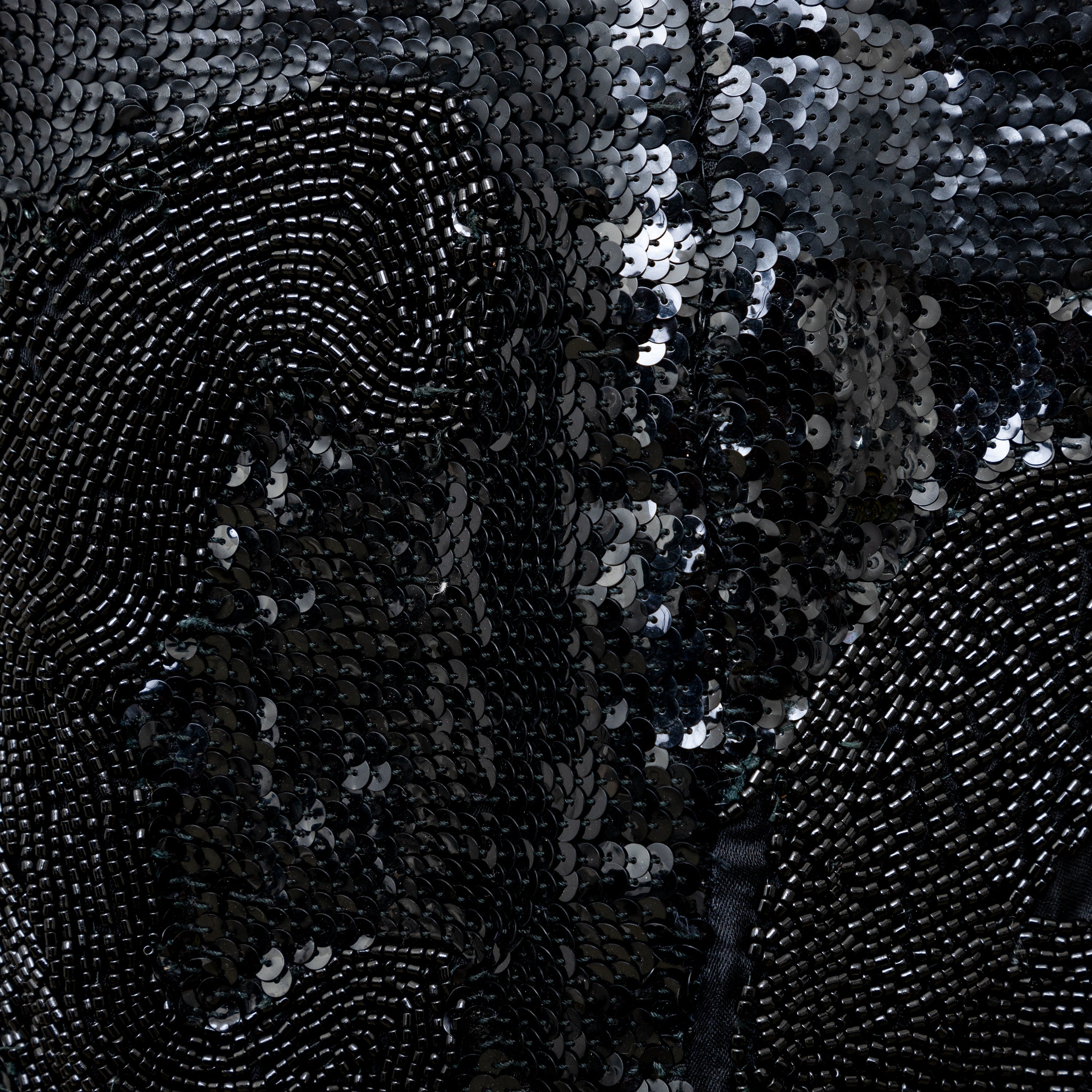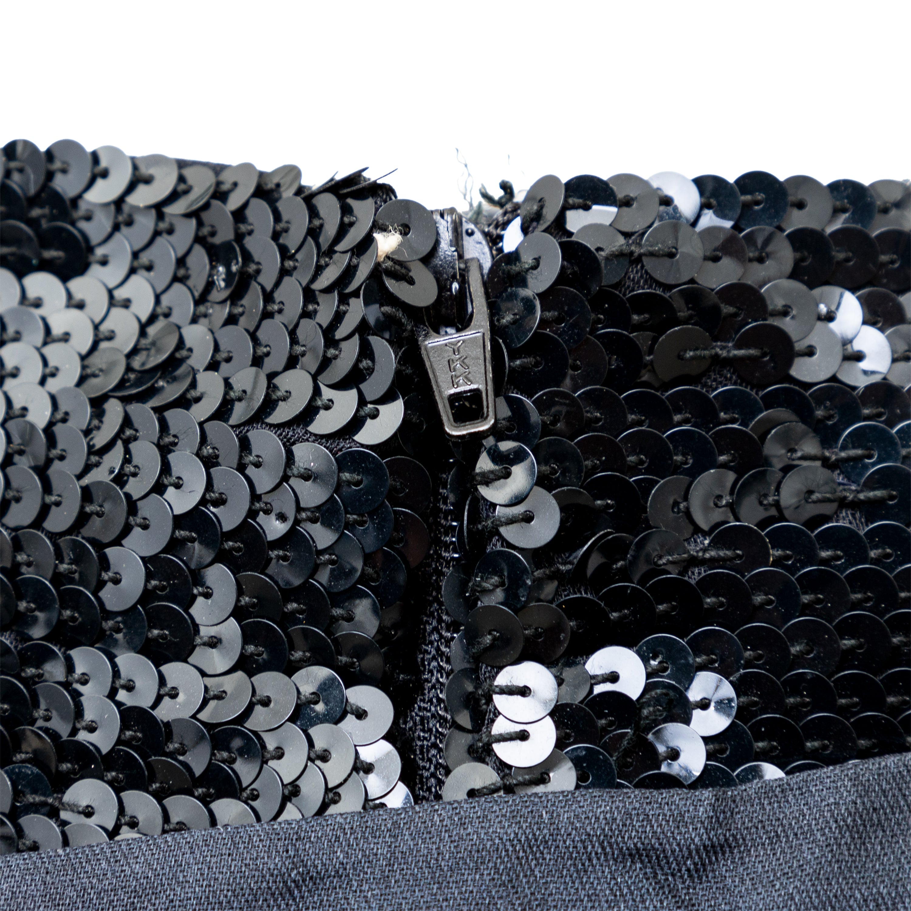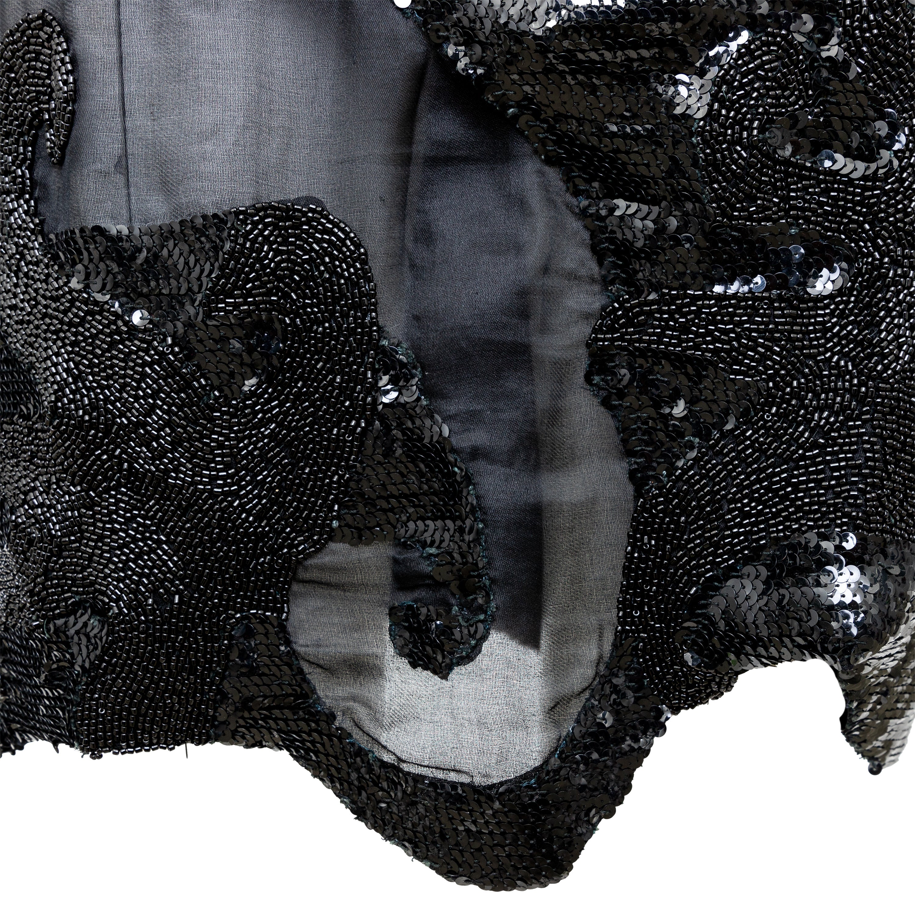 Elevate your wardrobe with the Collection Privée Sequined Skirt. This stunning black skirt is adorned with shimmering sequins and elegant tone-on-tone embroidery. The sheer detailing adds a touch of intrigue, while bead embellishments complete the look.