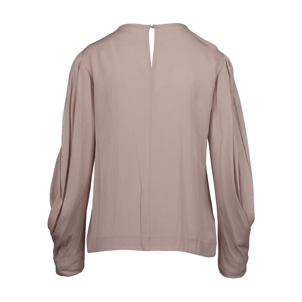 Crafted with luxurious silk, it features pleated detailing on the hem of the sleeves that effortlessly forms a wrap for an elegant silhouette. Perfect for both formal and casual looks, this blouse exudes sophistication.