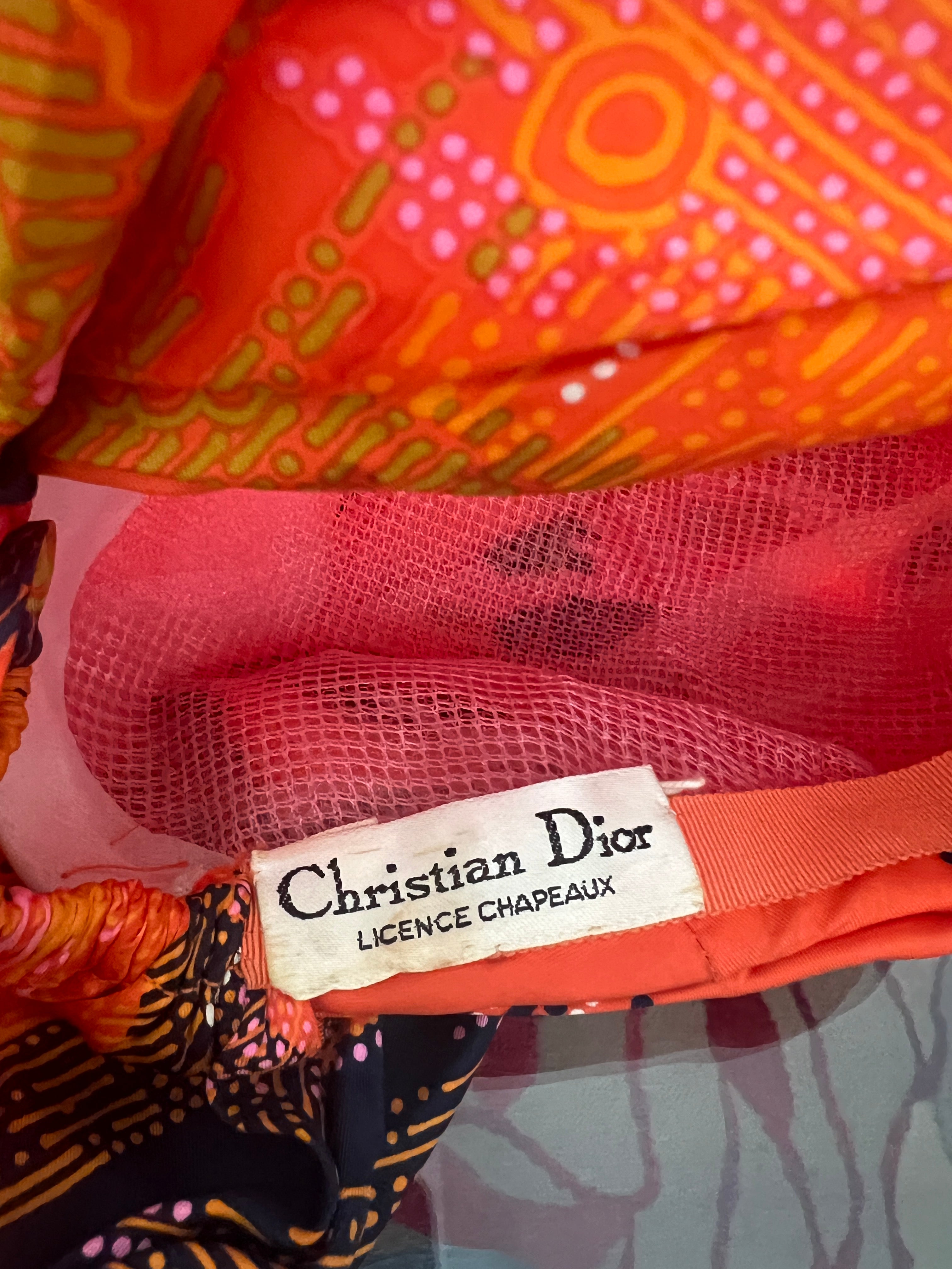 1960s Christian Dior Orange Silk Printed Turban Hat