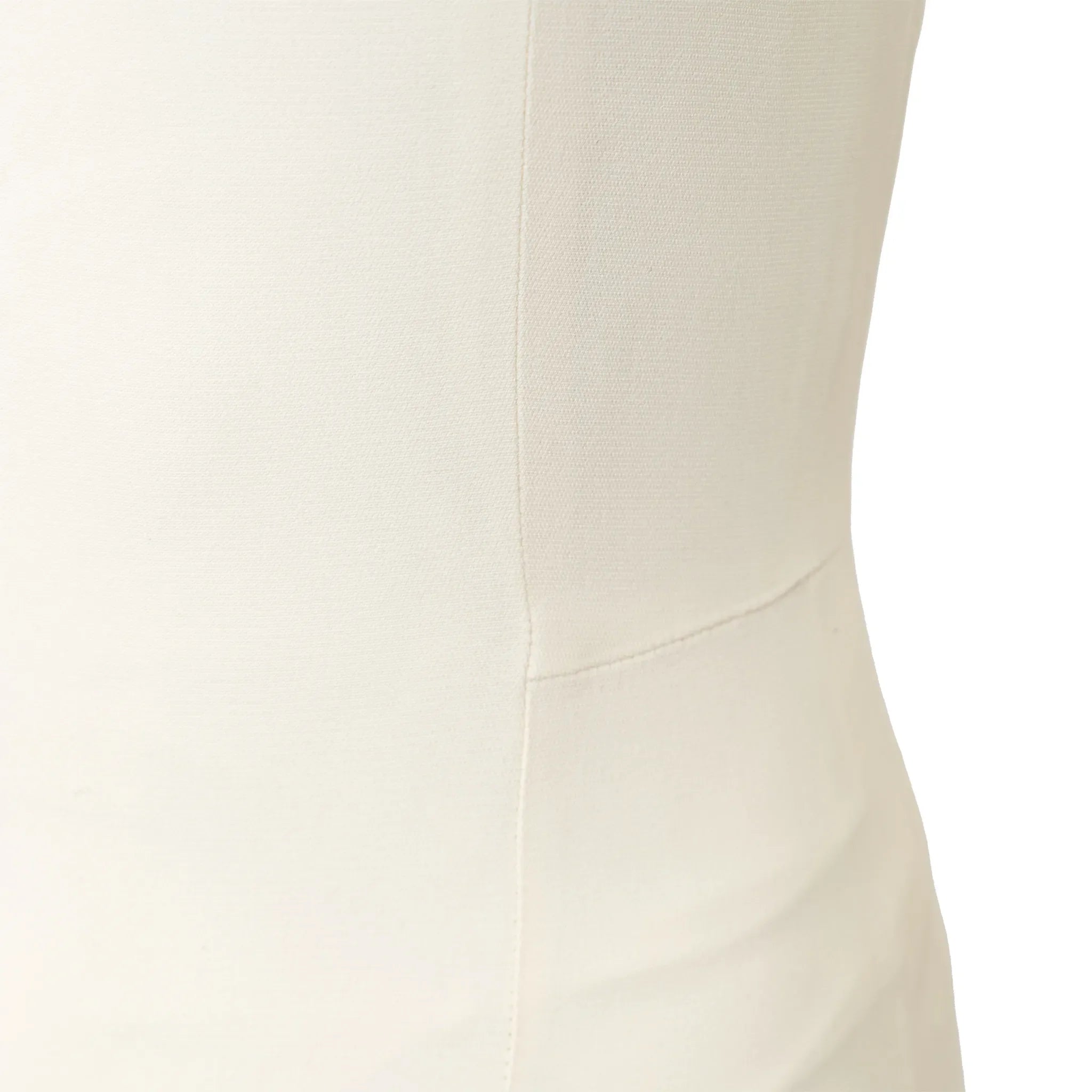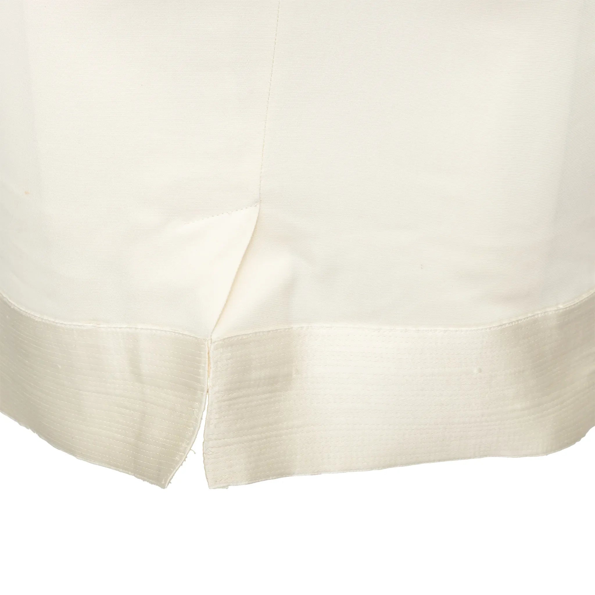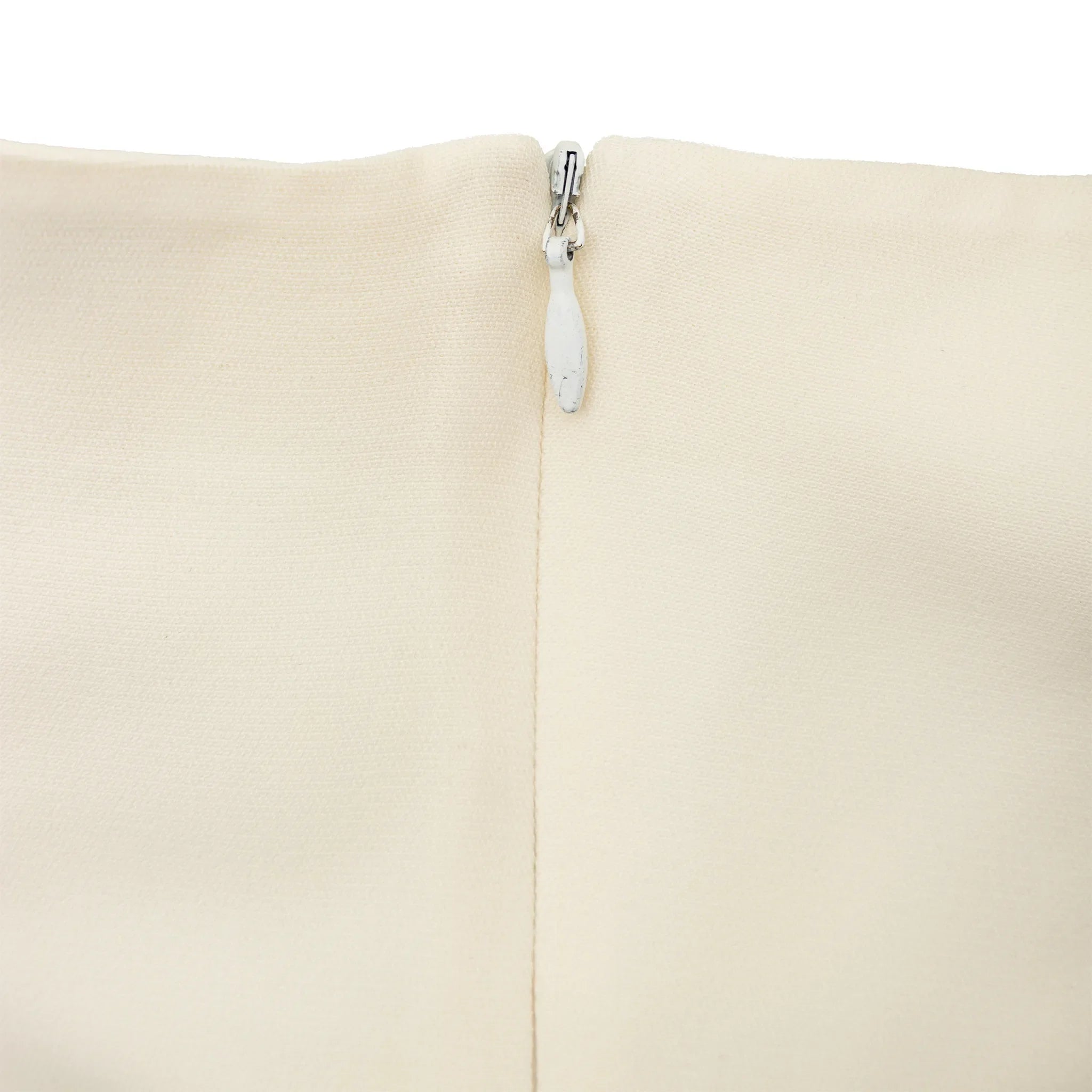 Lolita Lempicka off-white silk blend mini dress with rounded neckline, adjustable mother of pearl button straps, shaping pleats, and silk hem panel.