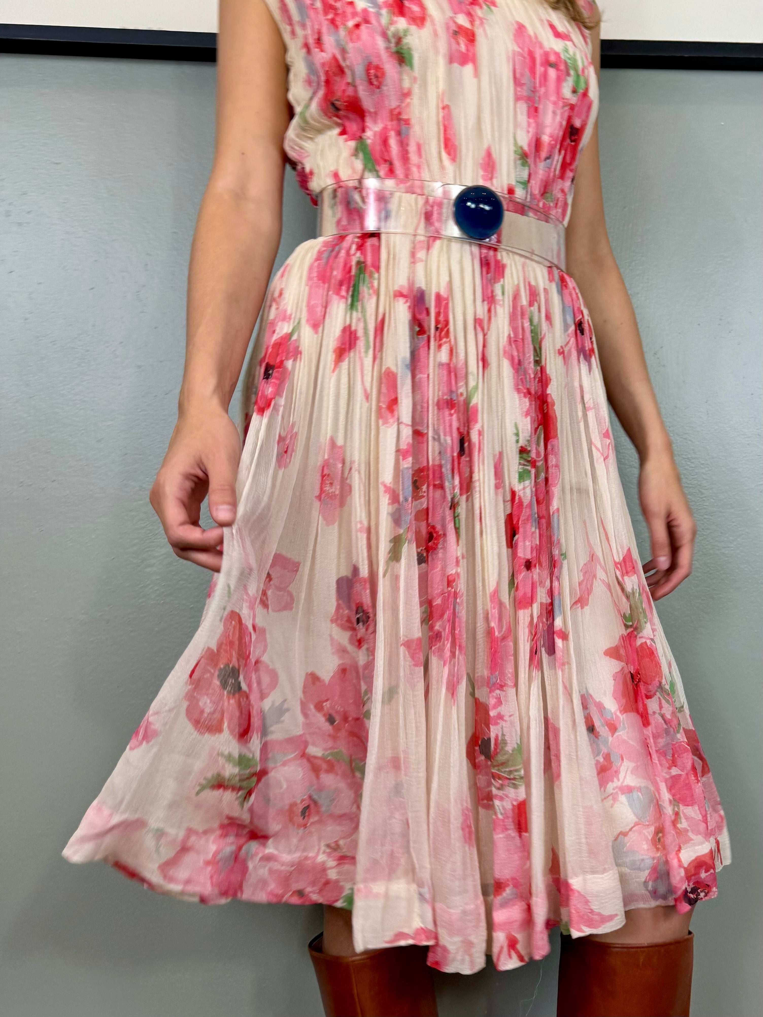 Oura, 40s chiffon pleated floral dress