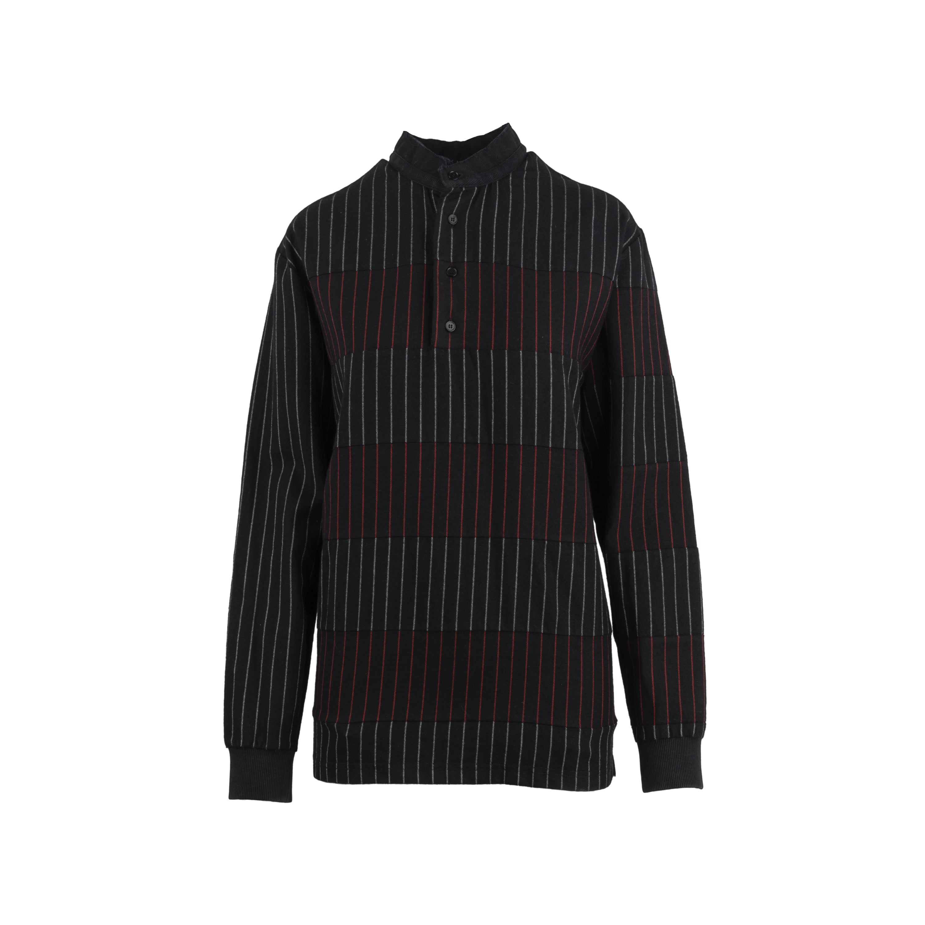 Givenchy black and red cotton and wool striped shirt. Korean style, long sleeves, four-button fastening.