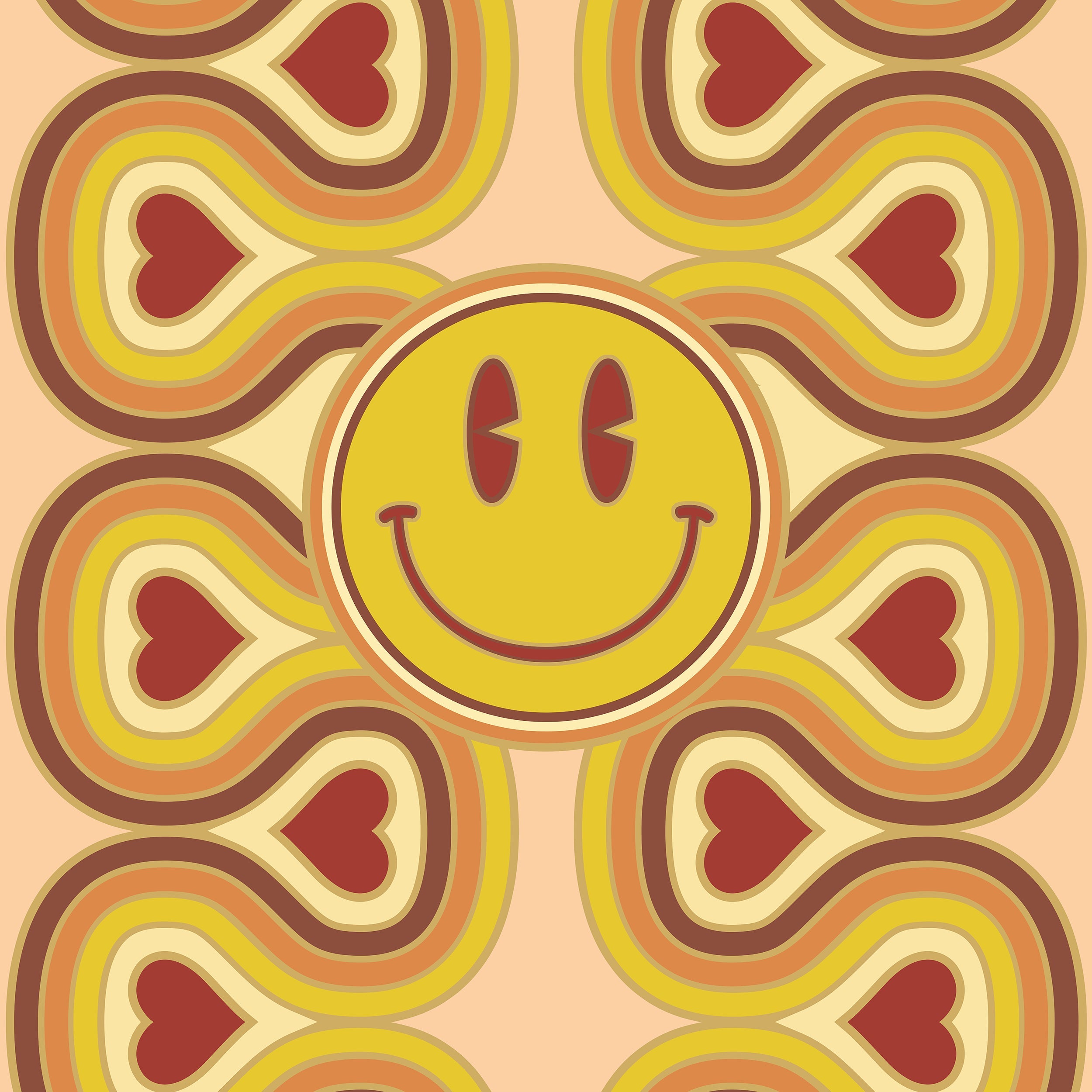 Step into retro bliss with this 1970's inspired robe designed to radiate good vibes and effortless style. Featuring smiley faces and hearts set against groovy wavy lines straight out of the disco era. The bold, feel-good print captures the free-spirited energy of the 1970s, making it perfect for lounging, layering, or turning everyday moments into a fashion statement. The flowy lightweight fabric with wide sleeves and relaxed silhouette create an easy, flattering fit;  while the open-front design makes it versatile enough to wear at home, by the pool, or styled over your favorite outfit.