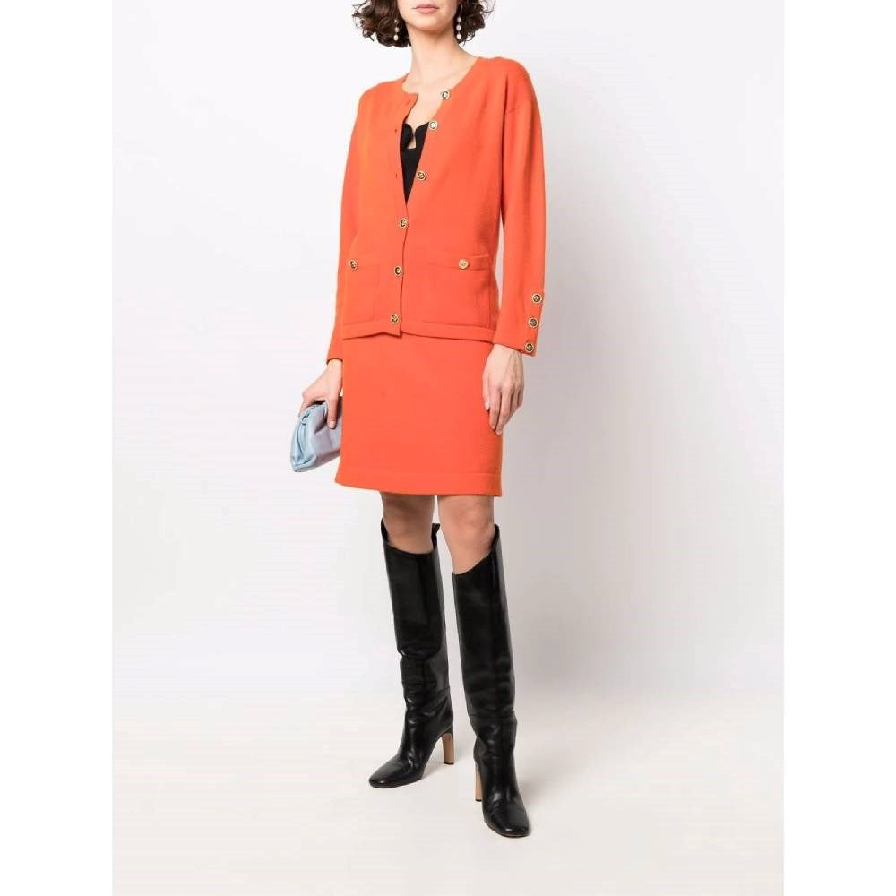 Chanel orange cashmere 80s mini skirt with elasticated waist.