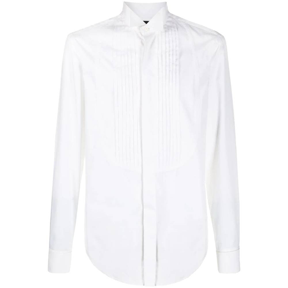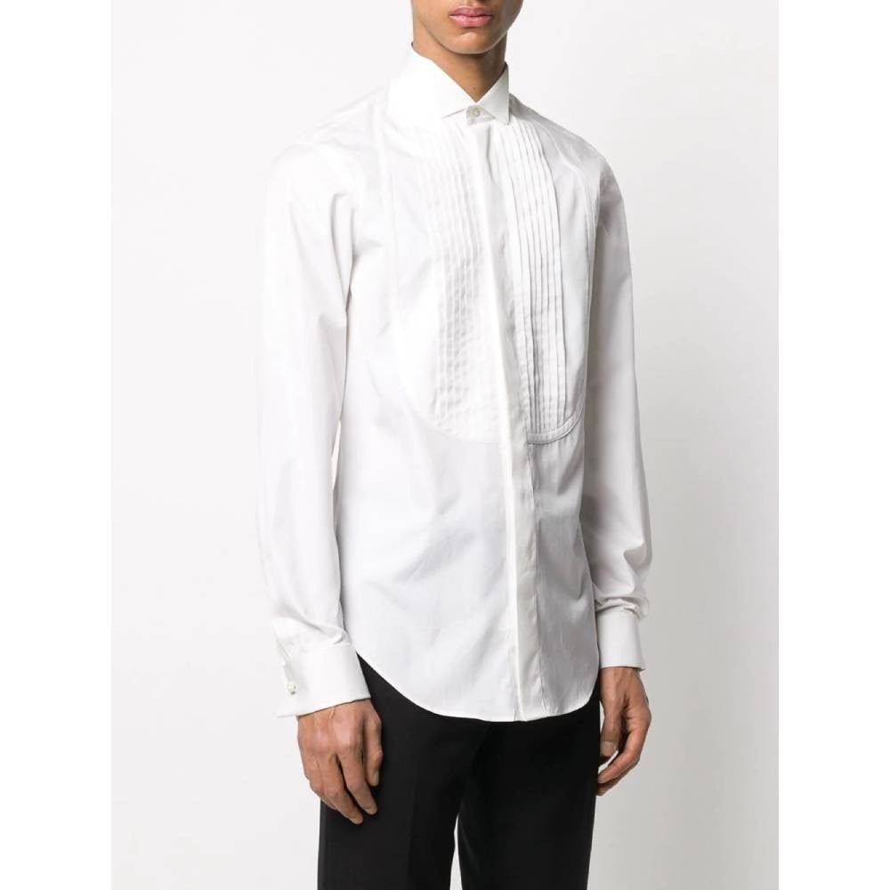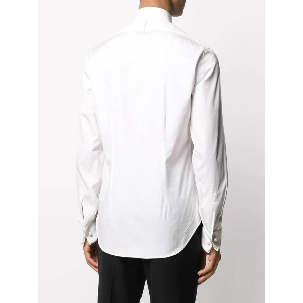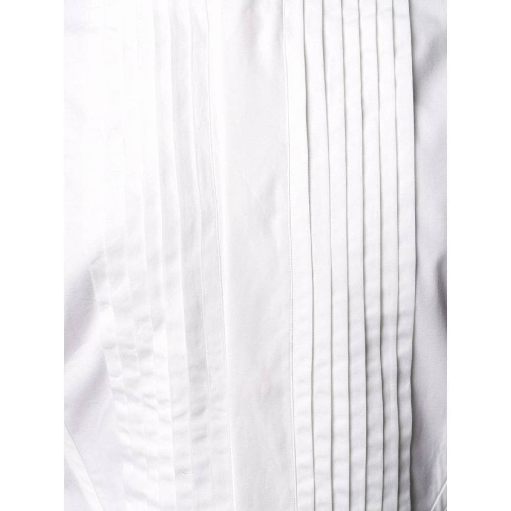 Gianfranco Ferrè white cotton shirt. Frills embellished with black stones and rhinestones. Classic collar, frontal buttons closure and black button on the cuffs.