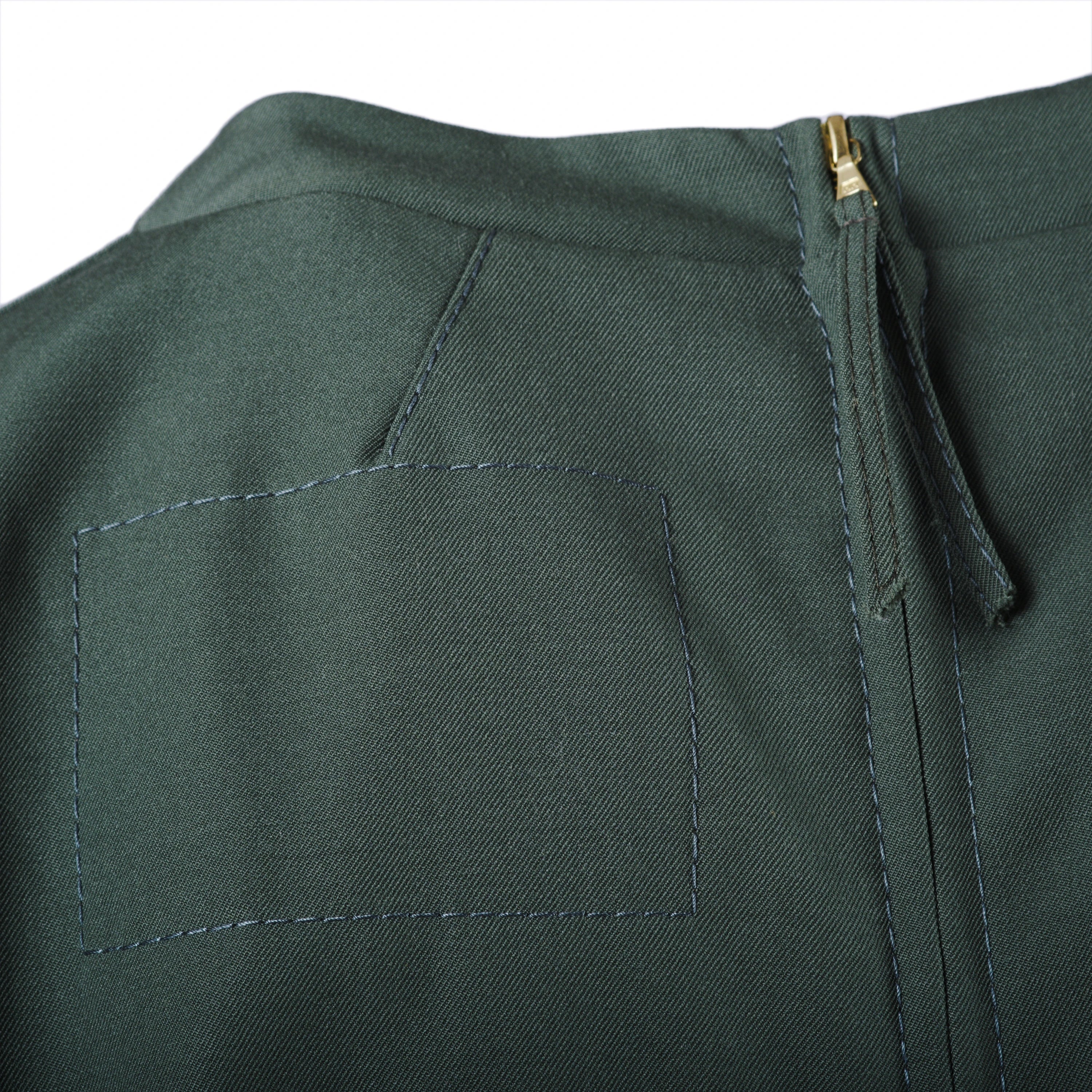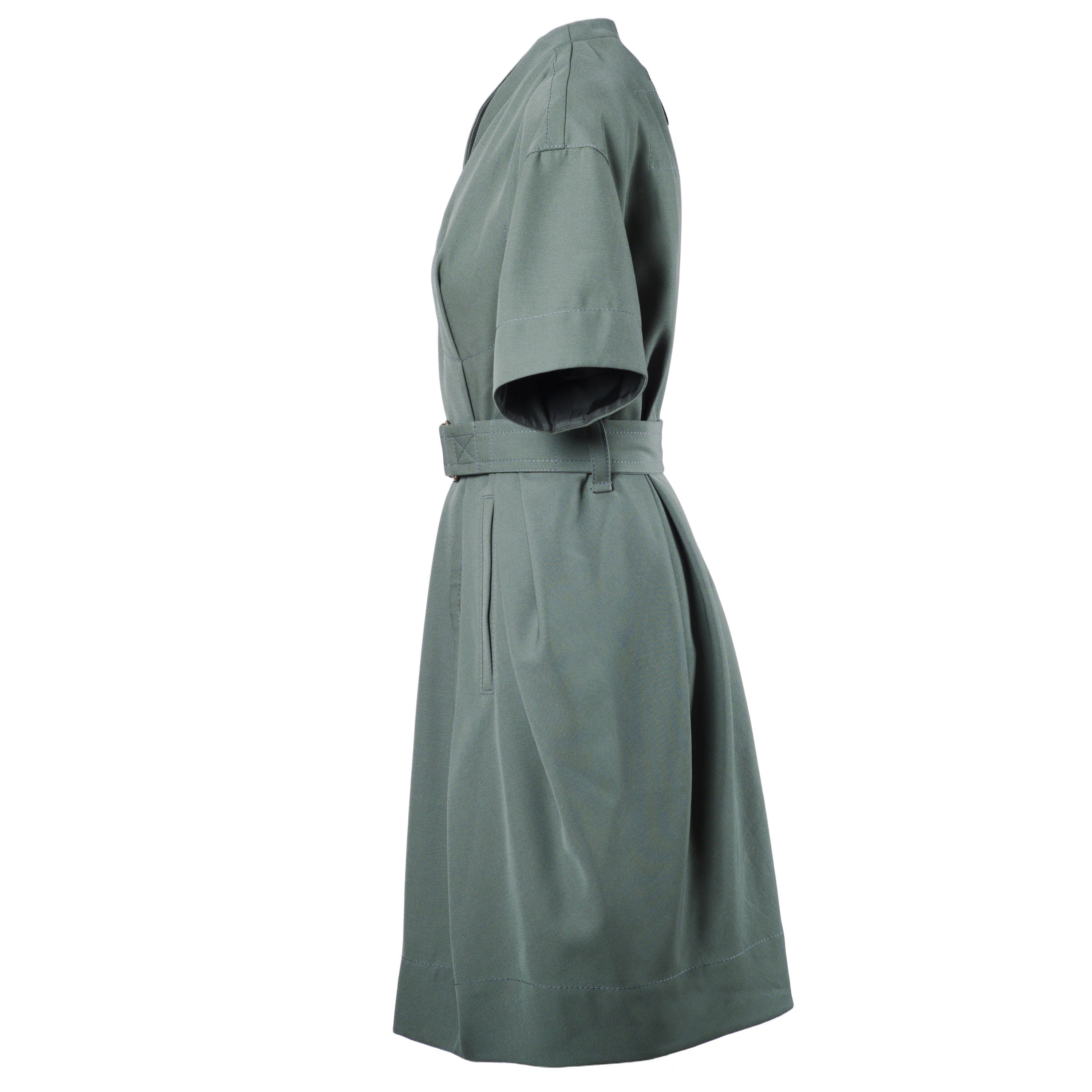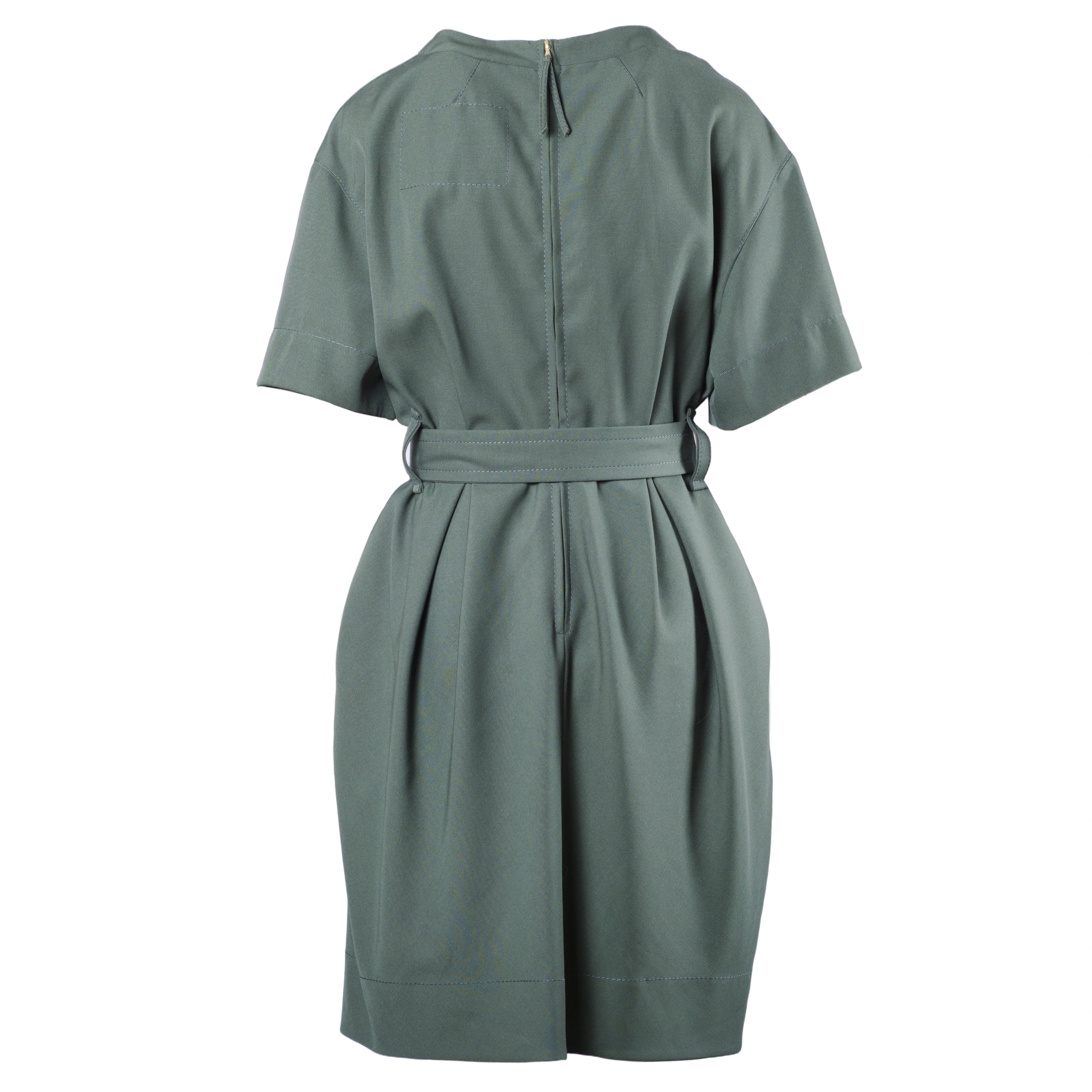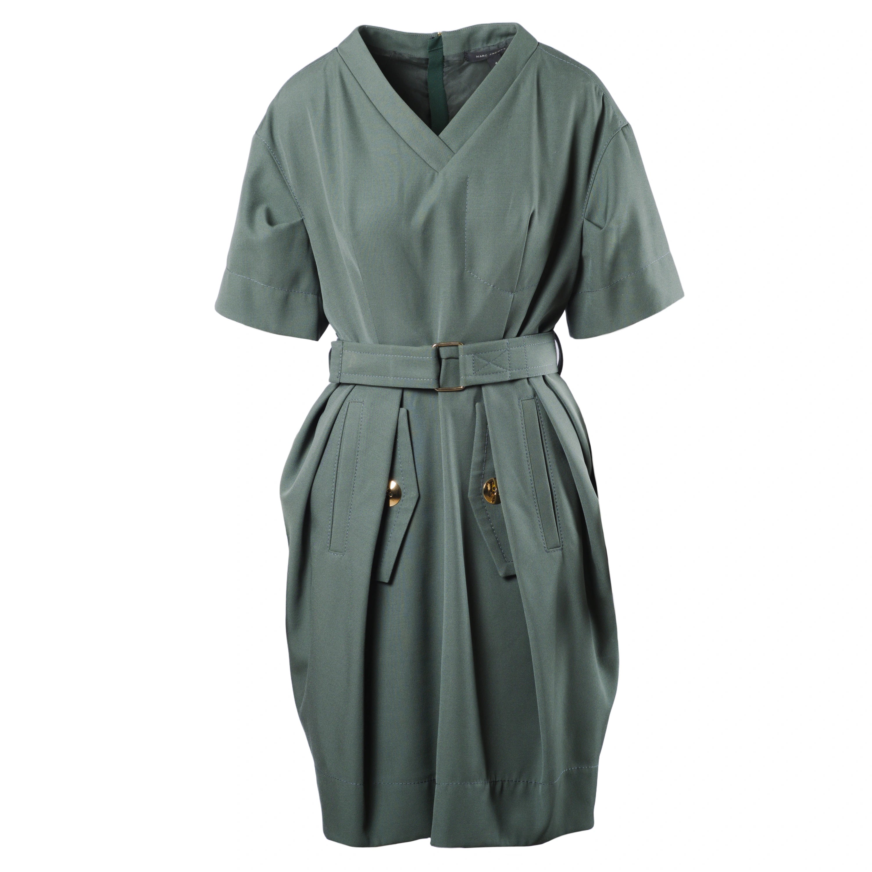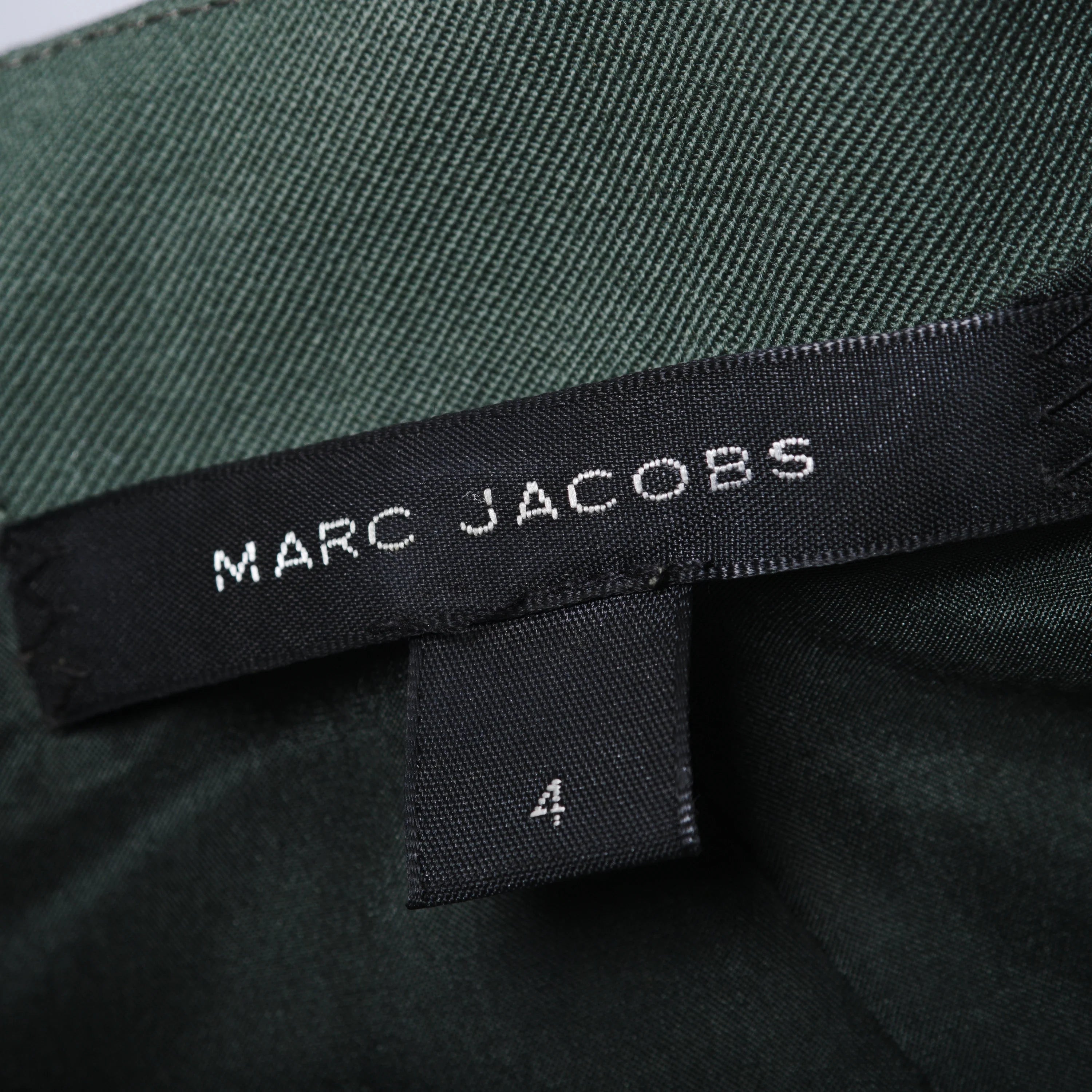 Marc Jacobs midi dress in green wool, featuring a clean and linear cut. Made from high-quality wool, soft and durable, it provides comfort and long-lasting wear. The silk lining ensures a smooth feel against the skin. The midi length and deep green color give the piece a classy and exclusive appearance.