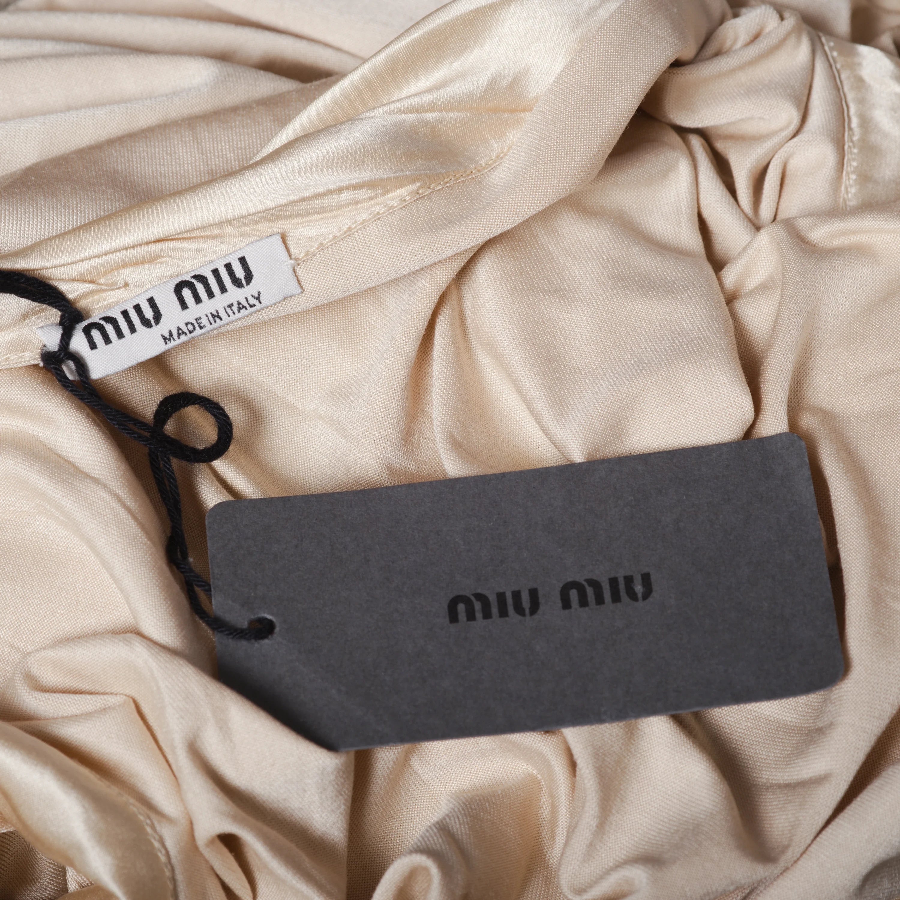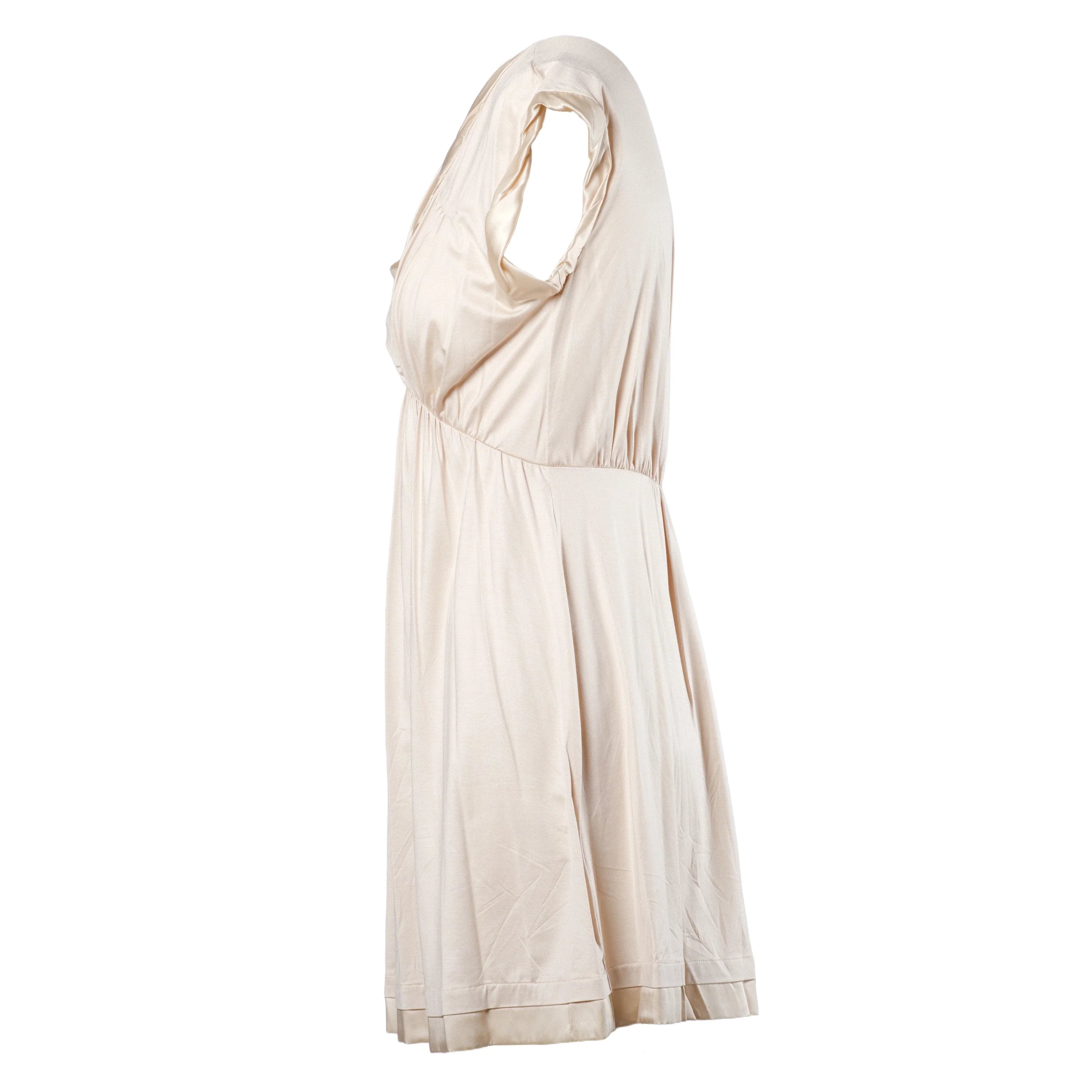 Nude Pink Short-Sleeve Miu Miu Dress, made from lightweight, soft, and breathable fabric. The minimal yet elegant design is highlighted by precise stitching and high-quality finishes.