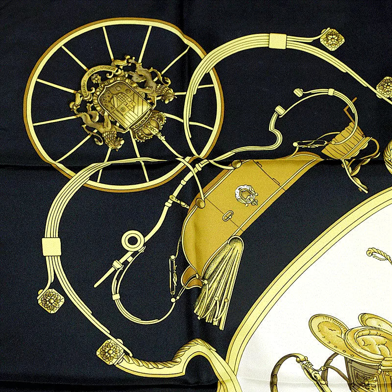 1974 Hermès Black “Springs” by Philippe Ledoux 90cm Silk Twill Scarf