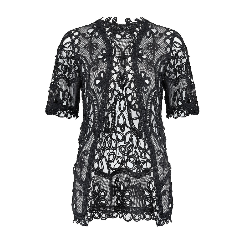 1900s Edwardian Black Tape Lace Open Jacket