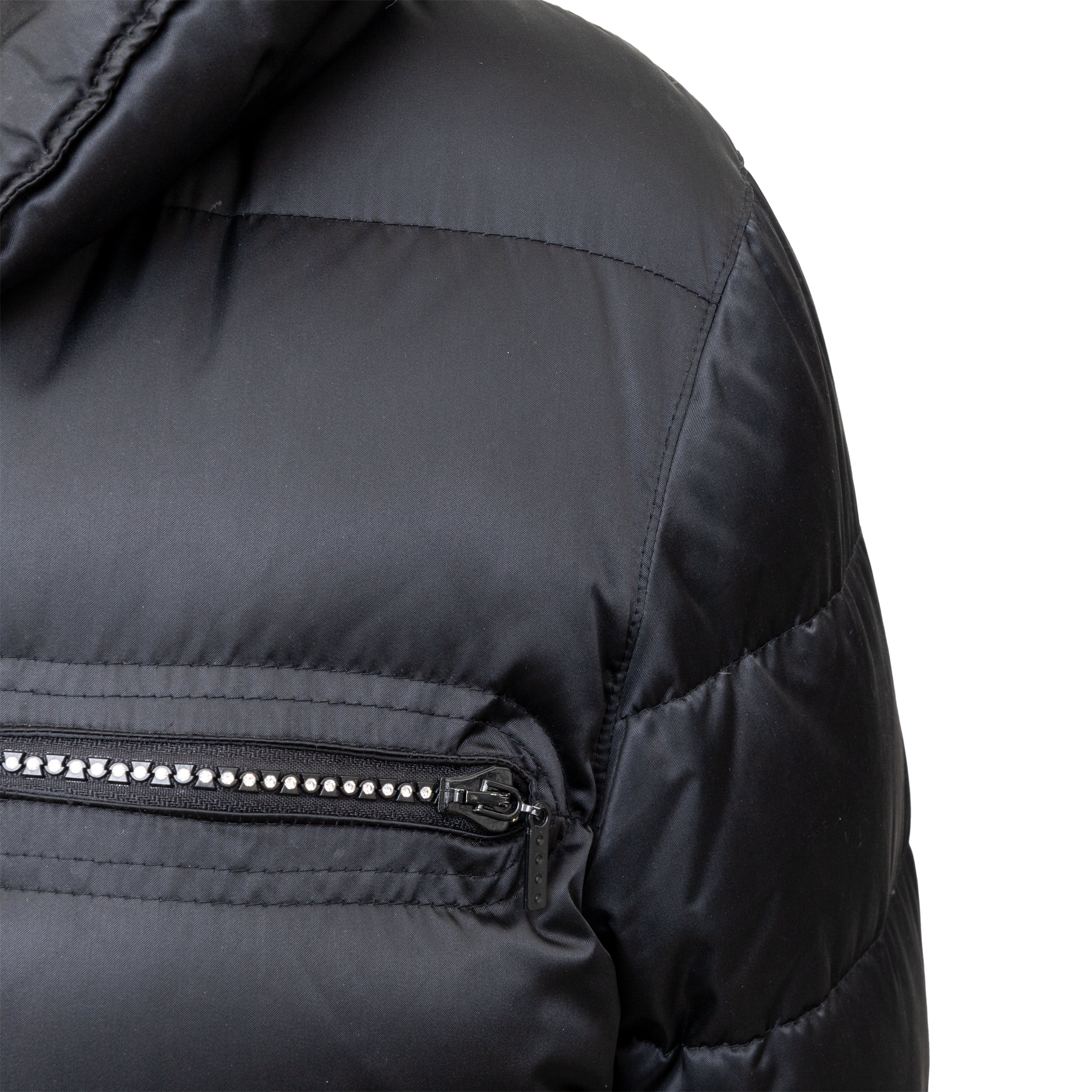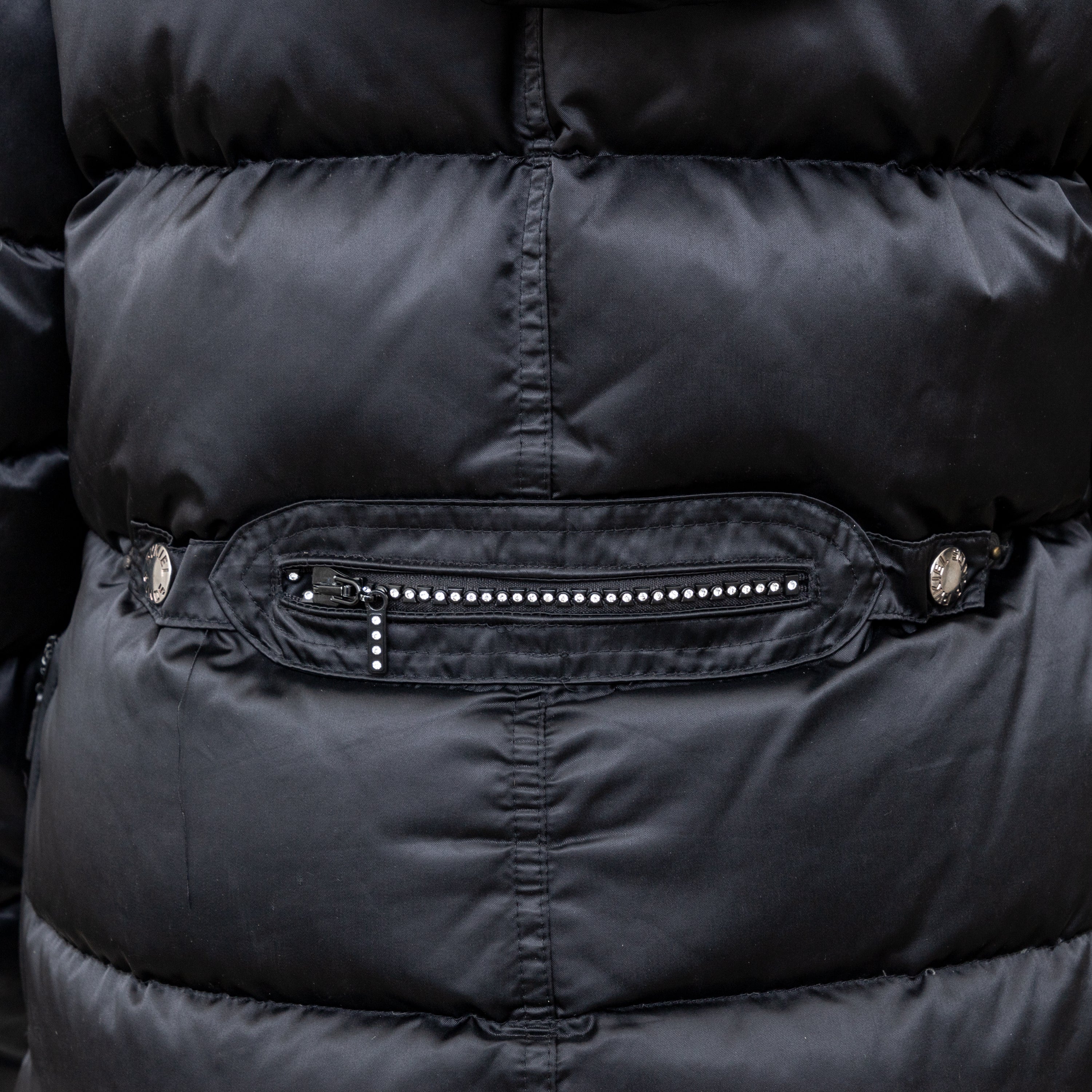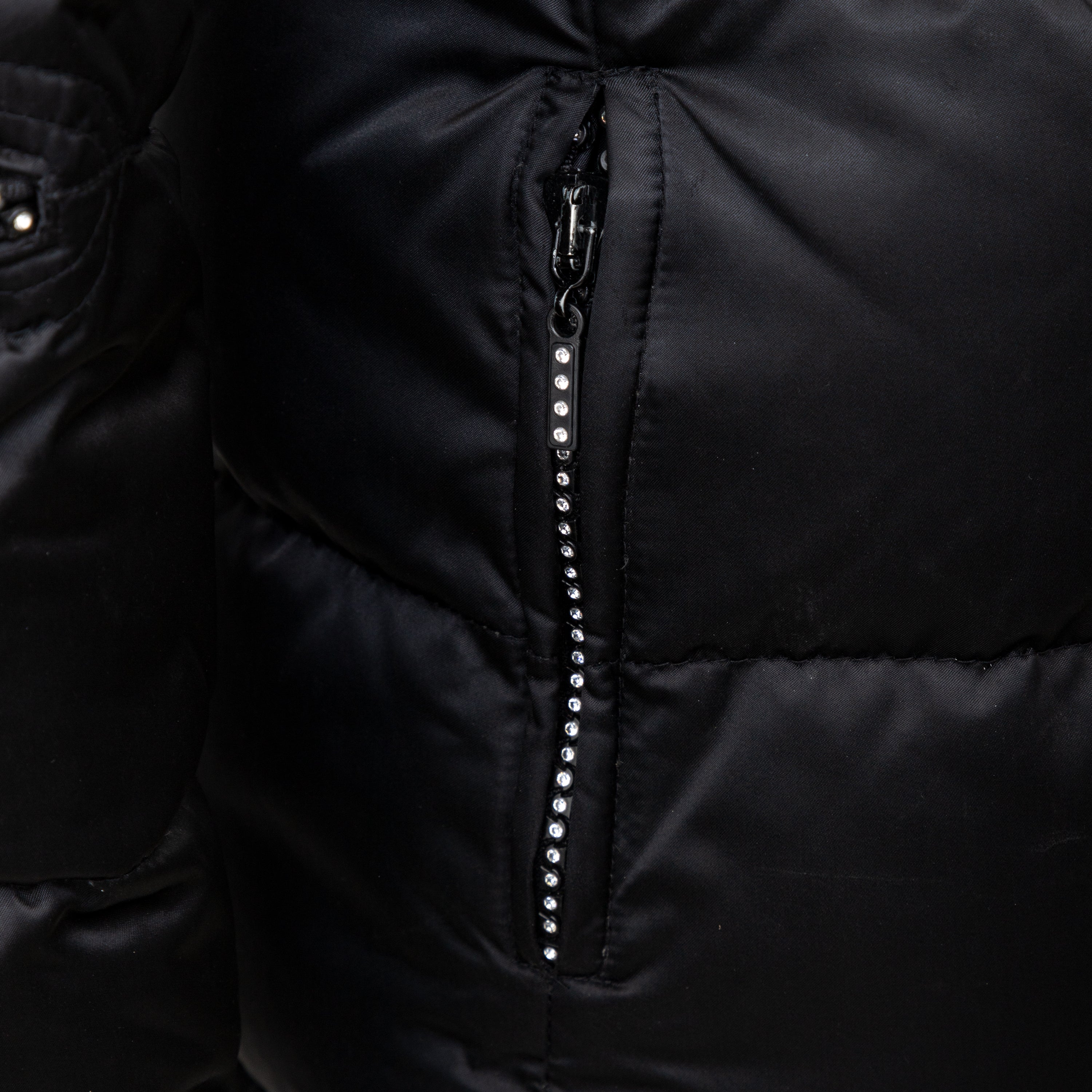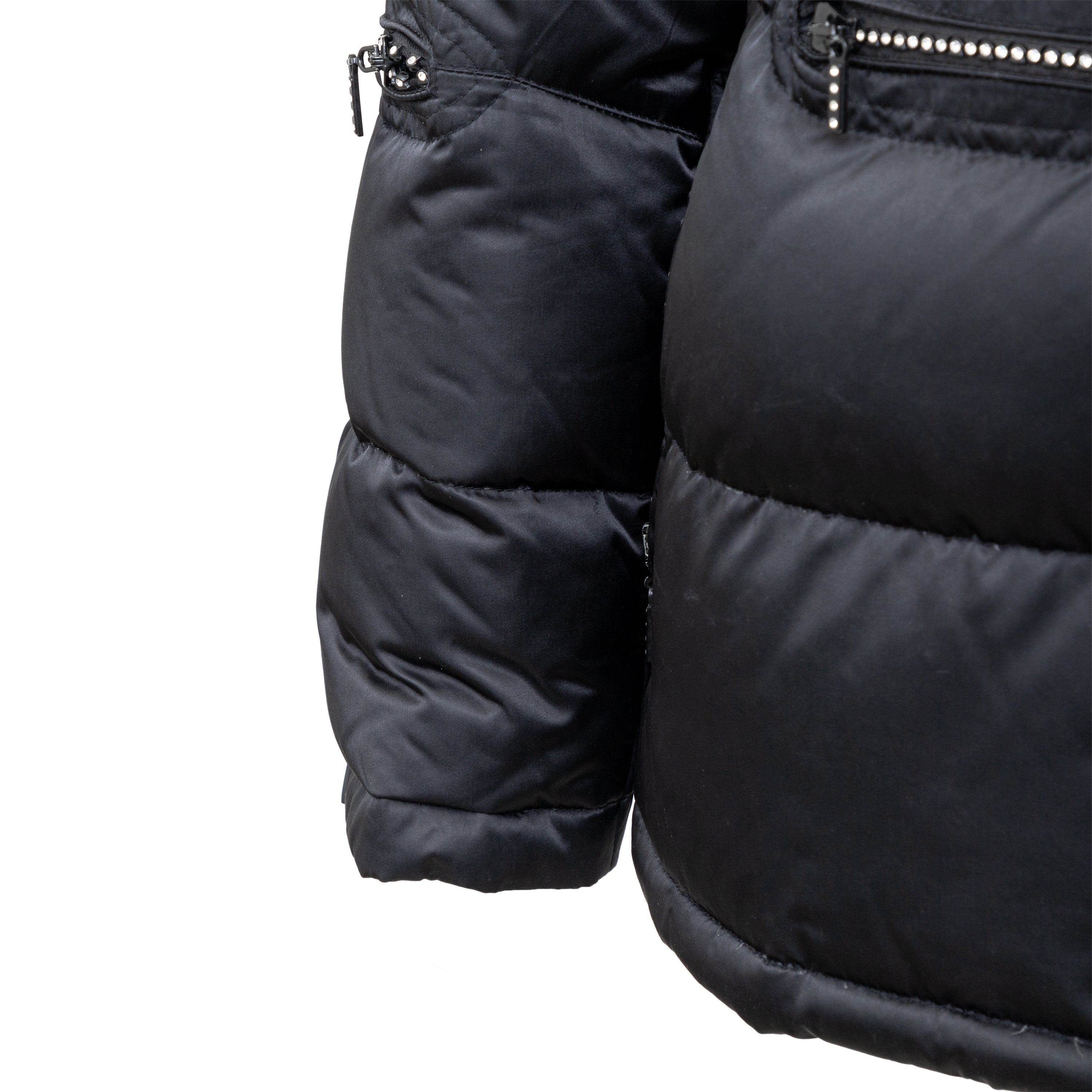 This Sonia Rykiel black down jacket is a warm and stylish addition to your closet. Featuring a front zip fastening and long sleeves, this jacket is both functional and fashionable. The rhinestone details on the pocket zips add a touch of glamour to any winter ensemble.