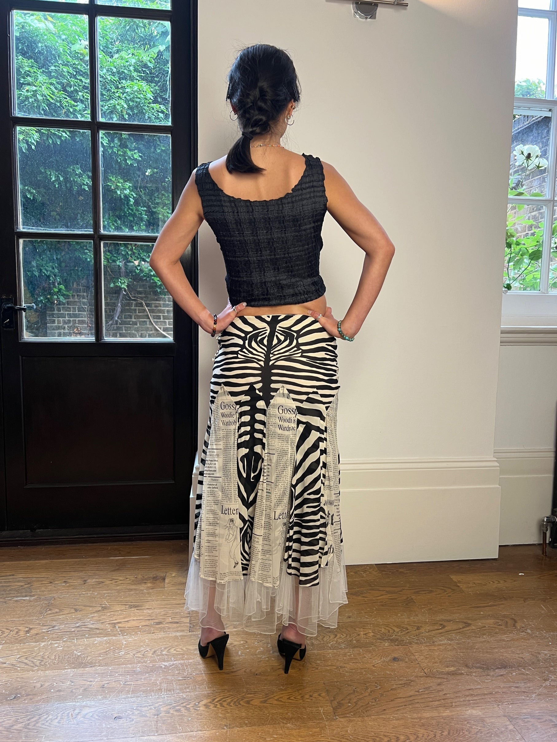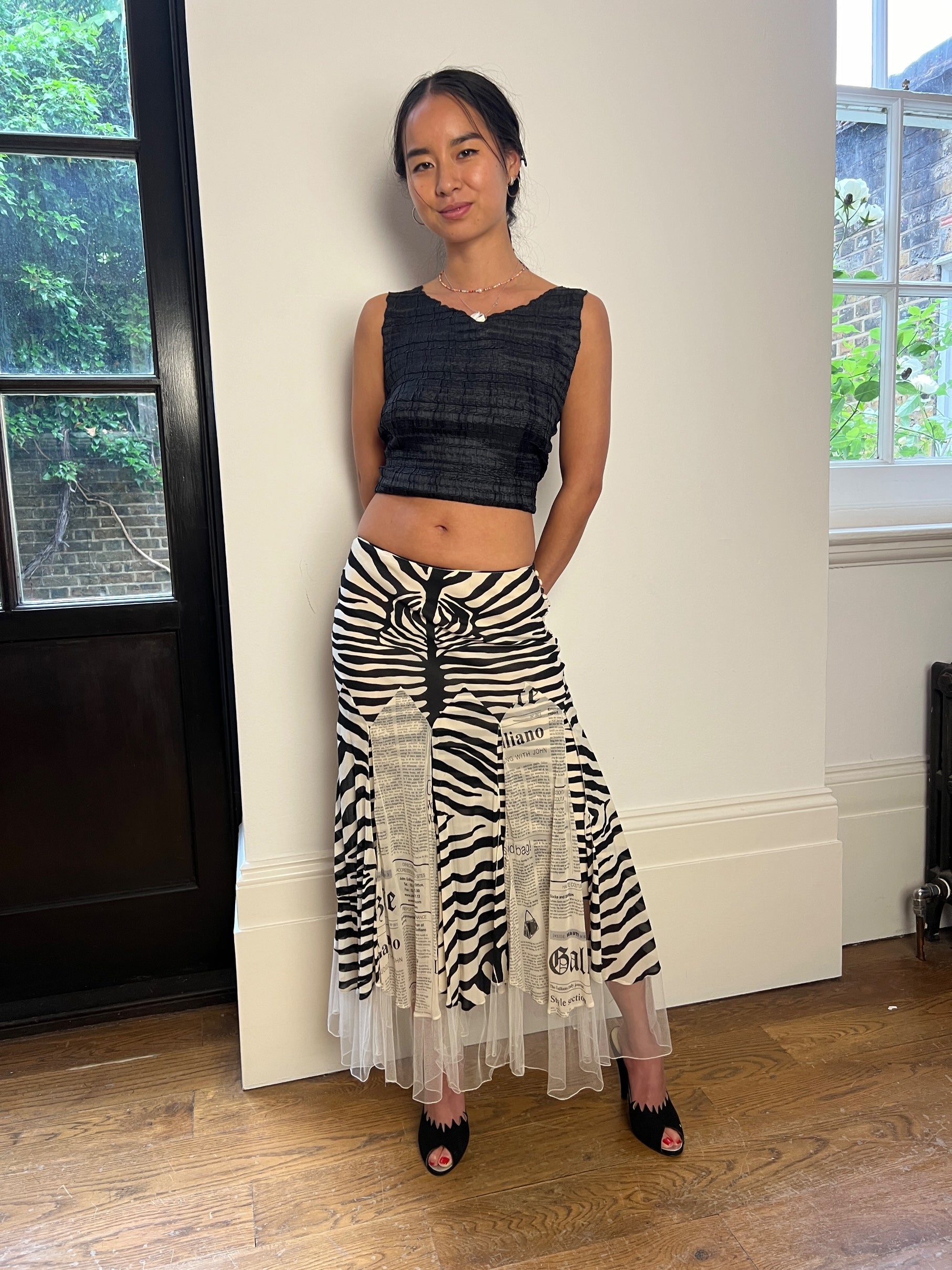 2005 John Galliano Zebra and Newspaper Print Skirt