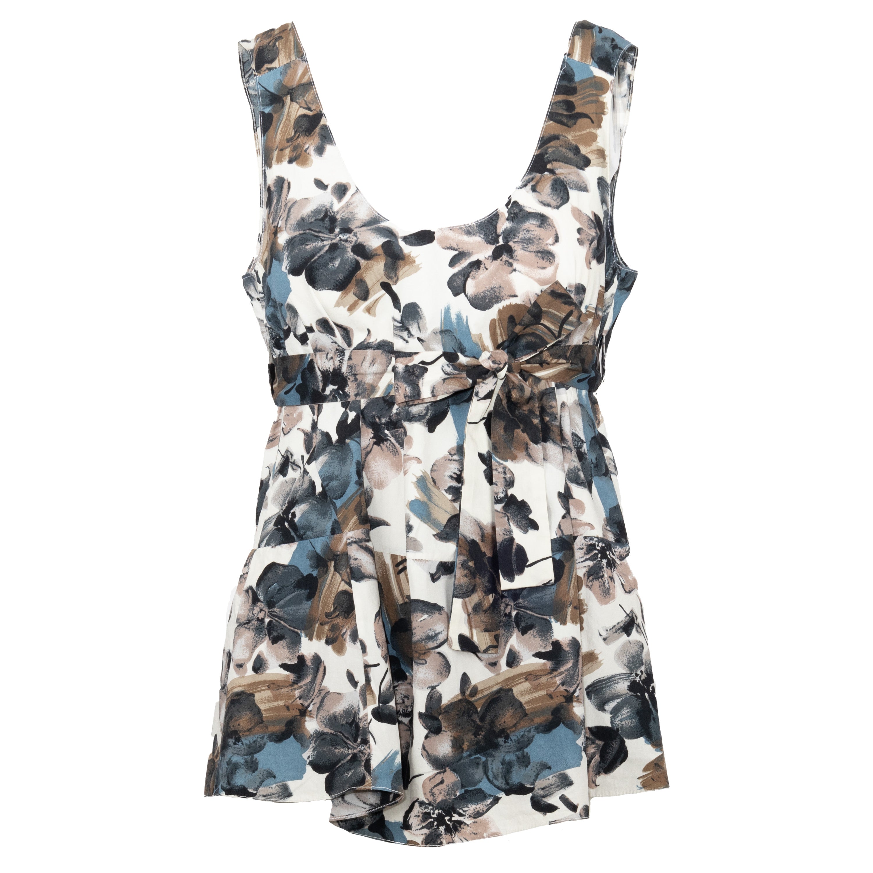 This sleeveless top by Marni features a multicolor floral print in a watercolor stroke design, along with a belt for a cinched look. Crafted from cotton for a comfortable fit, the top also features a deep neck for a flattering aesthetic.