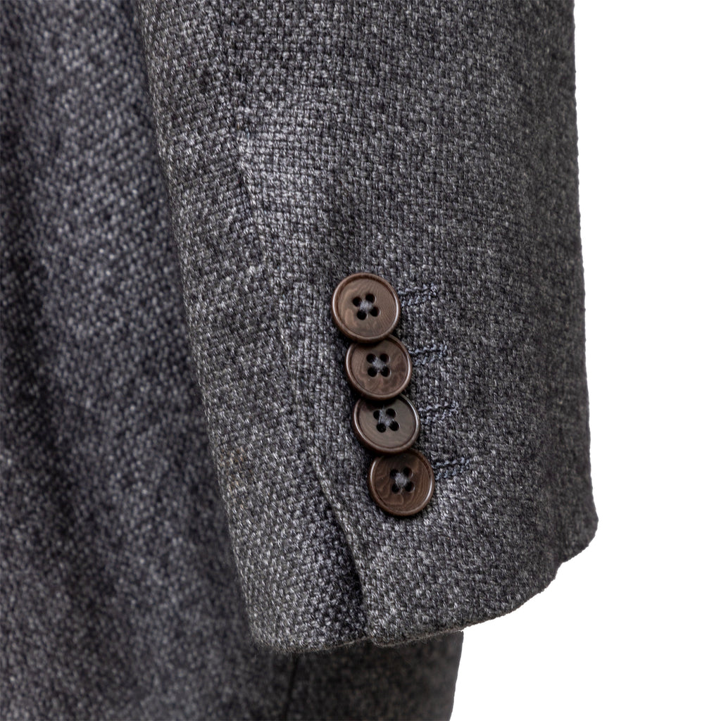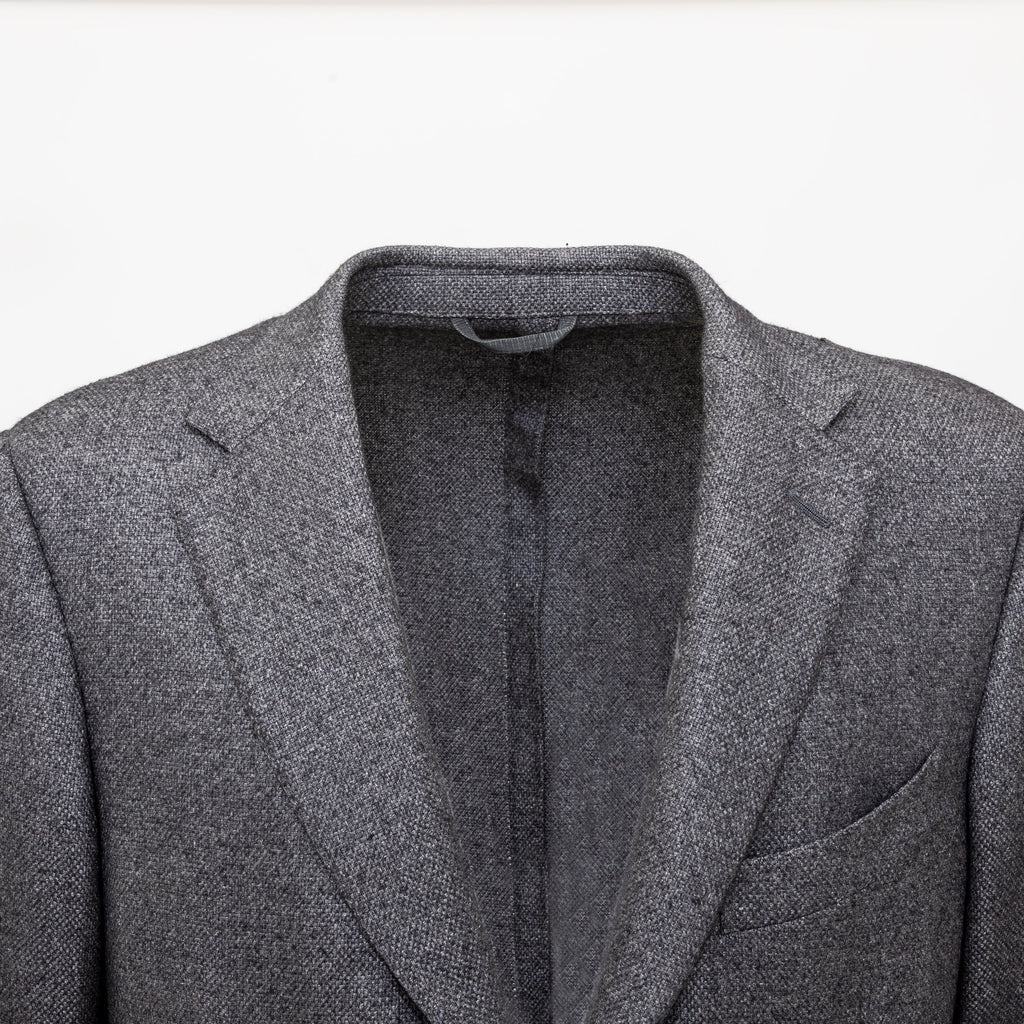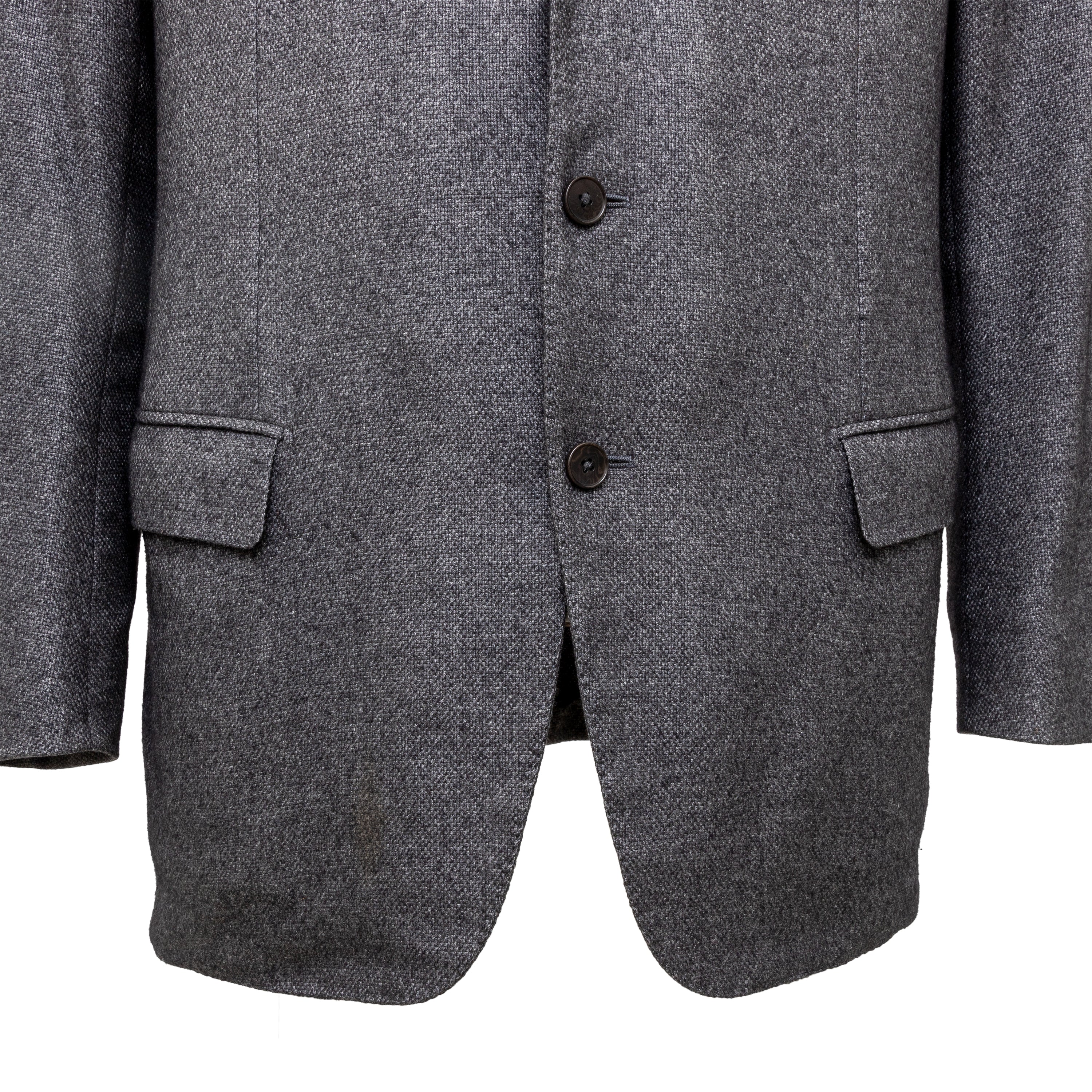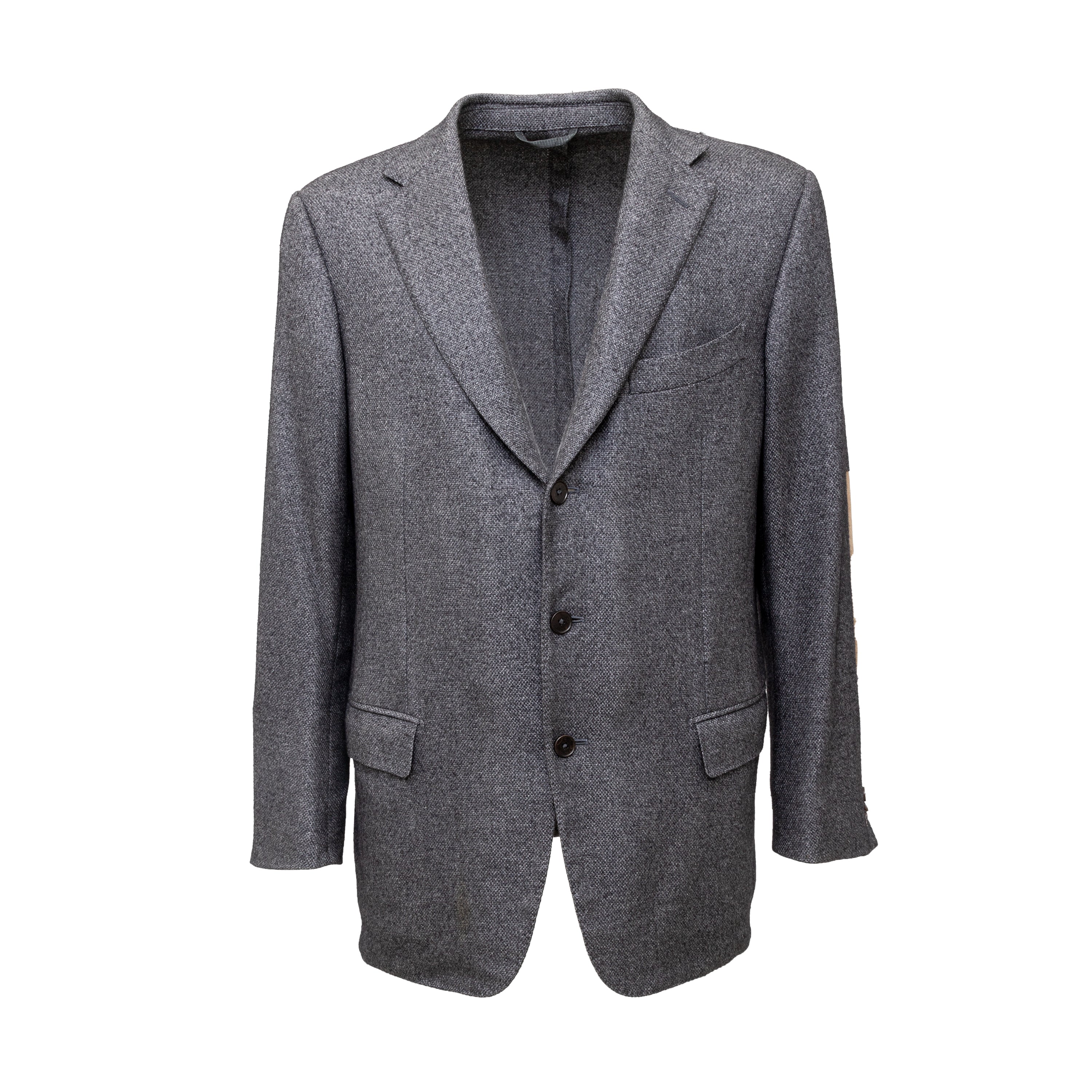 Expertly crafted from a luxurious blend of silk and cashmere, the Ermenegildo Zegna Fairway Jacket exudes sophistication. The melange grey color complements the 3 front buttons and flap pockets. Unlined for lightness, with a beige suede patch on the elbows, ensuring both comfort and style.