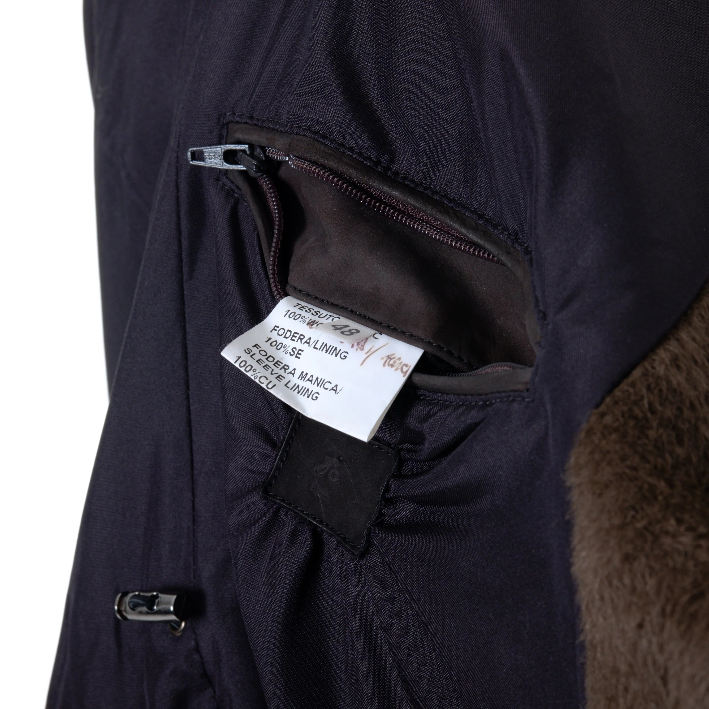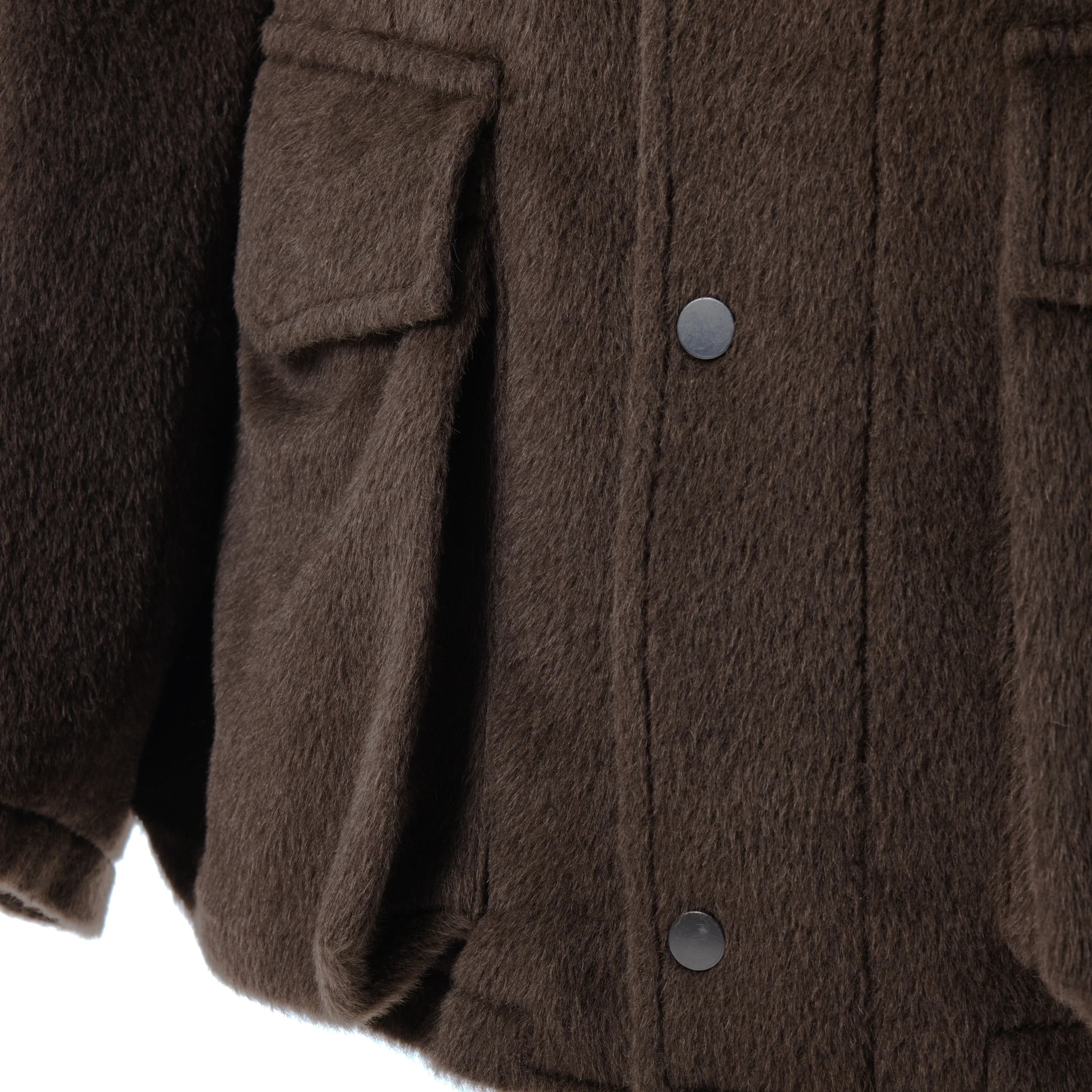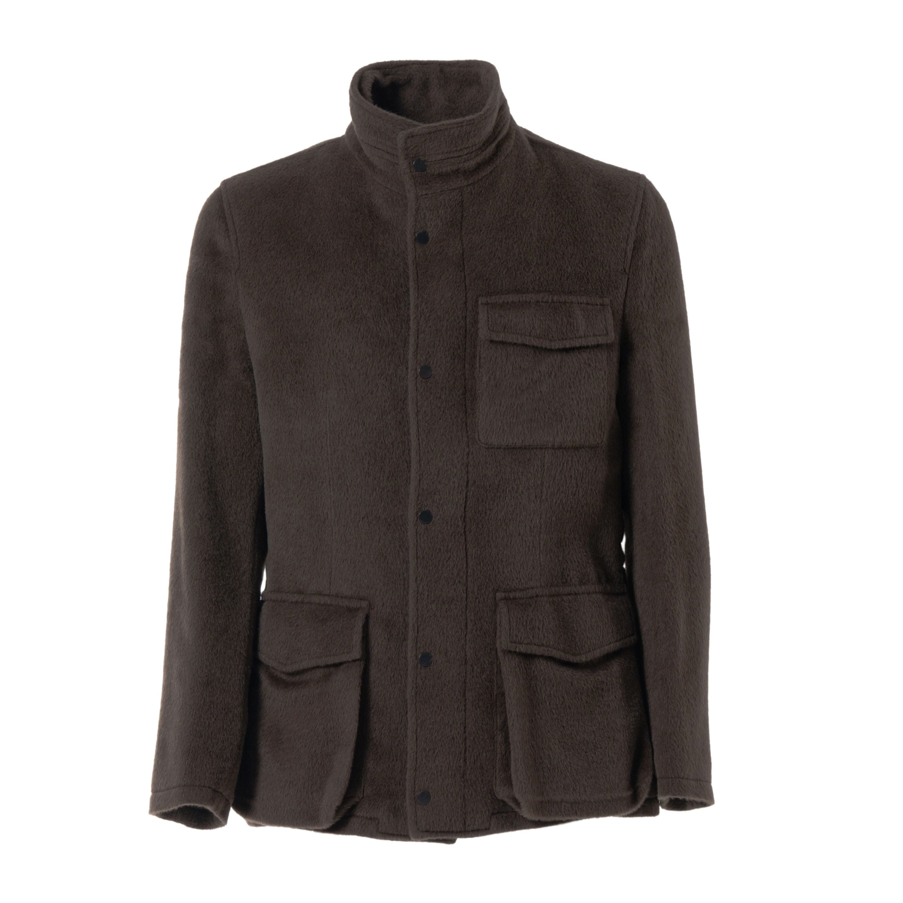FG Roma jacket in soft 100% wool, crafted in a deep chocolate-brown tone and finished with a stand collar, snap buttons and practical front pockets. Warm and easy to layer, it reflects the brand’s Italian craftsmanship and a clean, understated style. A versatile everyday piece from the 2010s.