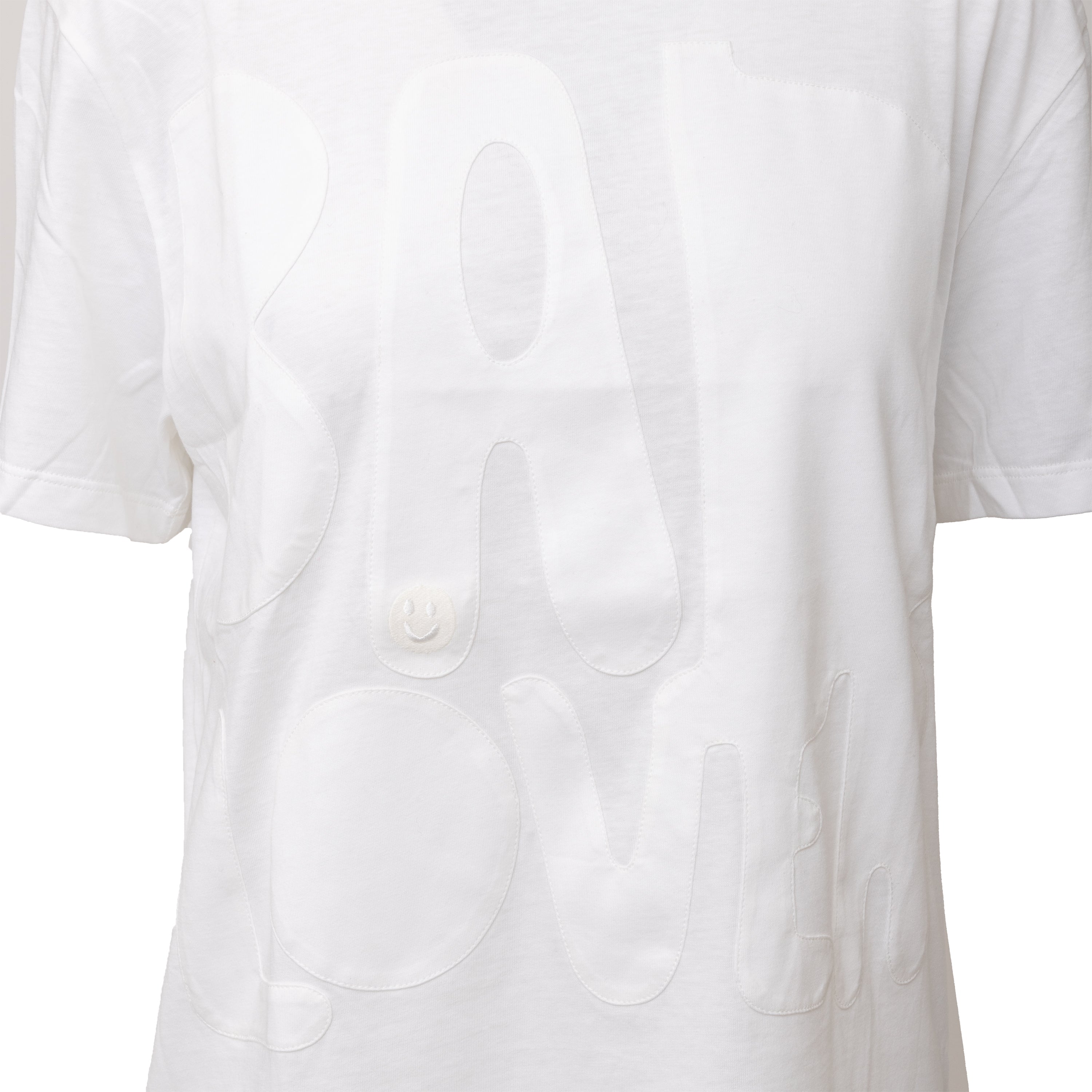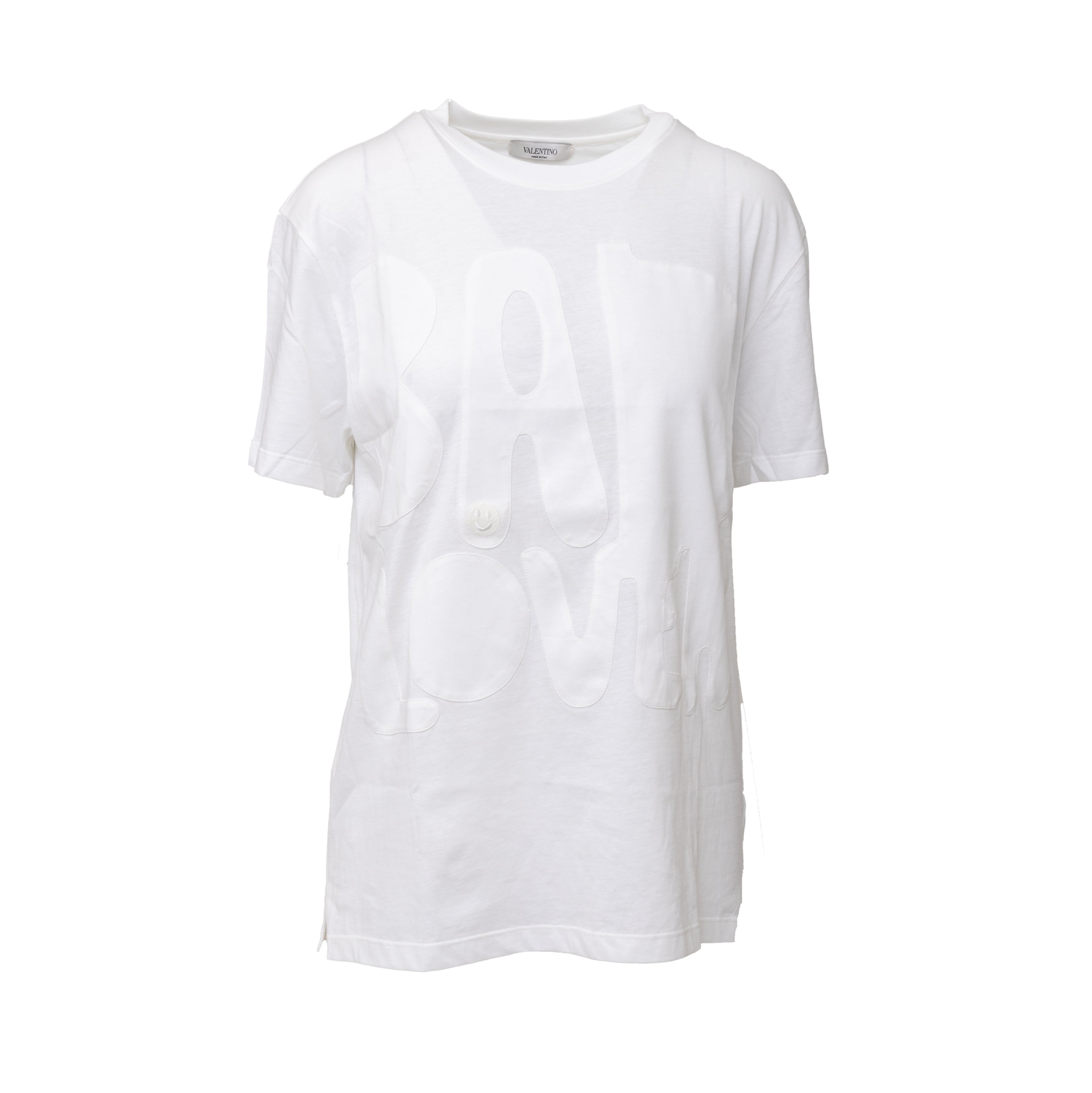 The Valentino x Melanie Matranga t-shirt from the Fall Winter 2020 collection features a 'Bad Lover' print at the chest, inspired by French artist Mélanie Matranga. This round neck t-shirt is an everyday staple with a touch of artistic expression.