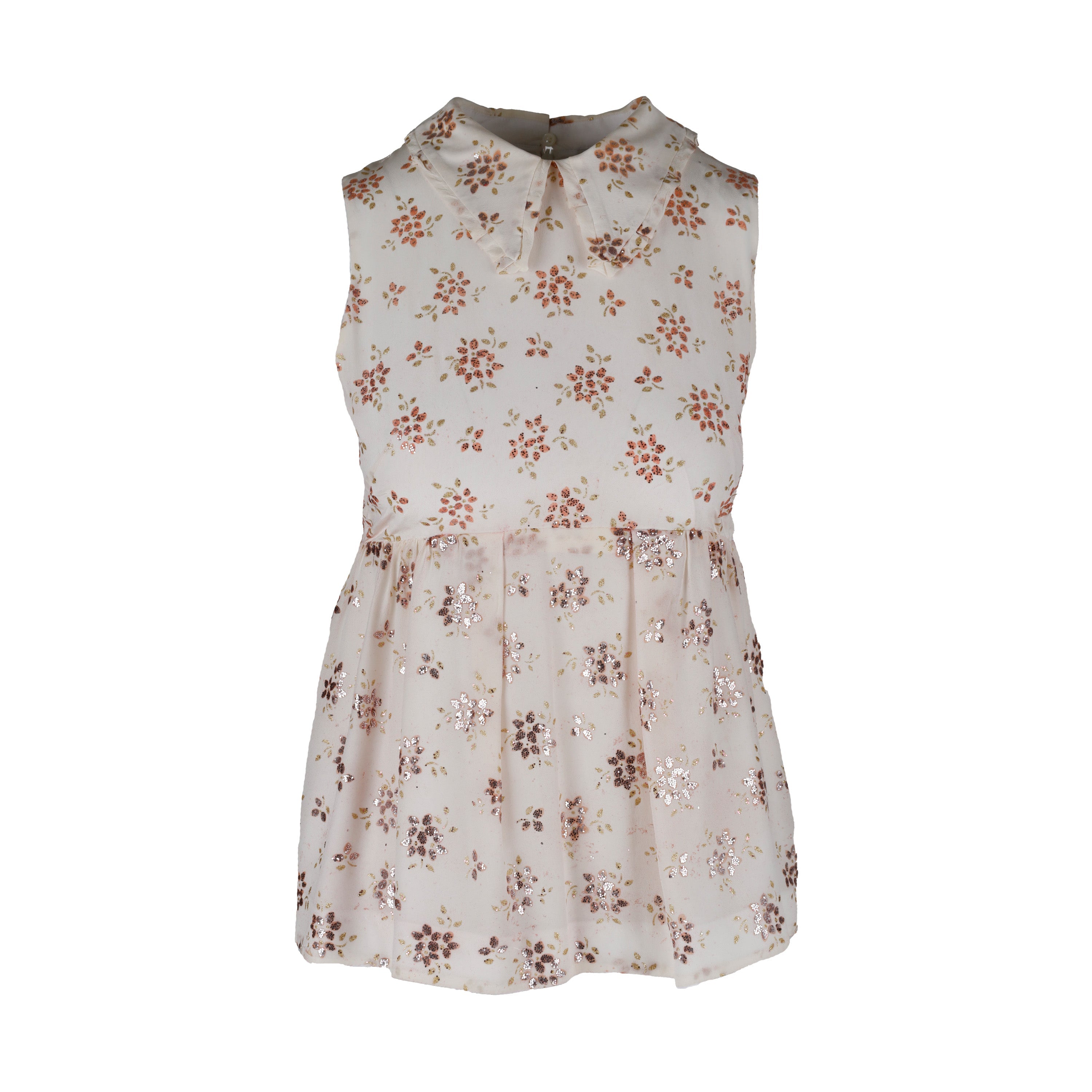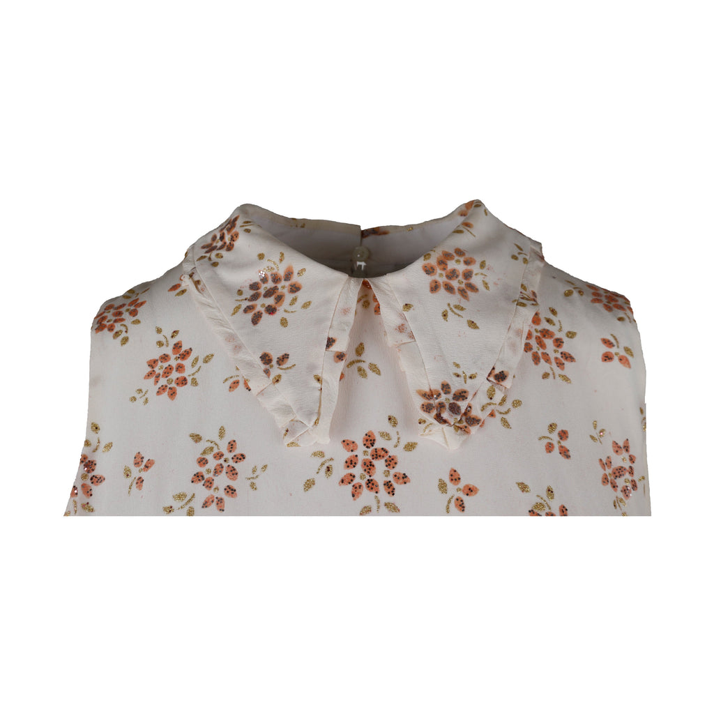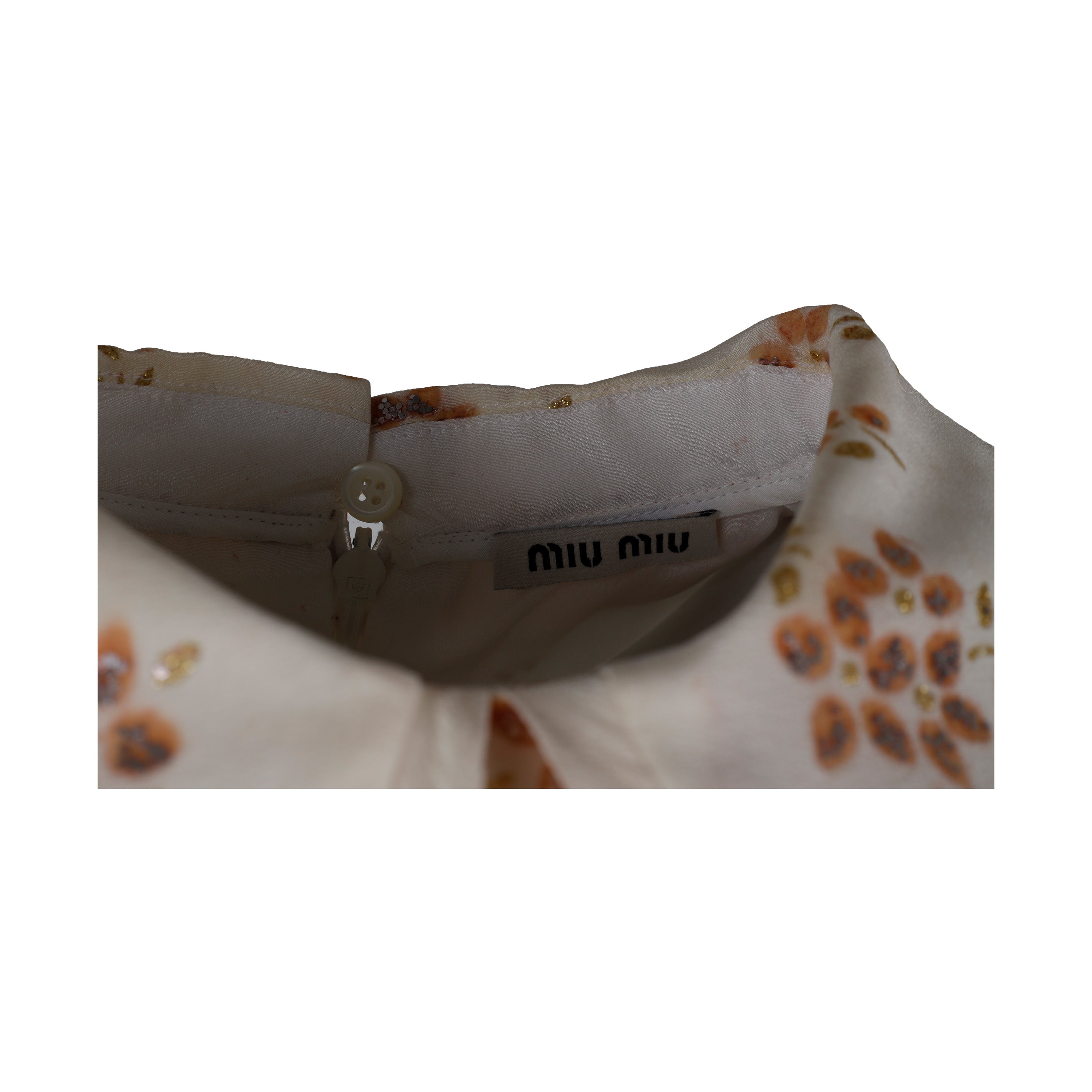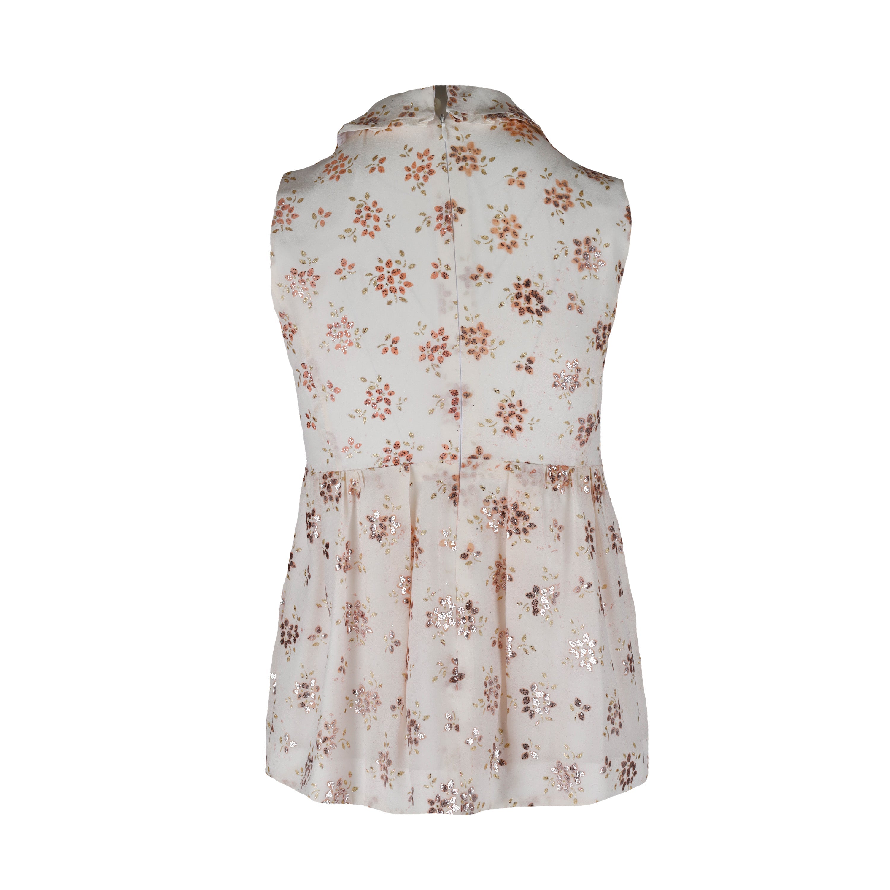 Featuring a delicate wing-collared neckline and a pleated peplum waist, this Miu Miu top is crafted from lightweight fabric with floral prints accented with small glitter details. A zipper closure at the back offers a comfortable fit.