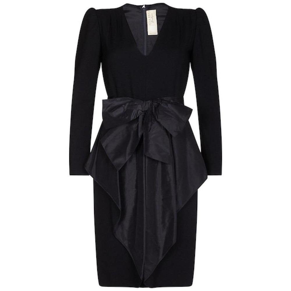 Nina Ricci 1980s Black Wool and Silk Cocktail Dress with Front Bow Detail
