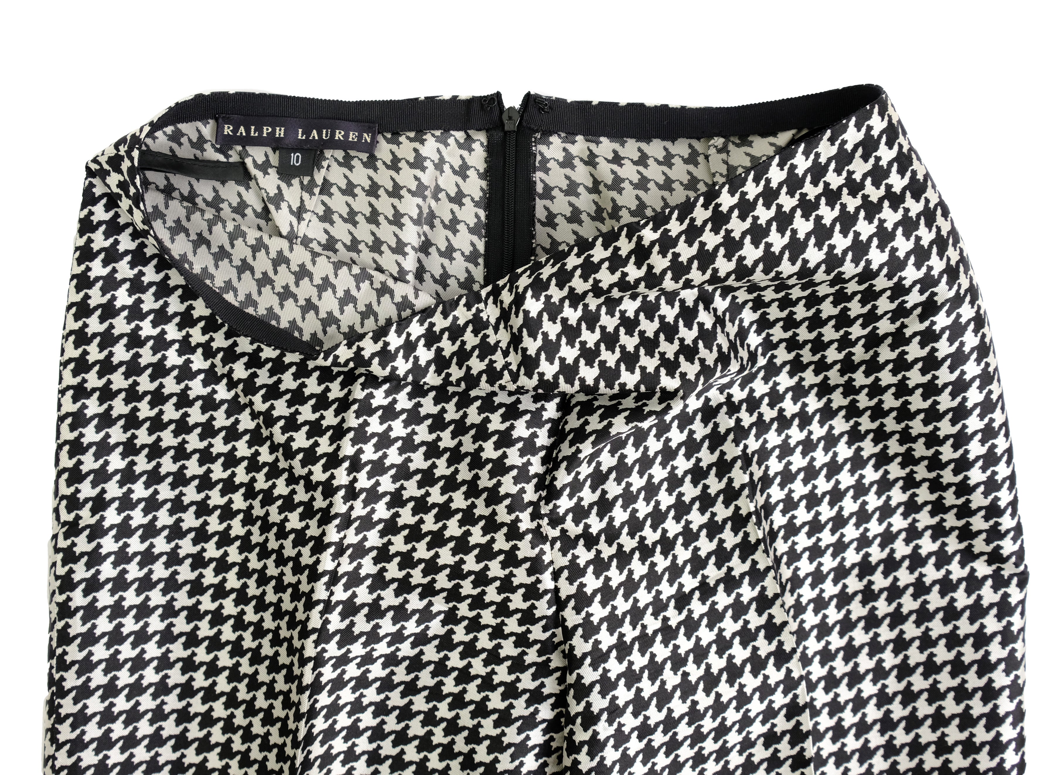 A glamorous pair of straight leg trousers by Ralph Lauren, in black and white houndstooth silk.