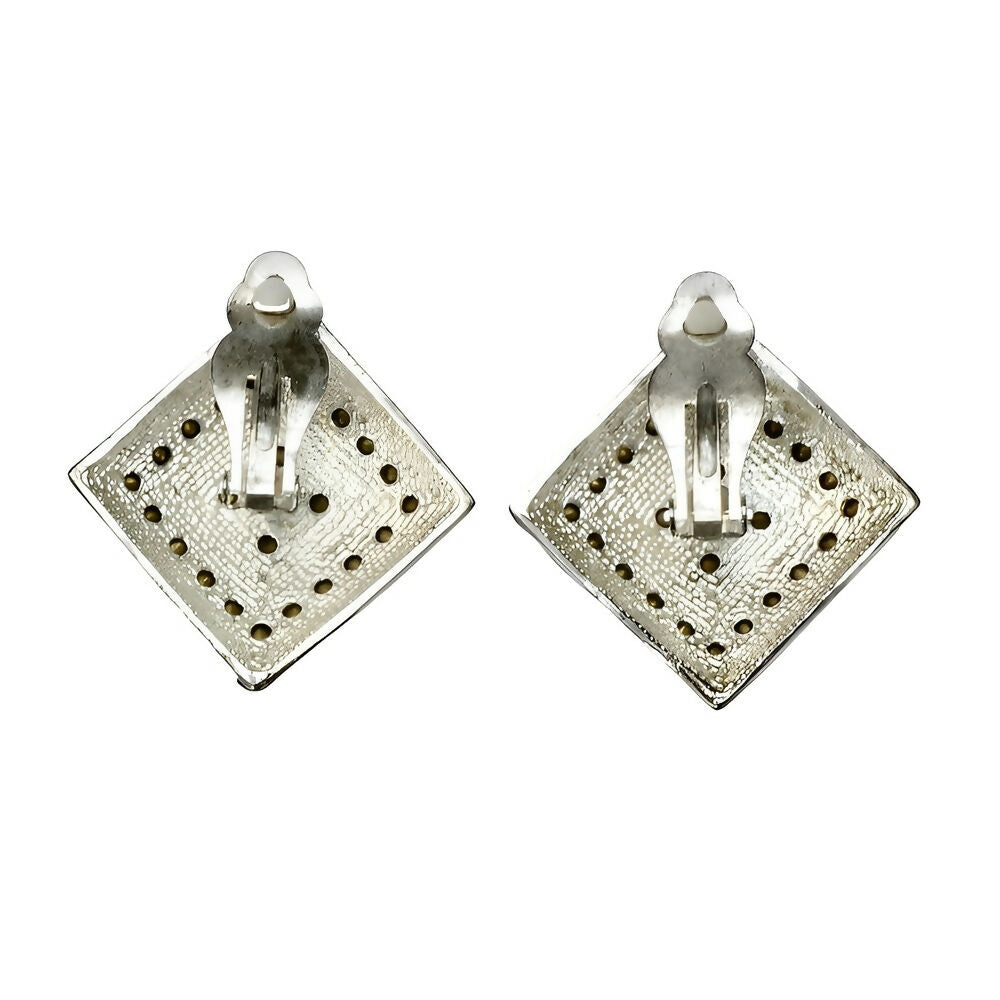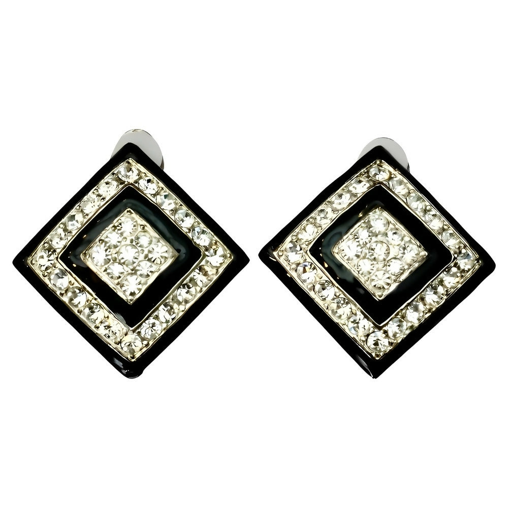 BLACK ENAMEL RHINESTONE CLIP ON STATEMENT EARRINGS
