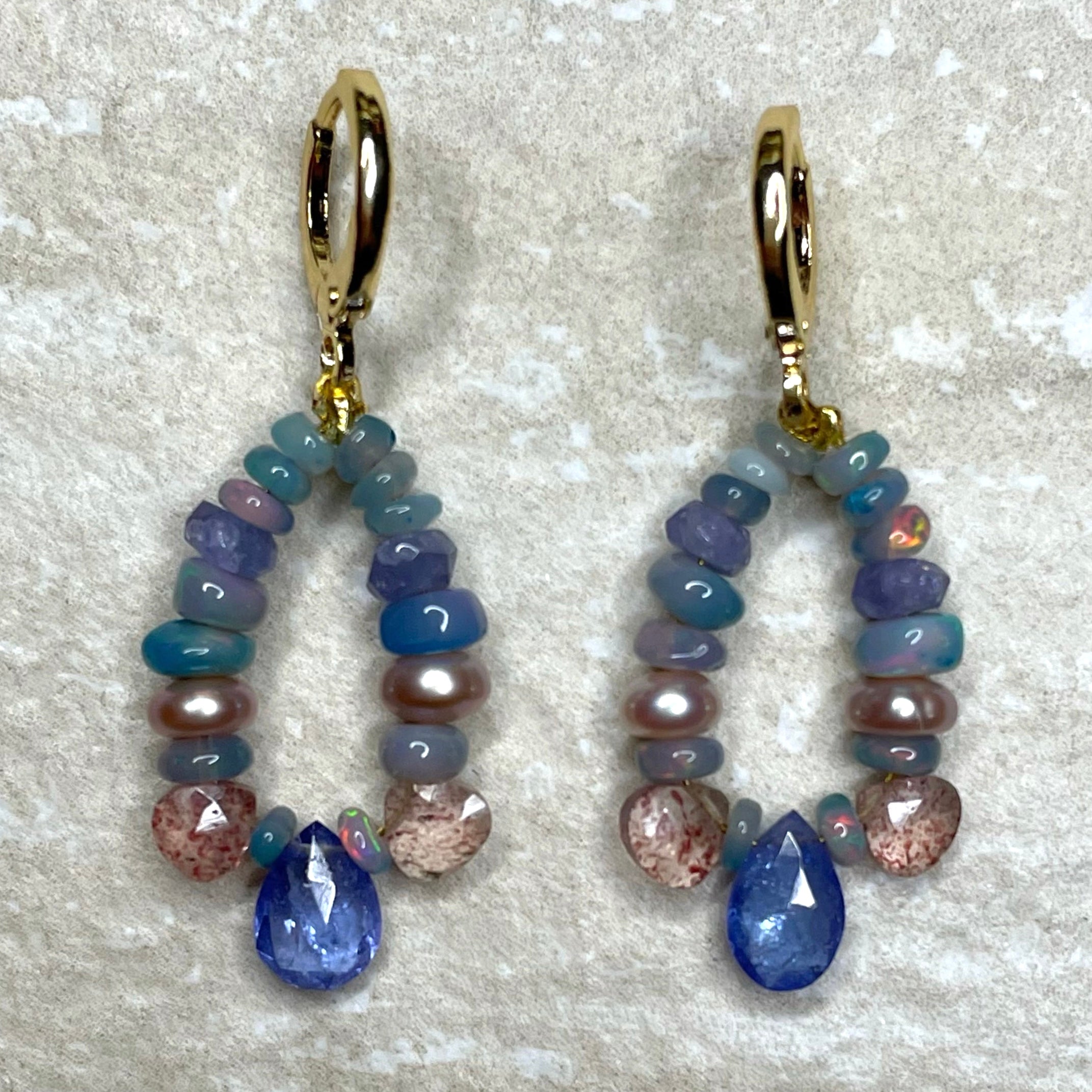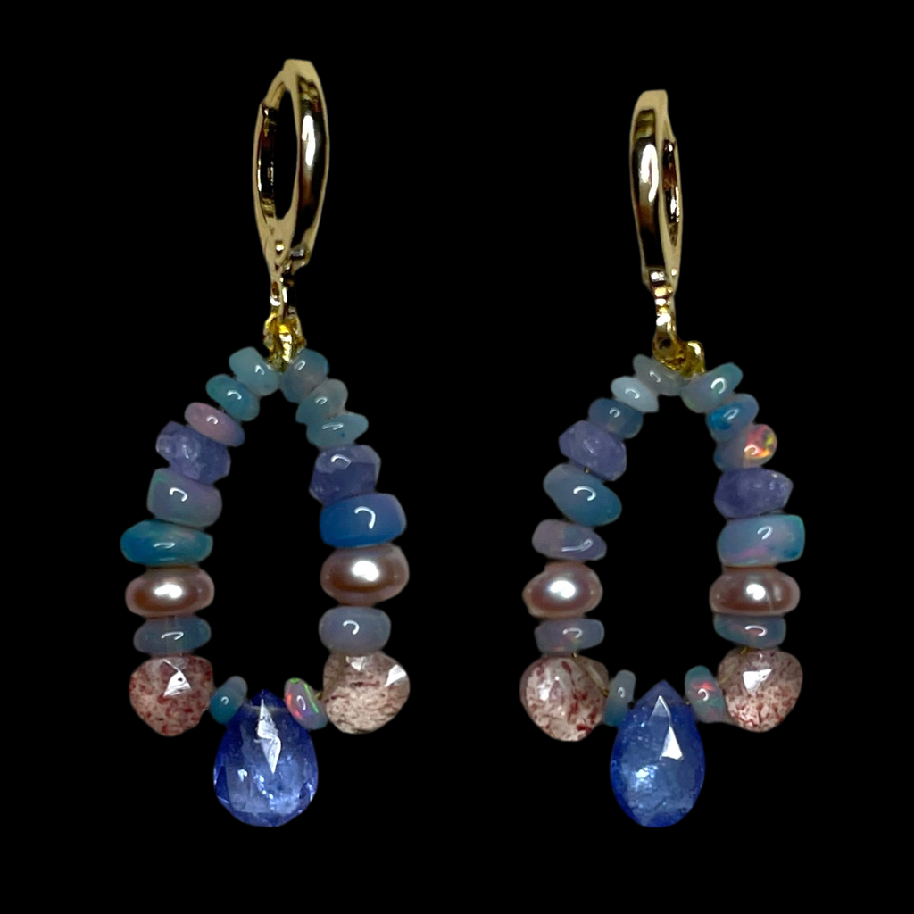 'Delphine' Opal, Tanzanite and Pearl Earrings