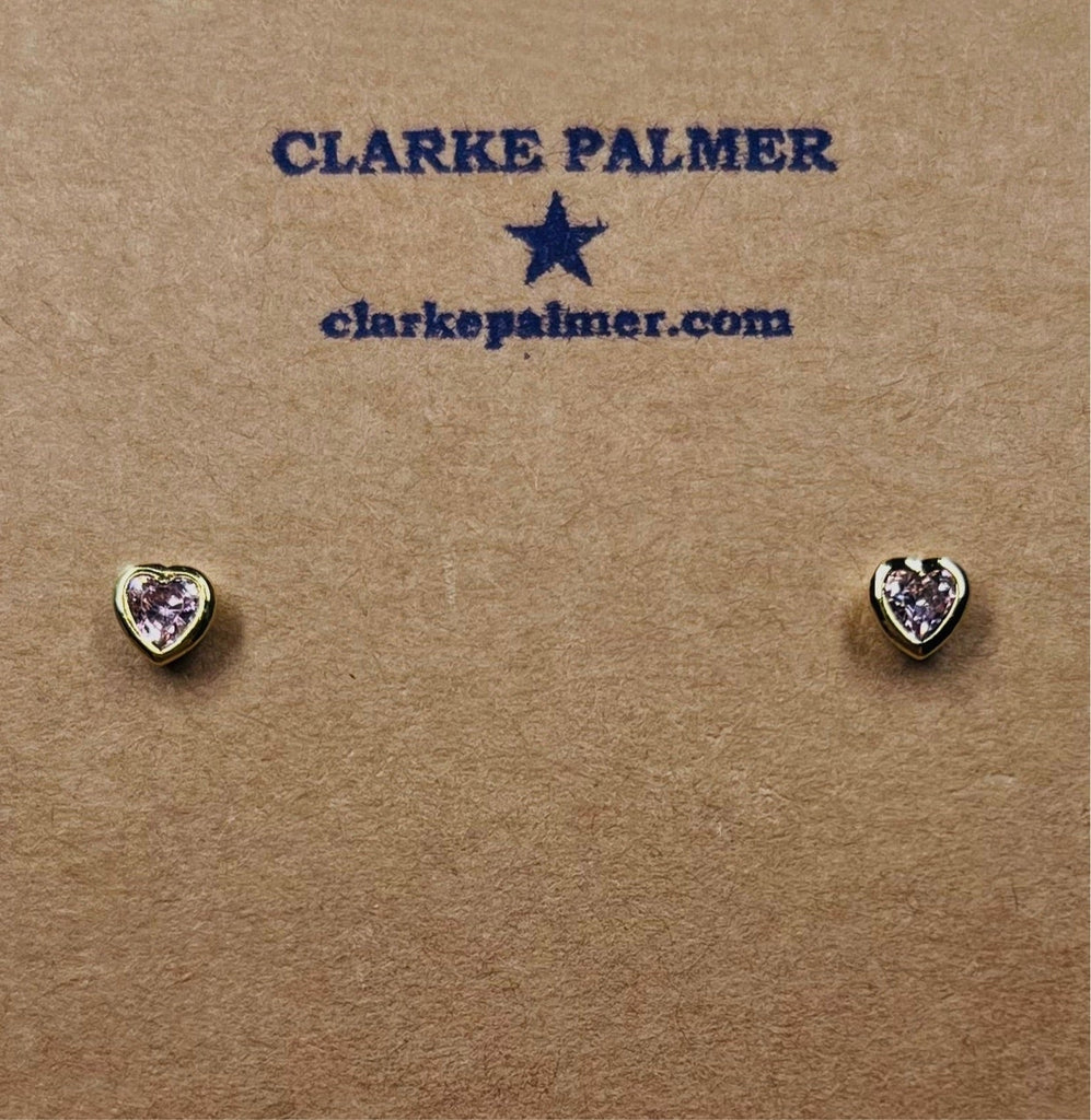These Heart Stud Earrings are made from 24 kt gold vermeil with a pale pink heart shaped faceted CZ stone.