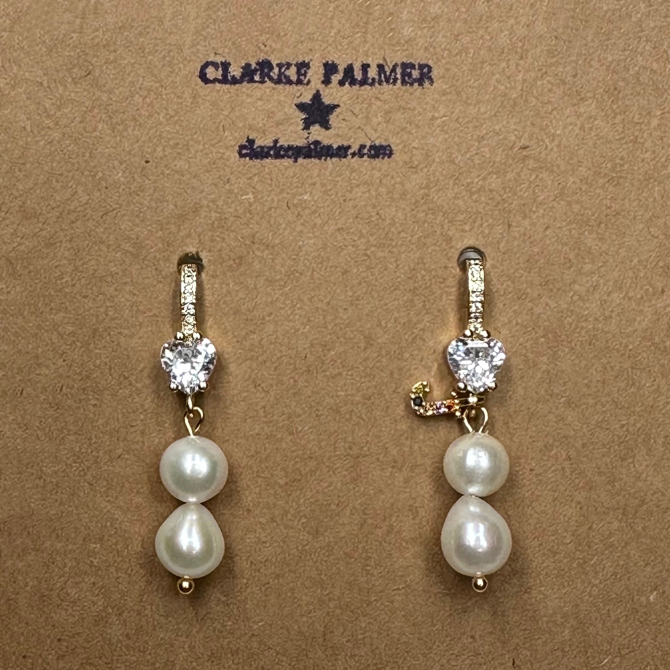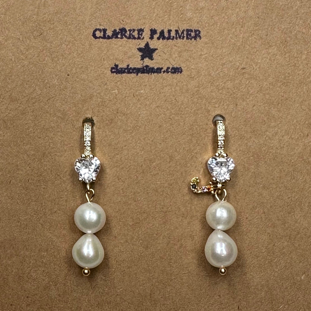 Personalised Pearl Drop and CZ Heart Earrings