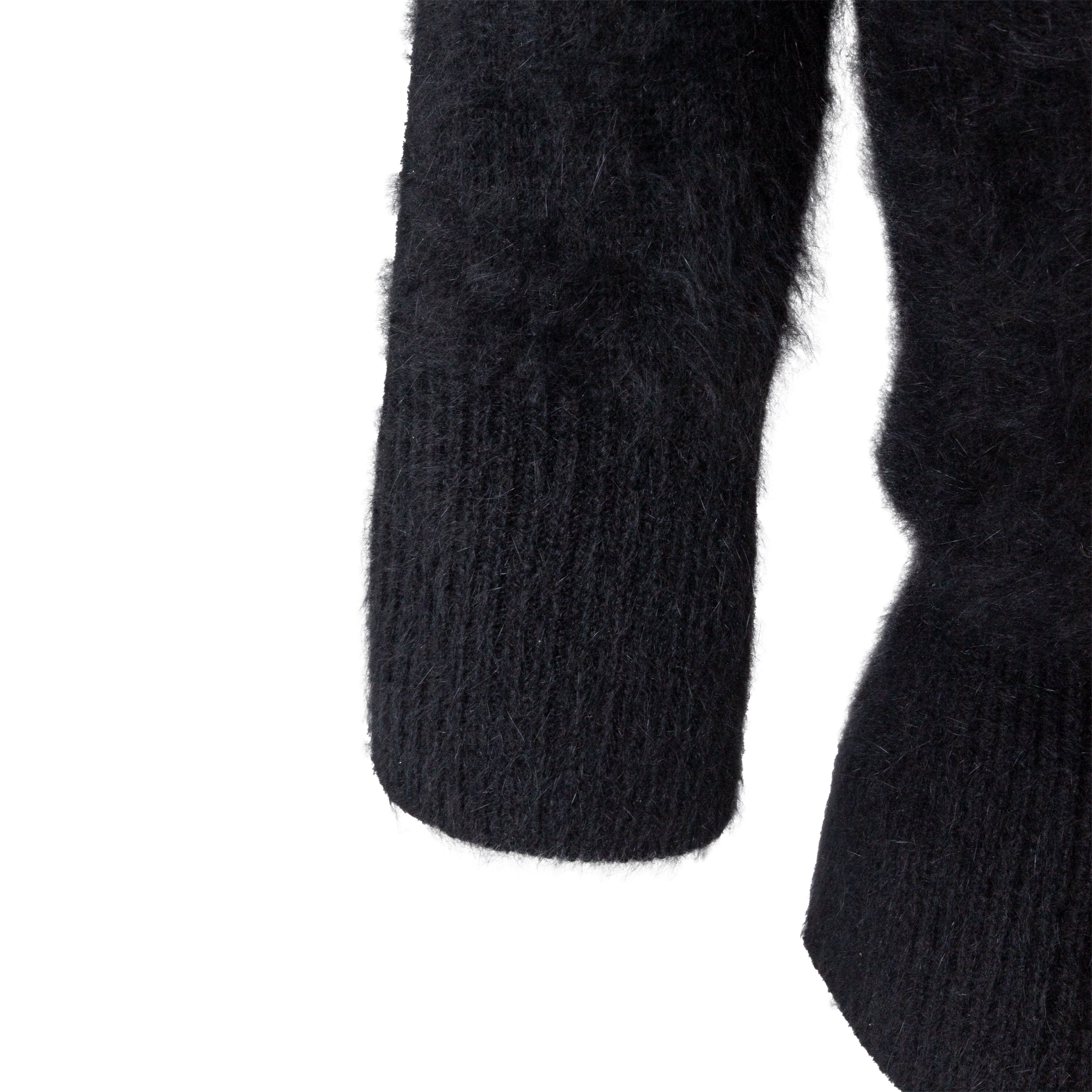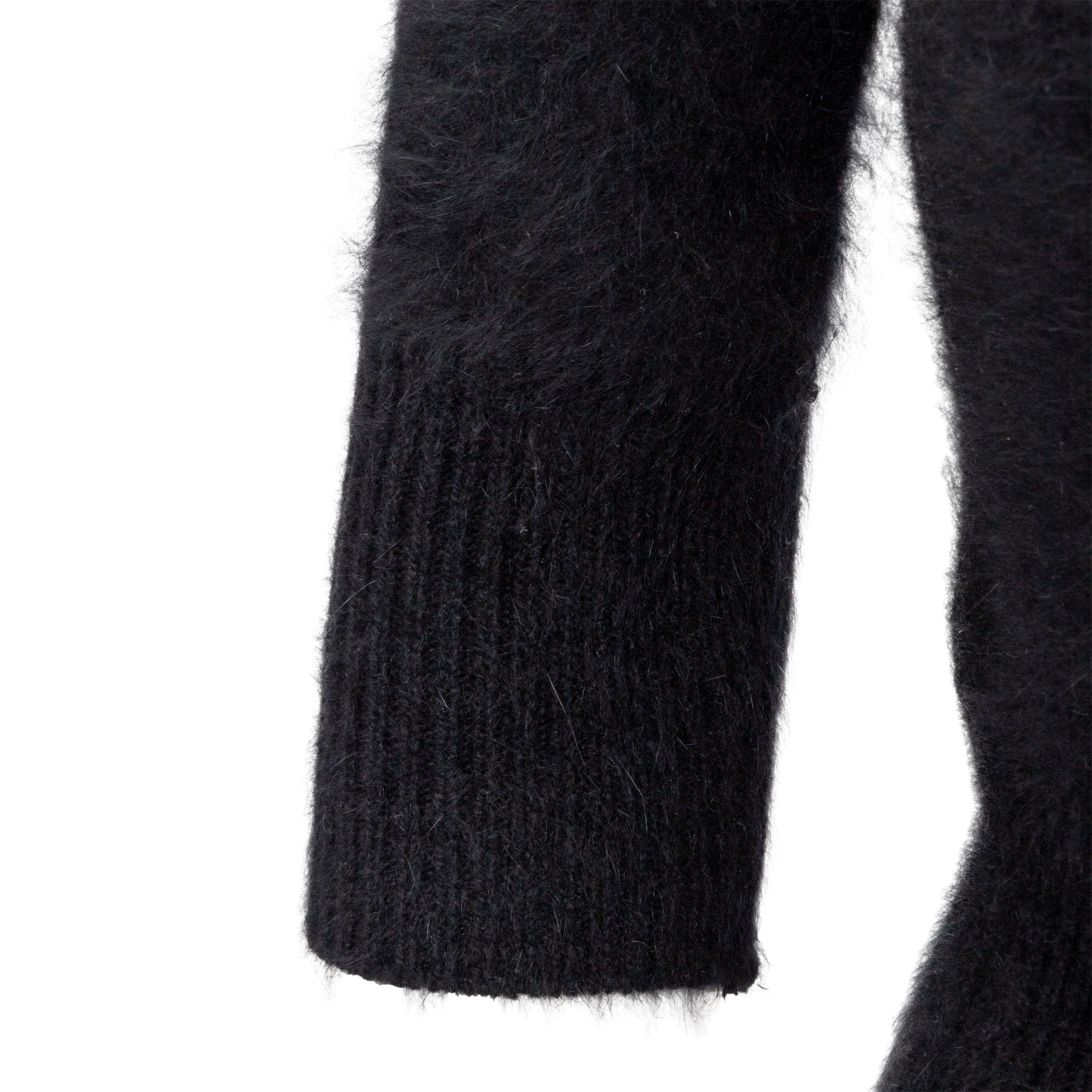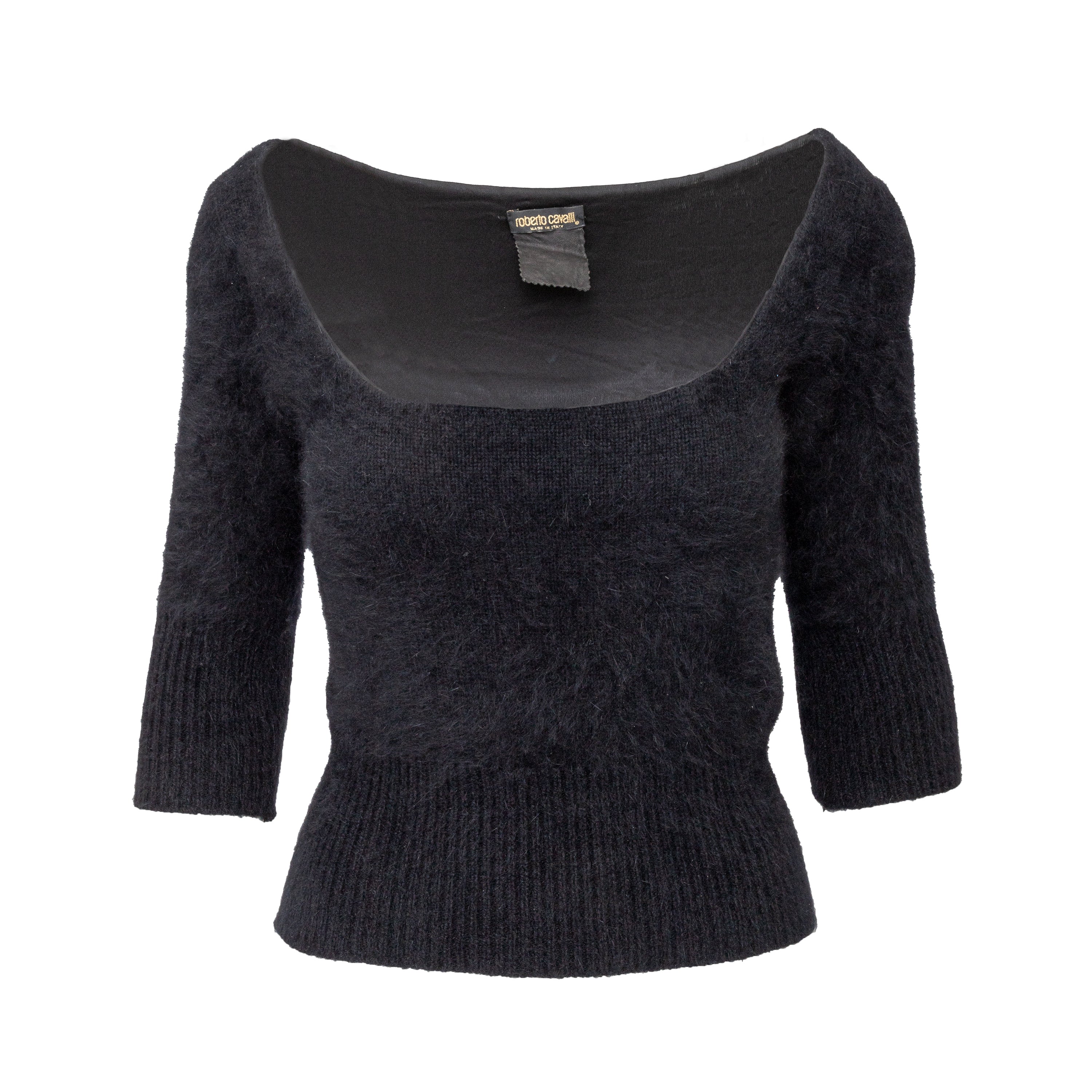Stay cozy and chic with the Roberto Cavalli Short Wool Top. Made from soft, fuzzy wool material, this short sweater top offers both warmth and comfort. Featuring a deep spread neckline and quarter sleeves, it's the perfect choice for mid-season wear.