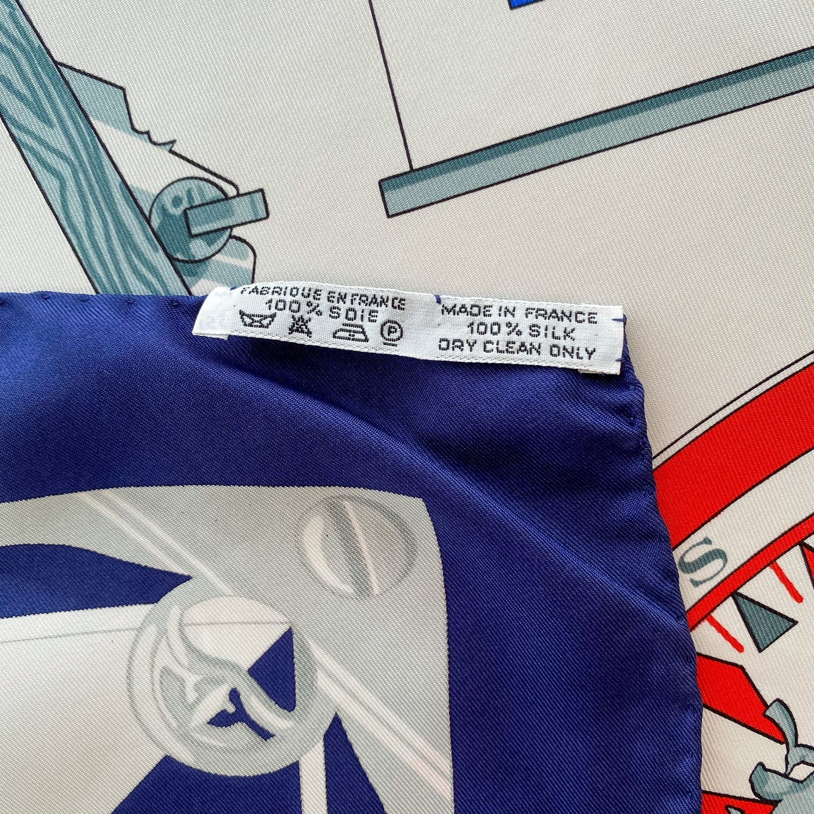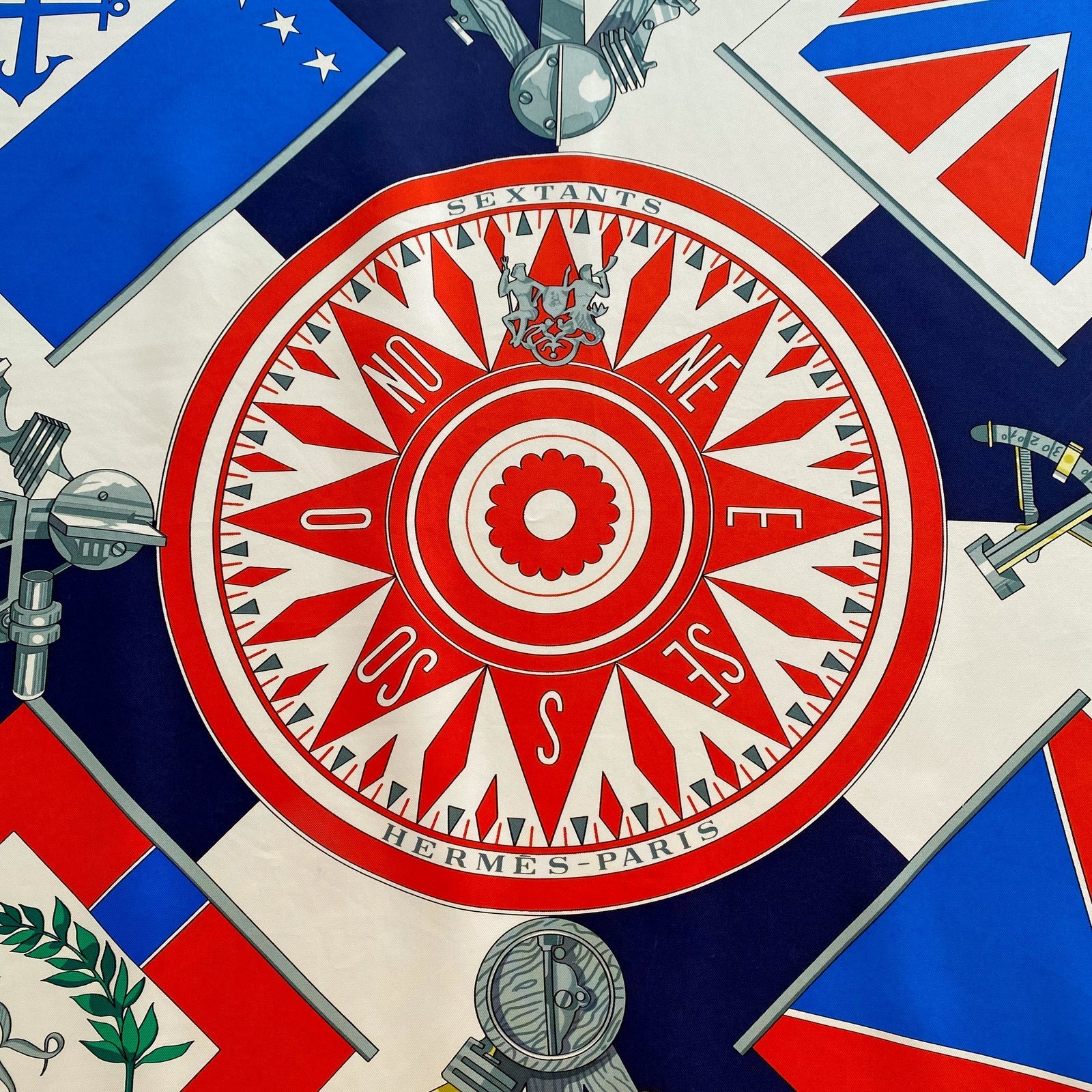 This "Sextants" vintage Hermès silk twill scarf was designed by Loïc Dubigeon. The scarf was first issued in 1981 and then reissued in 2001. This re-issue scarf in a blue colourway is in excellent vintage condition with no issues. No box but can be supplied in a plain black box.