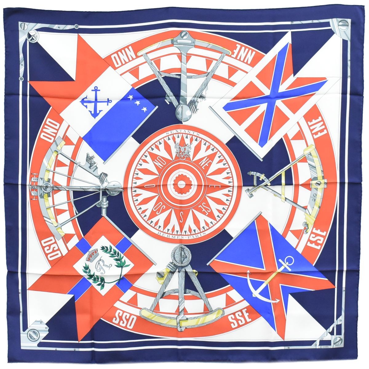 1981 Hermès Navy “Sextants” by Loïc Dubigeon 90cm Silk Twill Scarf