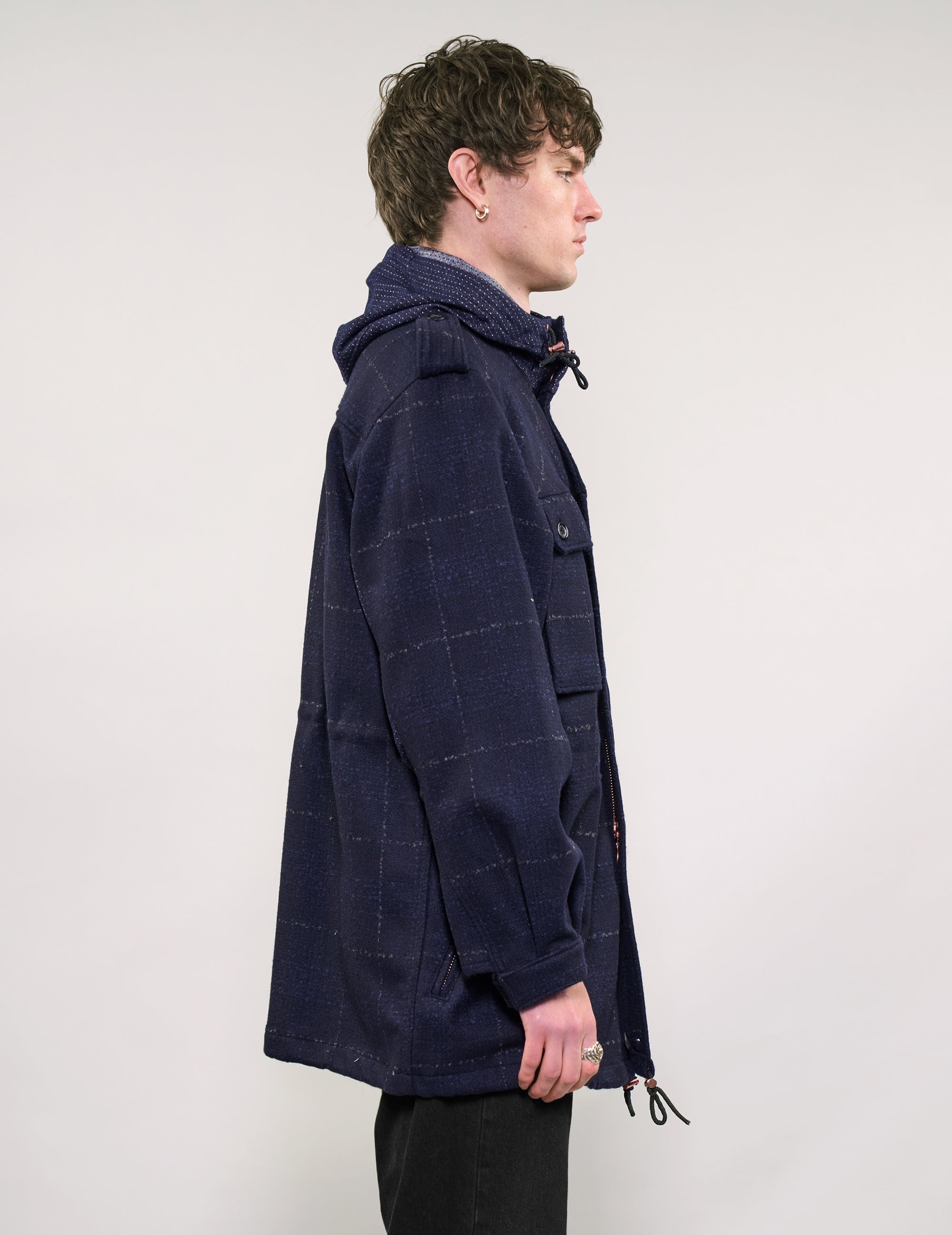 IMMORTAL Hooded Wool Parka in Windowpane Check