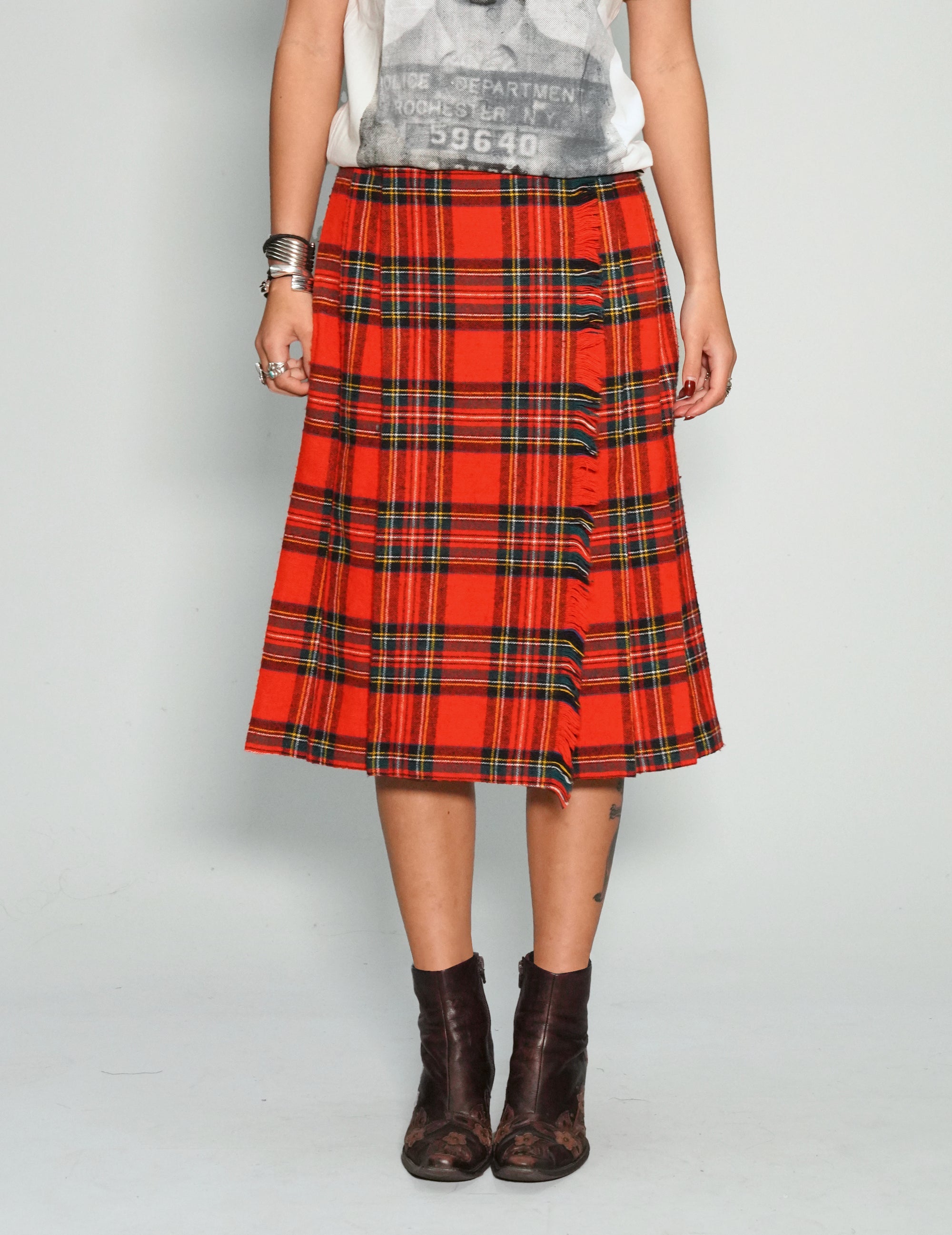 1970's vintage, lightweight red tartan kilt style skirt, 50% wool, 30% Acrylic, 20% Nylon. Perfect to add a pop of punk style tartan to any outfit.
