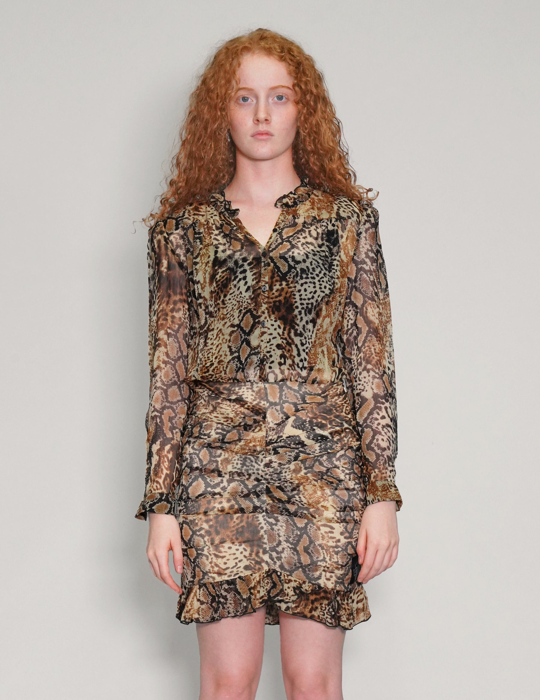ba&sh Snakeskin sheer dress, 100% Viscose. Button and zip fastening, frilled hem. Perfect for autumn dates or parties.