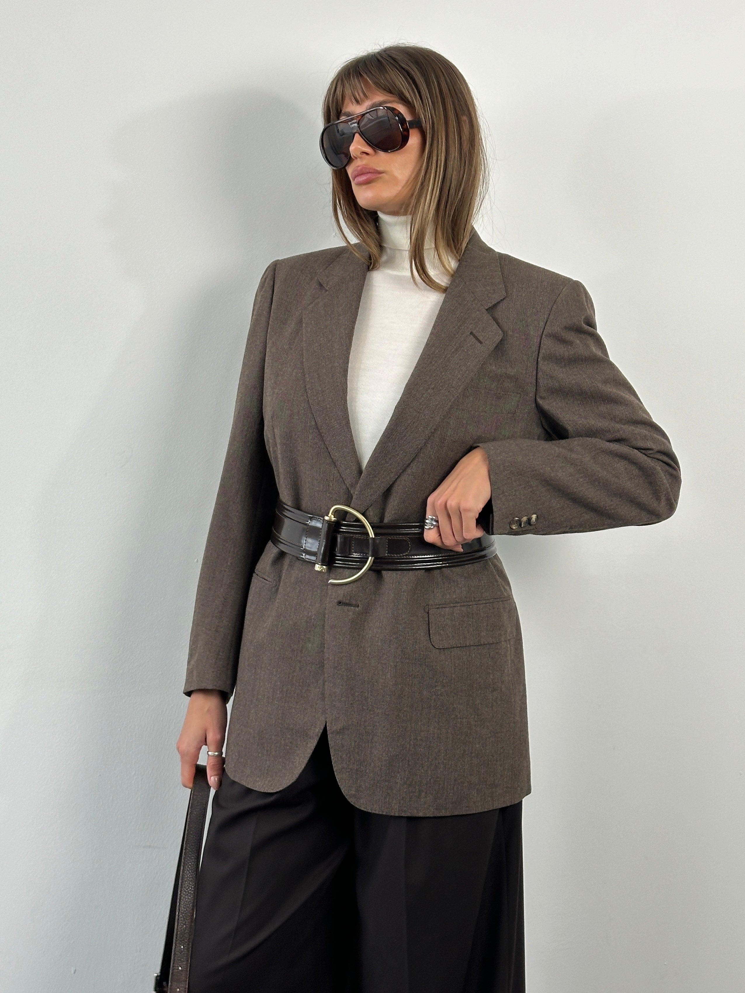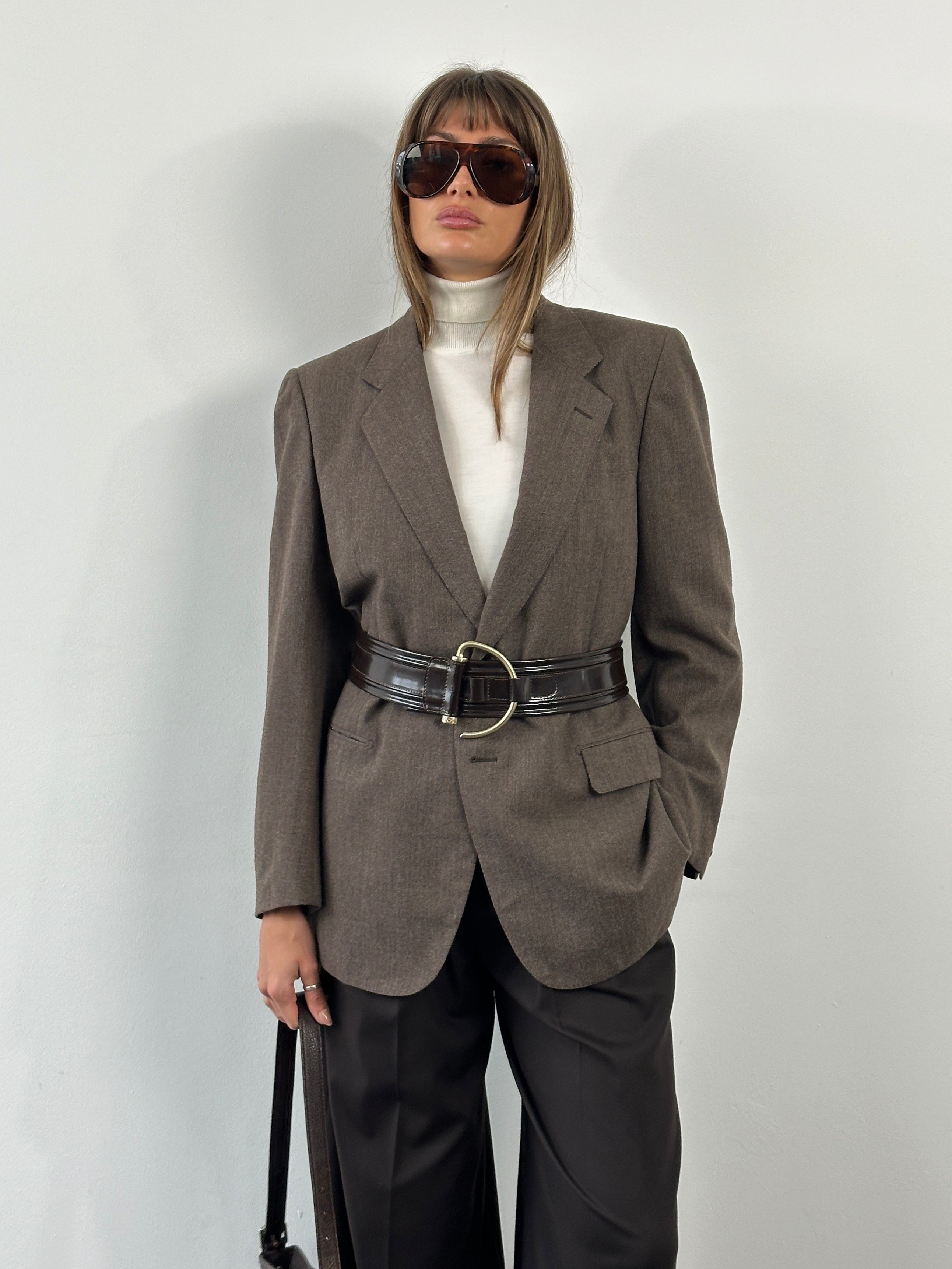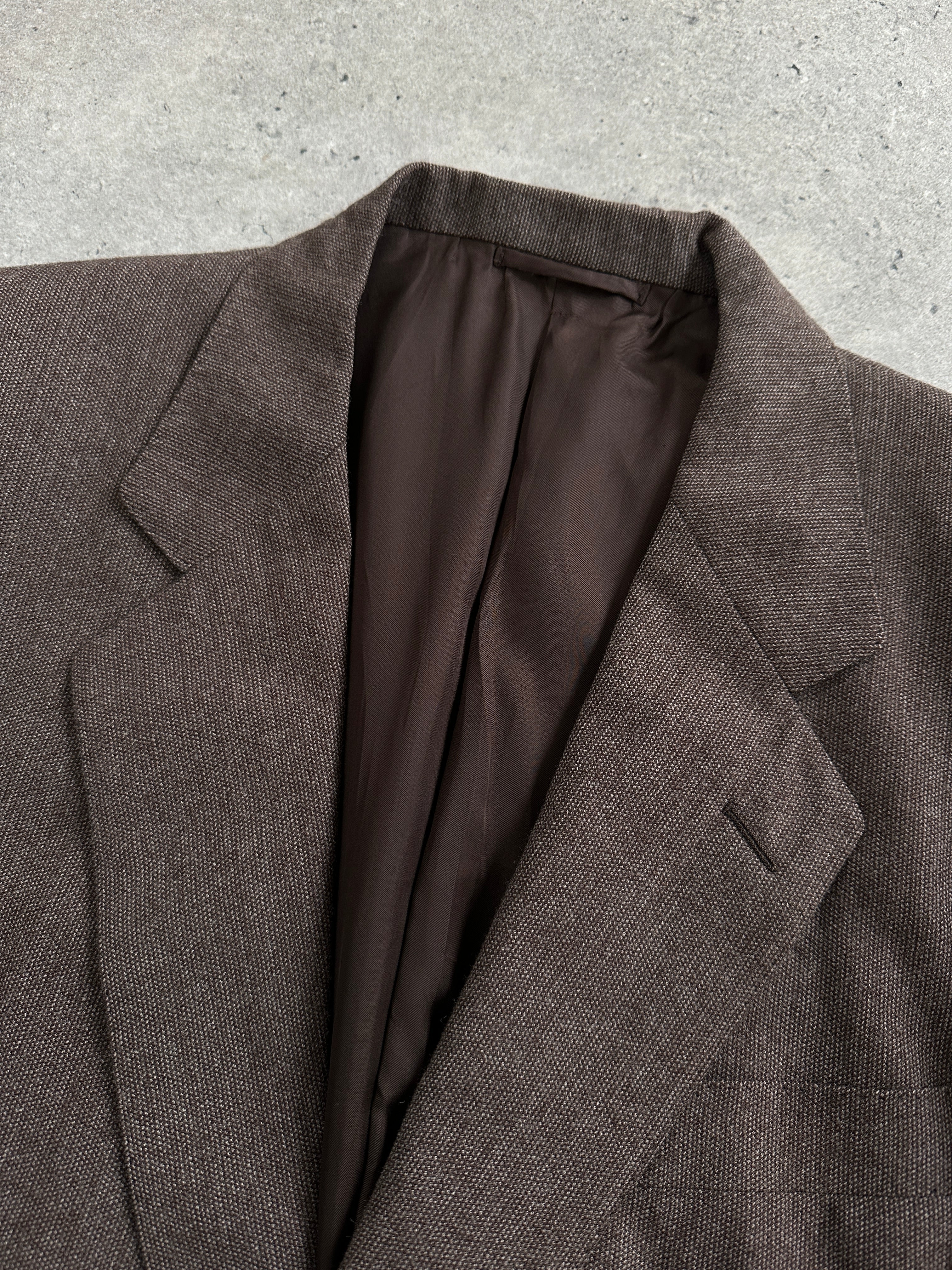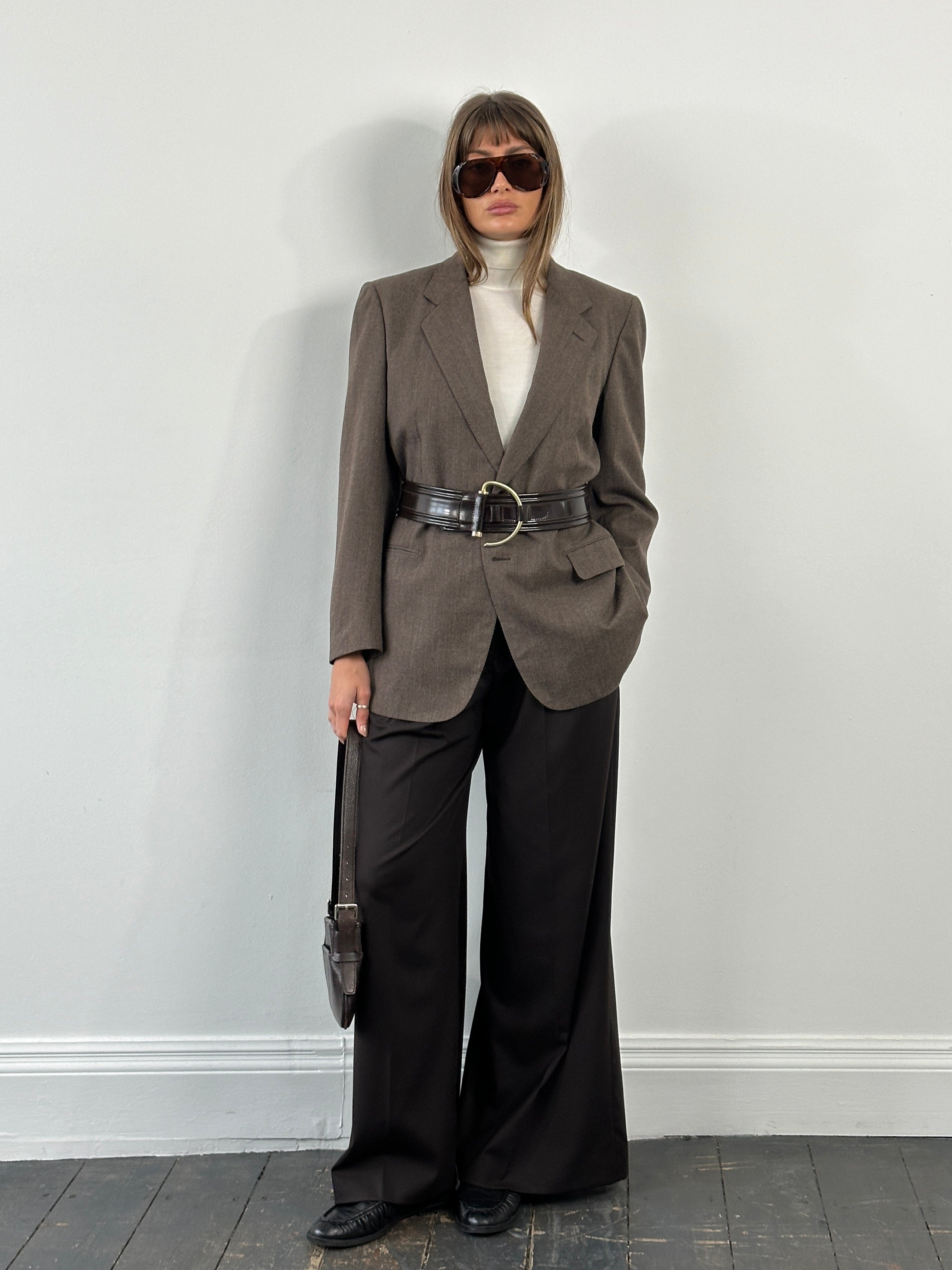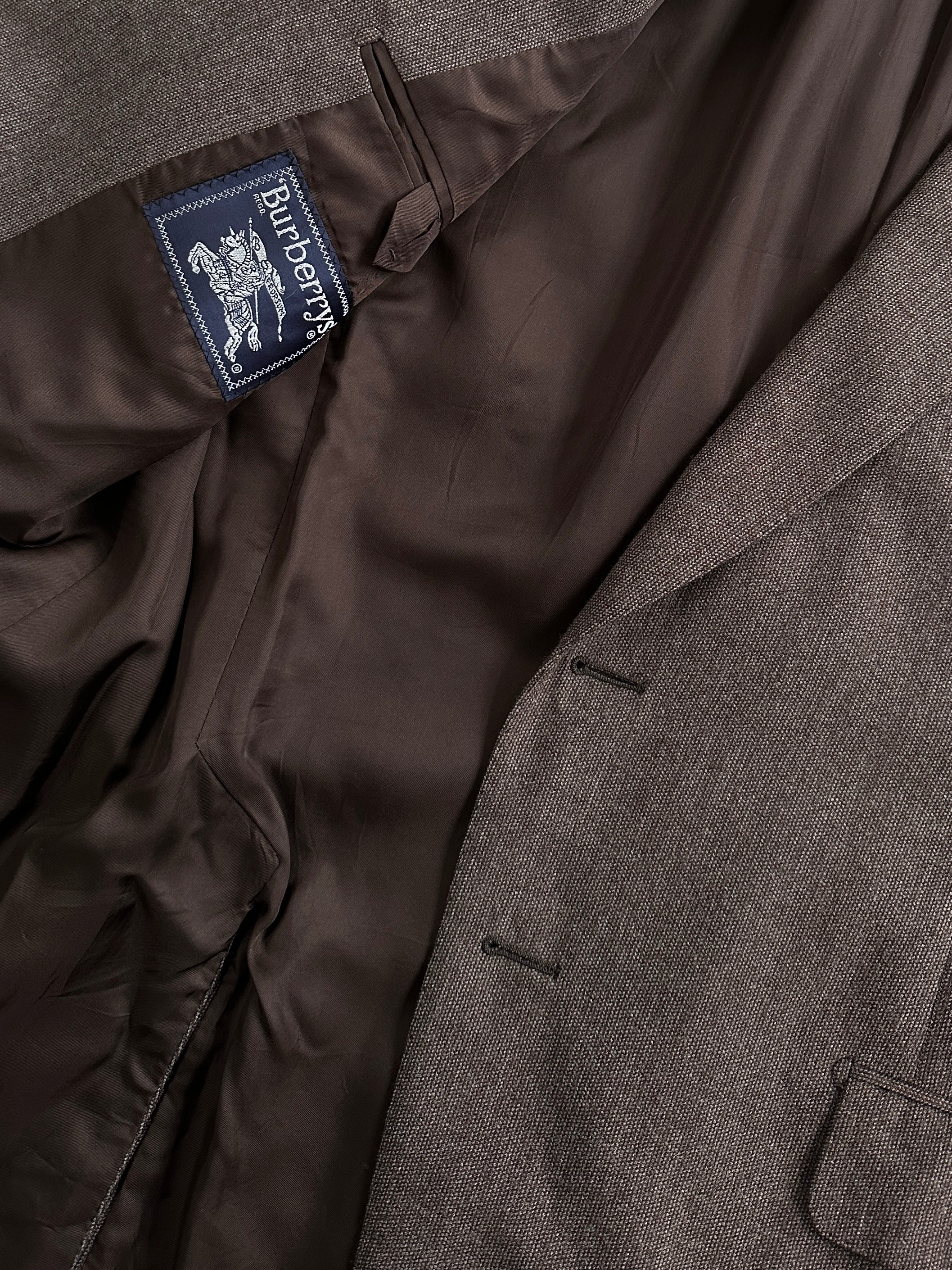 A vintage 1990s Burberry single breasted blazer in a rich brown tone. A classic Italian-tailored silhouette with understated structure and refined proportions.