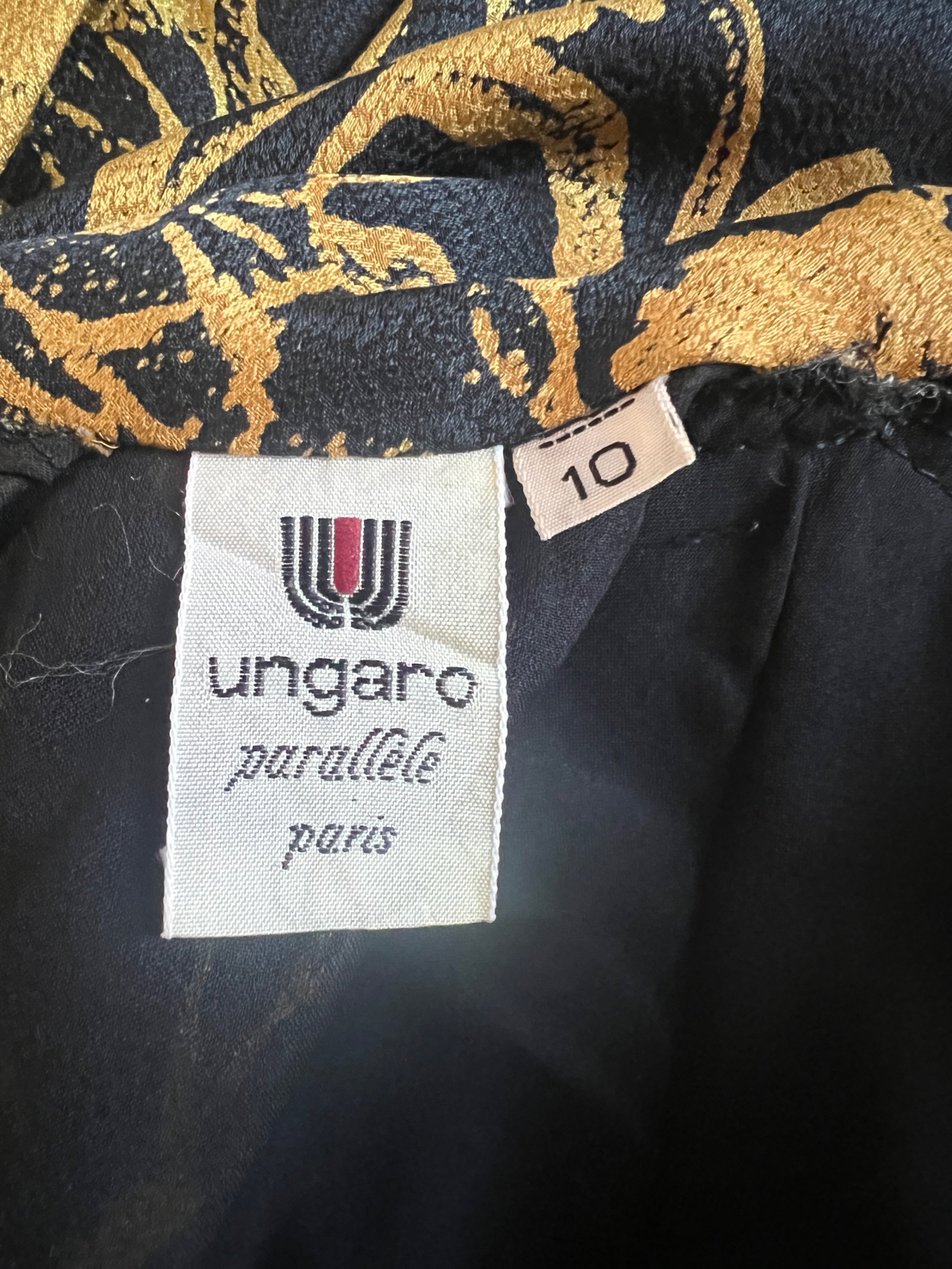 1988 Ungaro Documented Silk Gold and Black Floral Dress