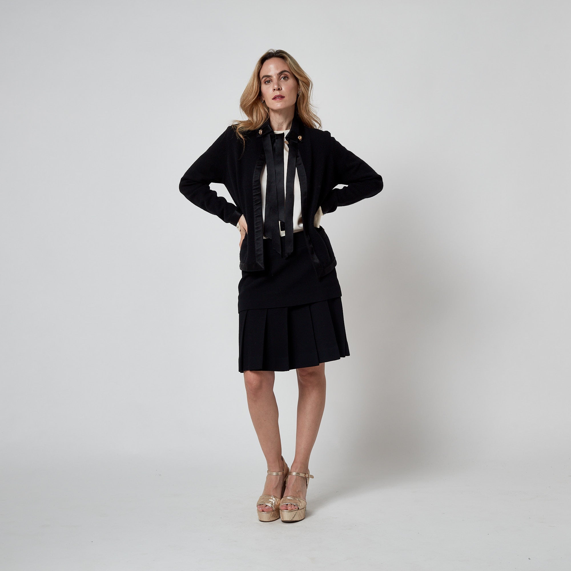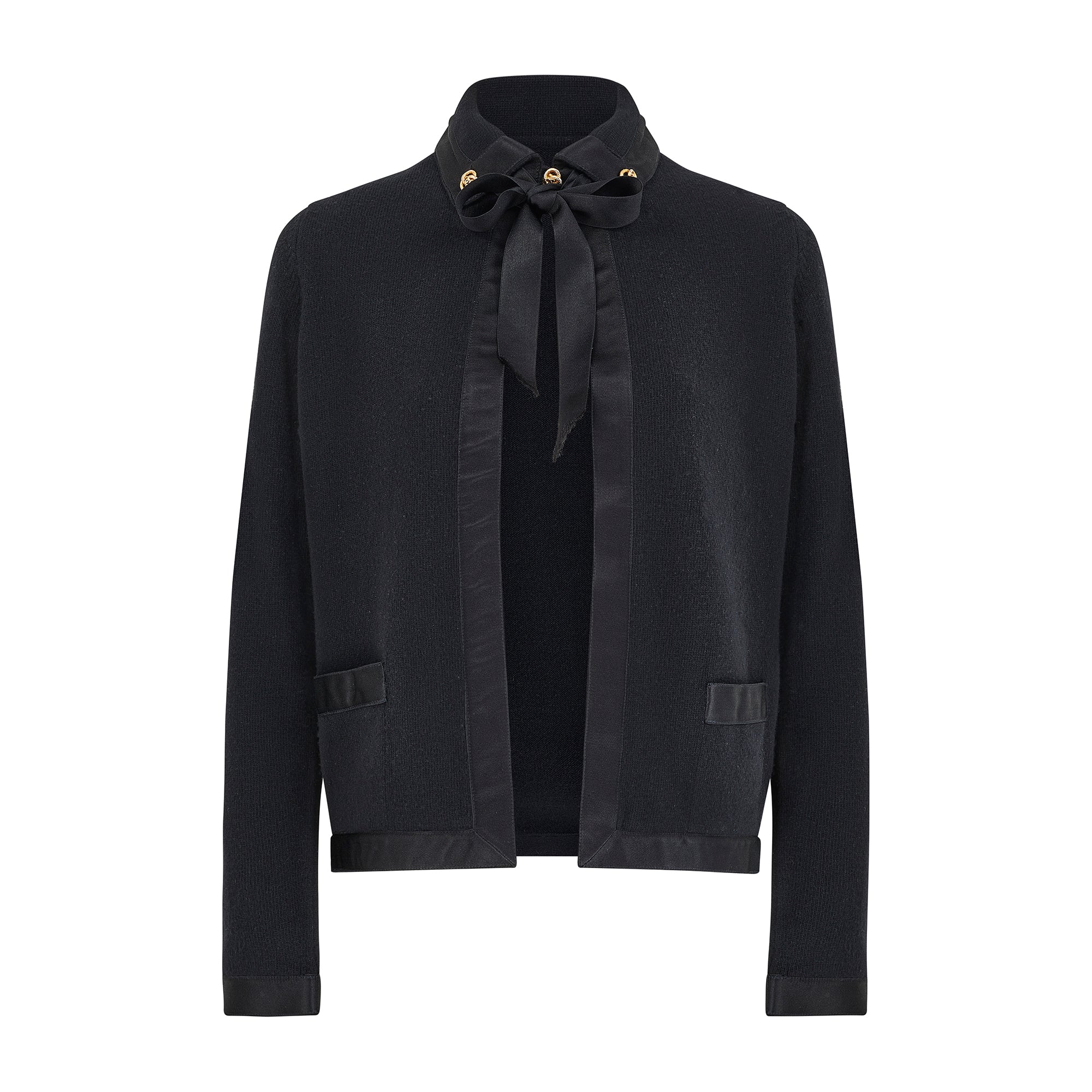 Fall 1983 Chanel Black Cashmere Cardigan with Satin Trim