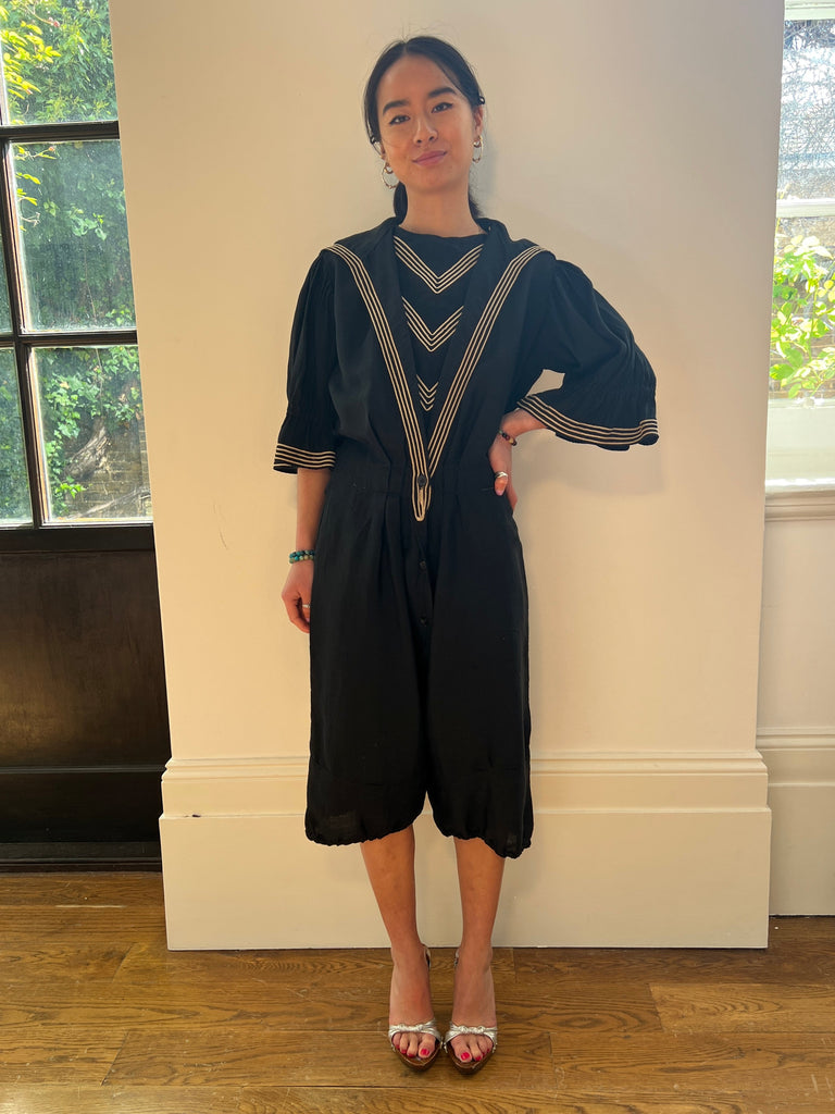 1900s Edwardian Navy and Cream Cotton Bathing Suit