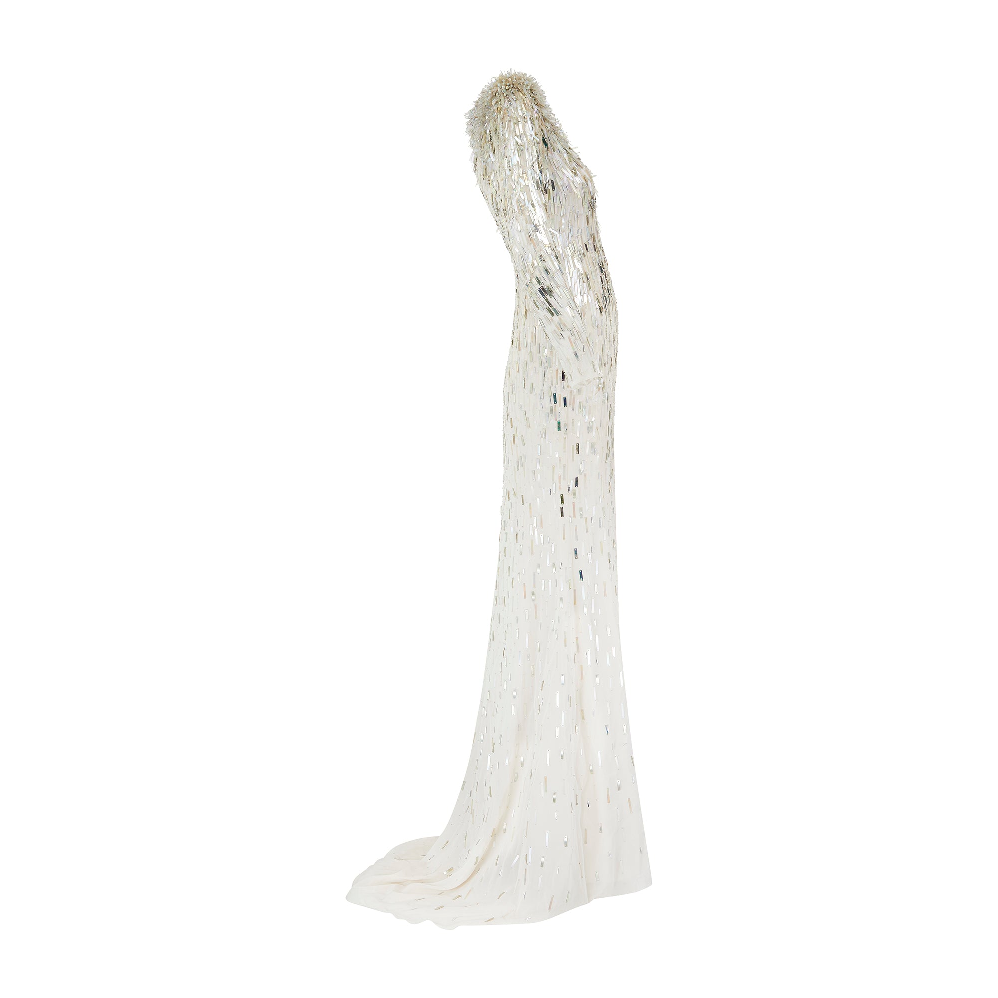 2010s Jenny Packham White and Gold Palette Sequin Maxi Dress