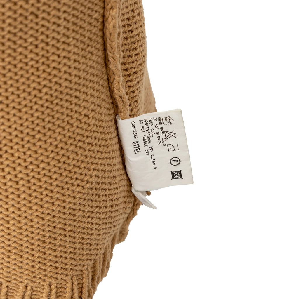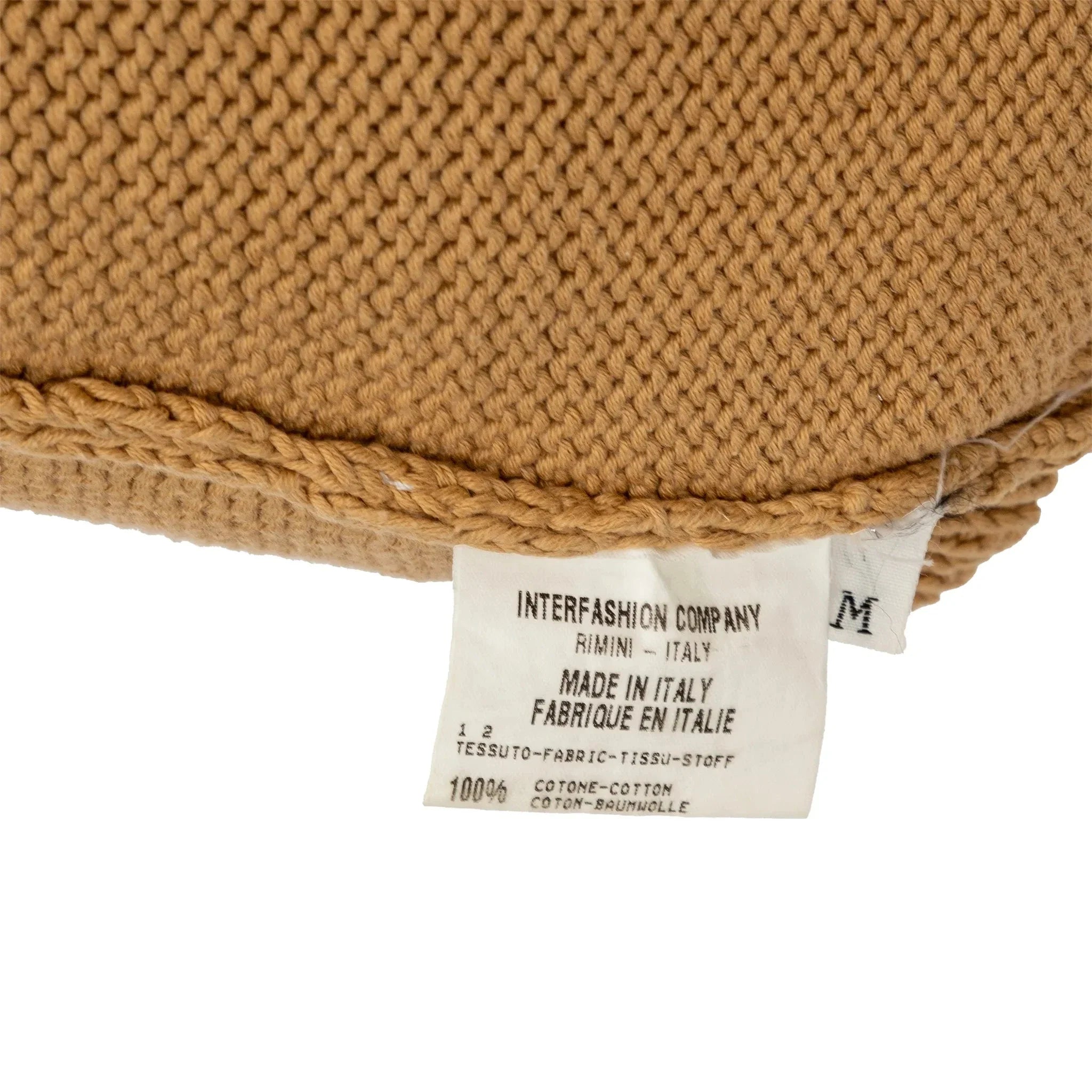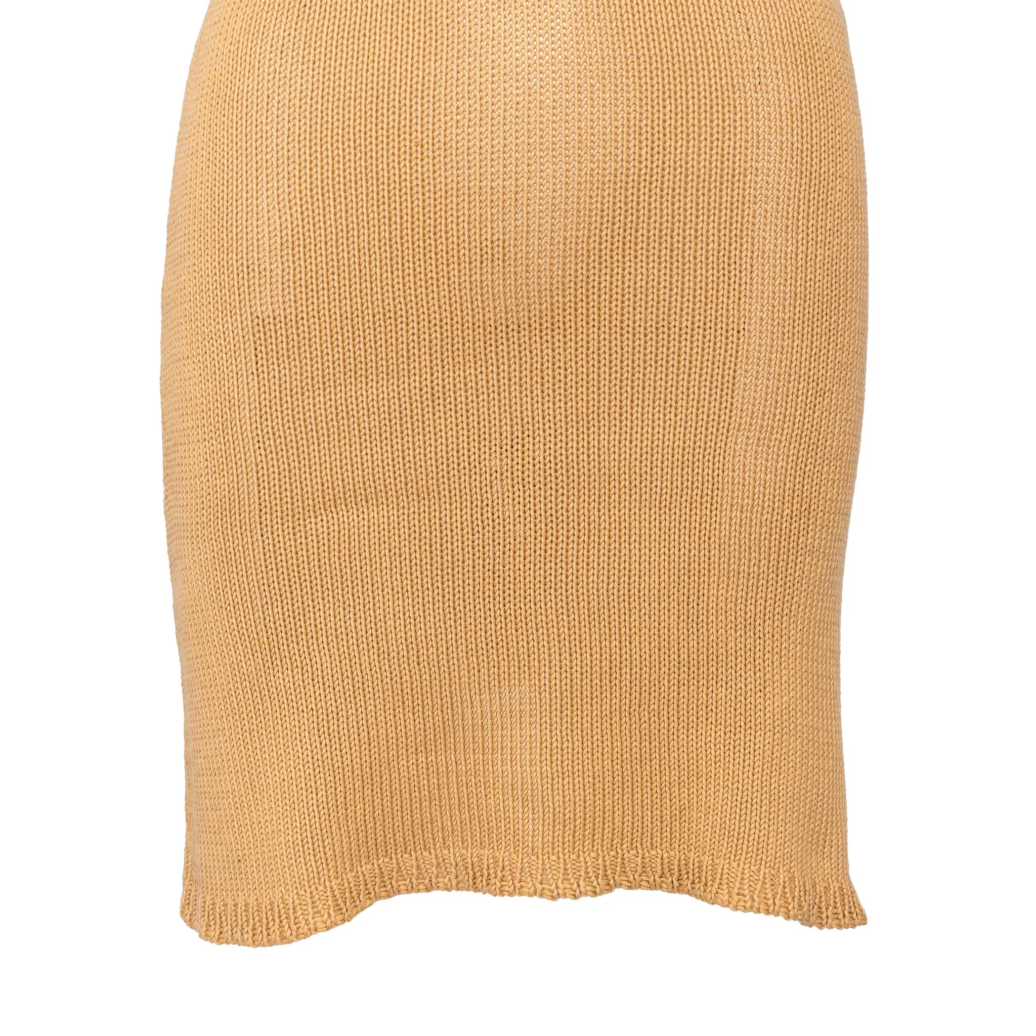 Crochet mini dress by Romeo Gigli in light brown cotton, featuring thin straps and airy open-knit design. Perfect as a summer staple.