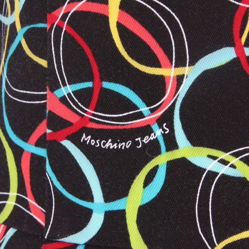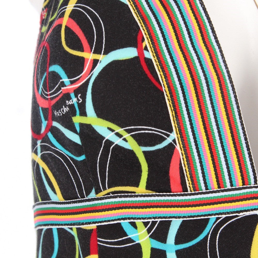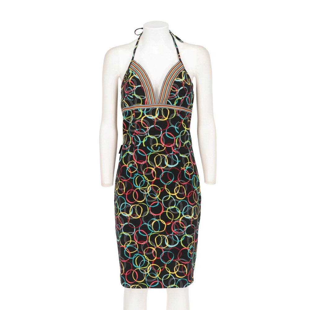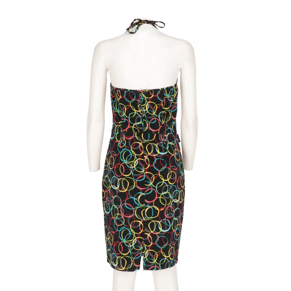 Moschino black cotton 2000s midi dress with multicolor round prints, sleeveless and with neck fastening.