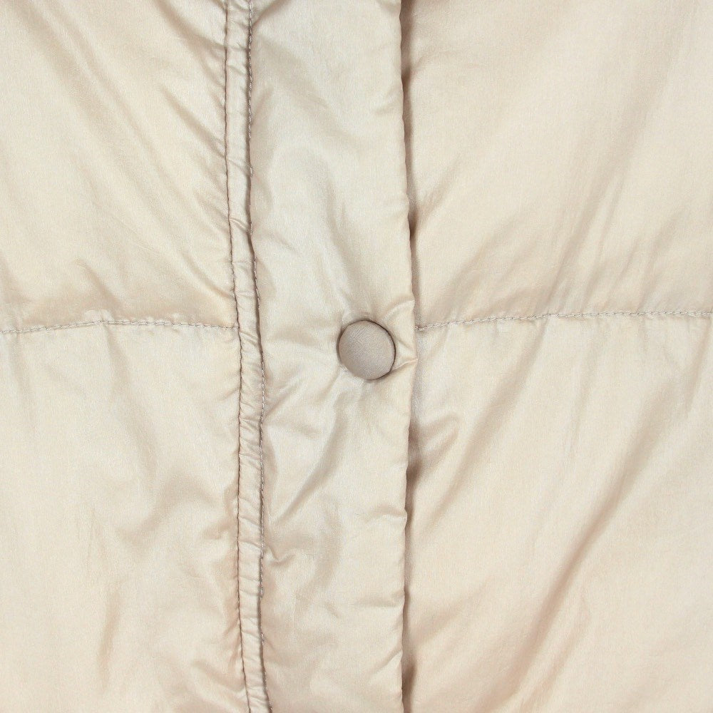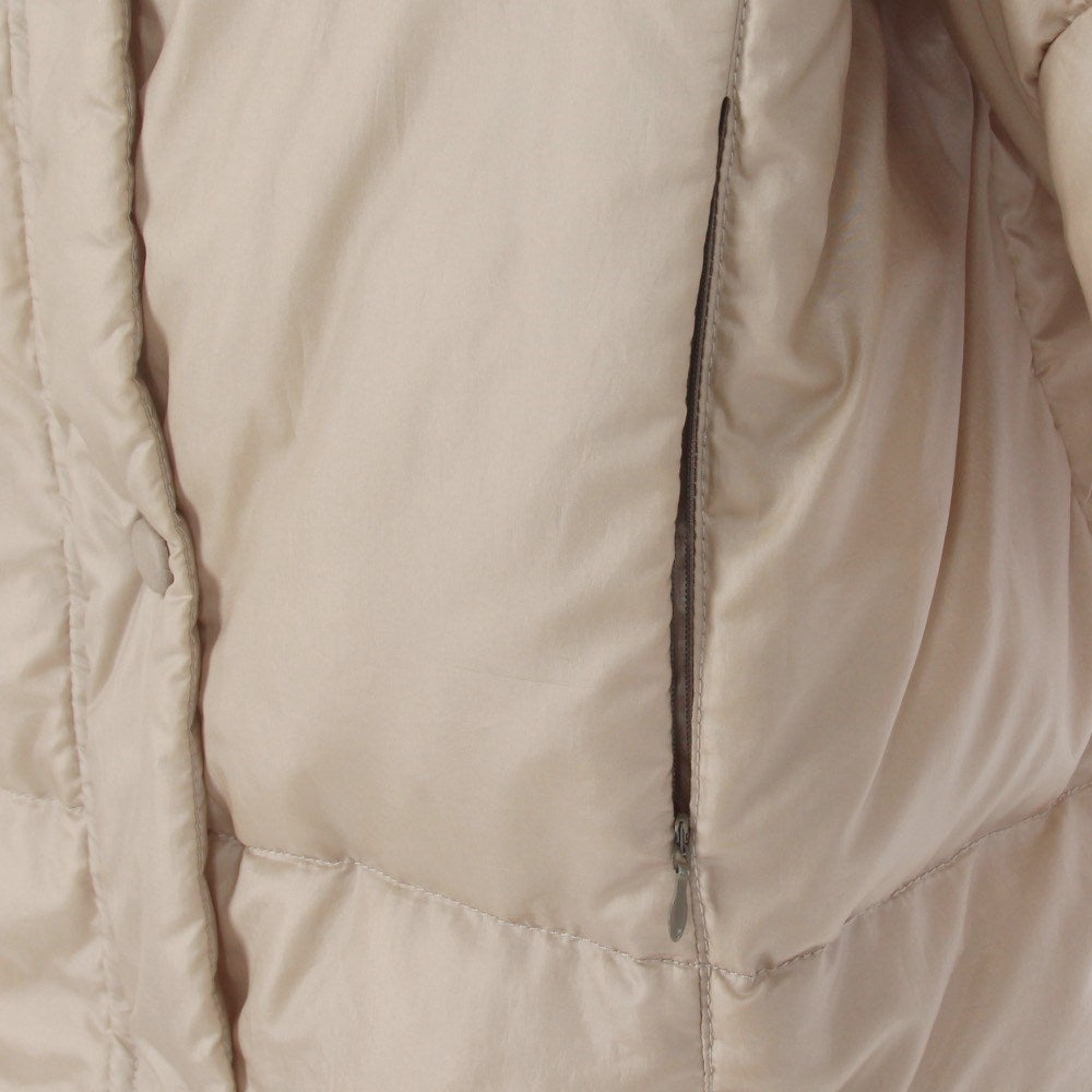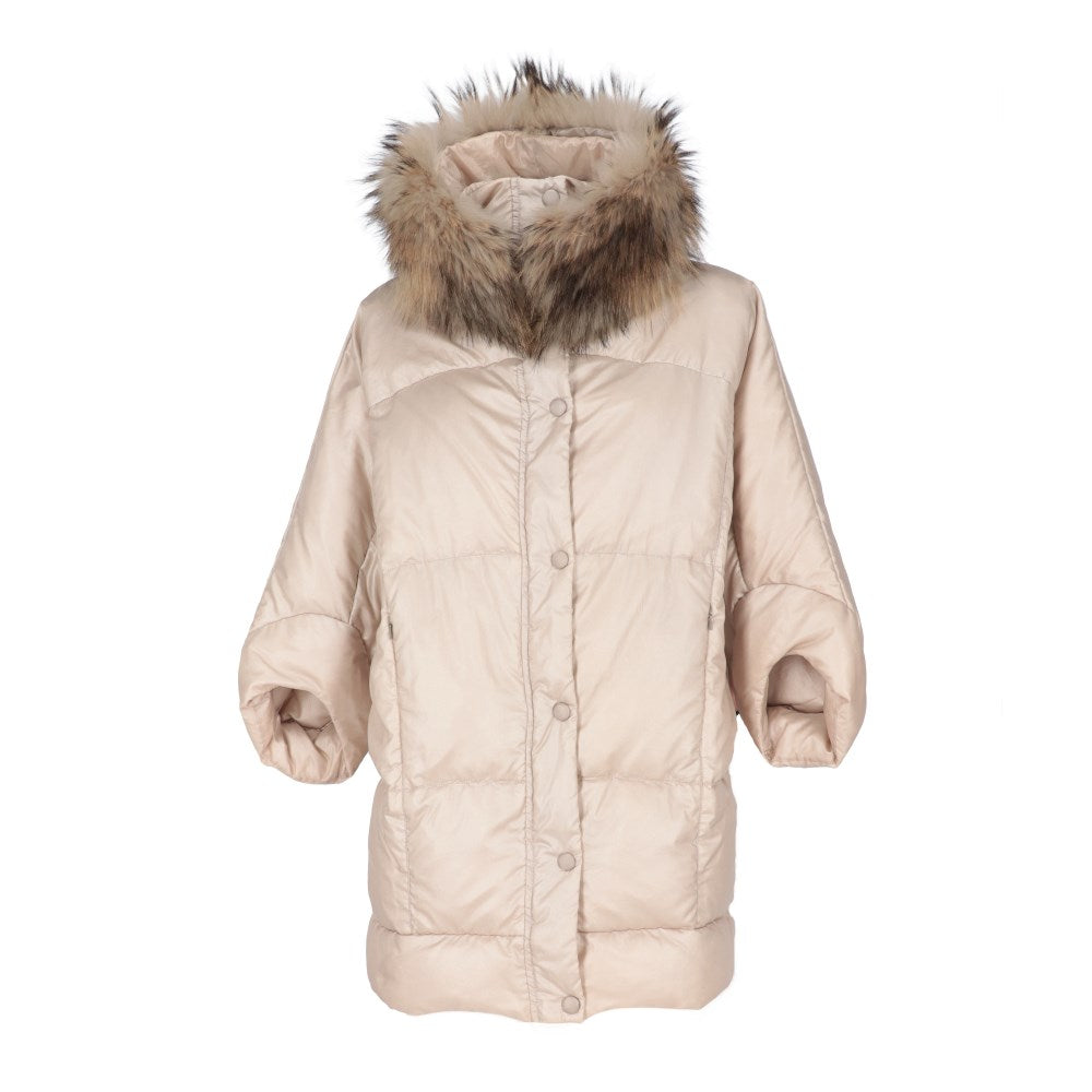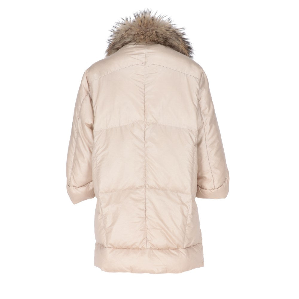 P.A.R.O.S.H. champagne polyester 2000s duvet with three-quarter sleeves, detachable raccoon neck and welt zipped pockets. Frontal zip and clips fastner fastening.
