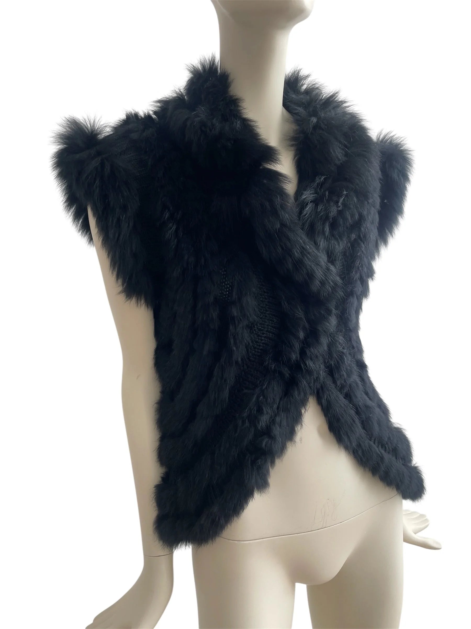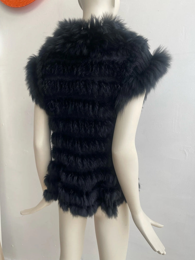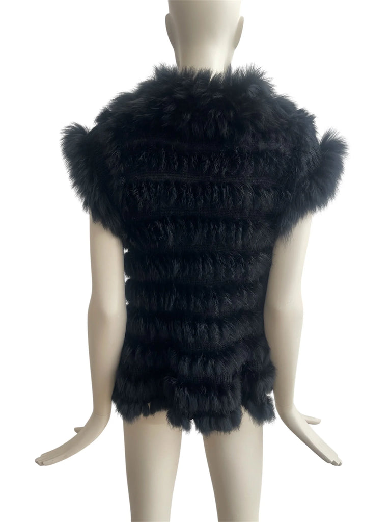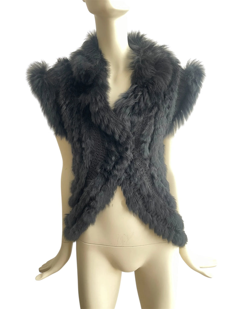 Y2K Knitted Rabbit Fur Gilet – Vintage Style